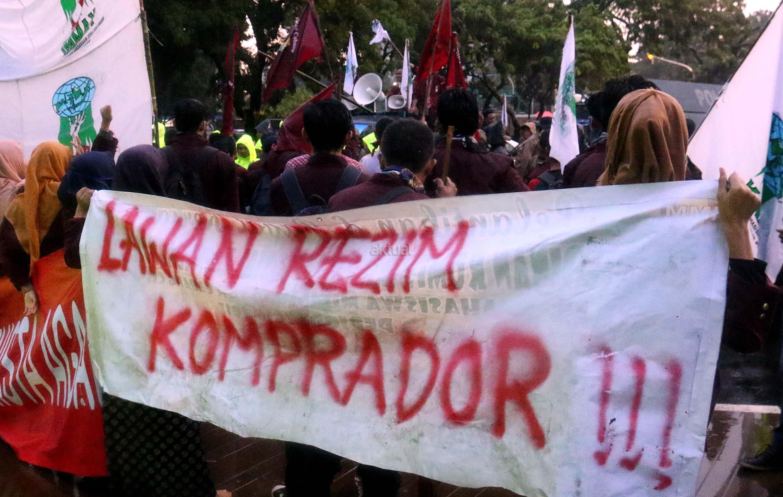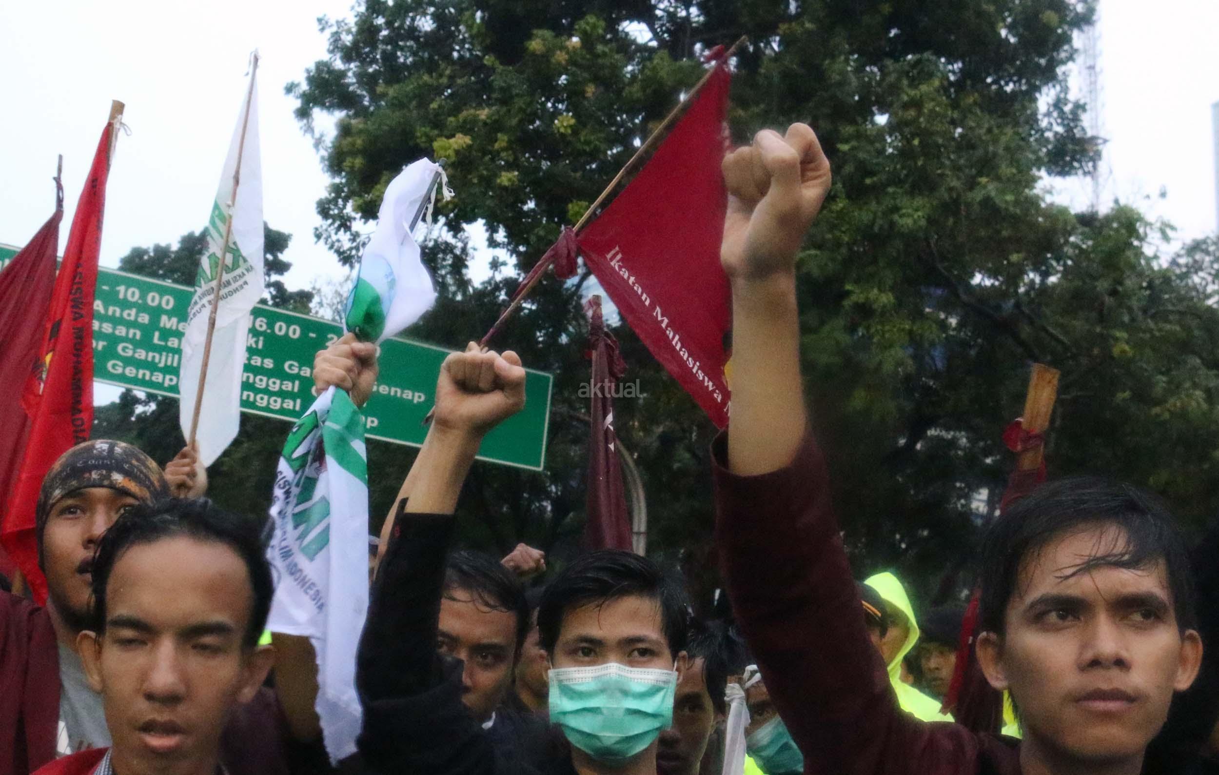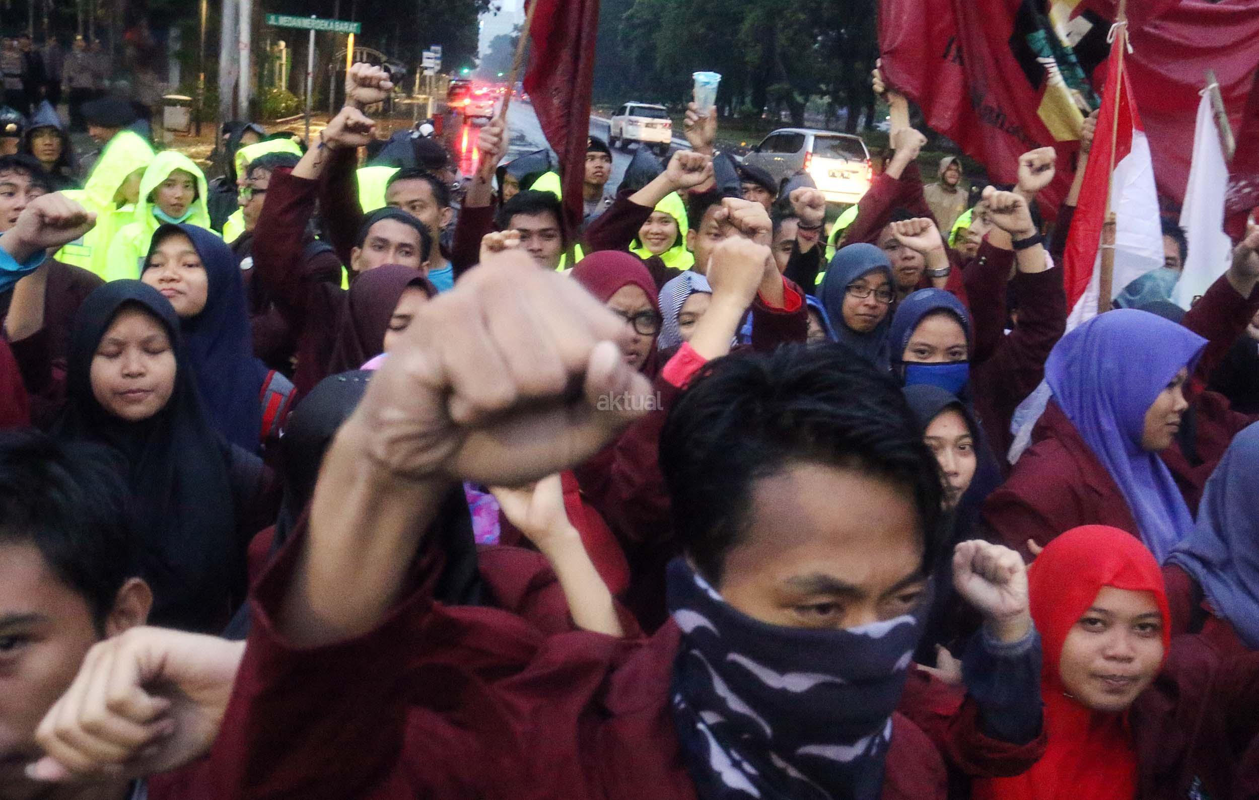 Ratusan mahasiswa dari Kesatuan Aksi Mahasiswa Muslim Indonesia (KAMMI) dan Ikatan Mahasiswa Muhammadiyah (IMM) yang tergabung dalam Ikatan Mahasiswa Muslim Indonesia (IMMI) melakukan aksi di depan Istana Negara, Jakarta, Jumat (11/11/2016). Dalam aksinya para mahasiswa mendesak Presiden Jokowi untuk segera menangkap Ahok Penista Agama dan berani membuka siapa aktor politik.