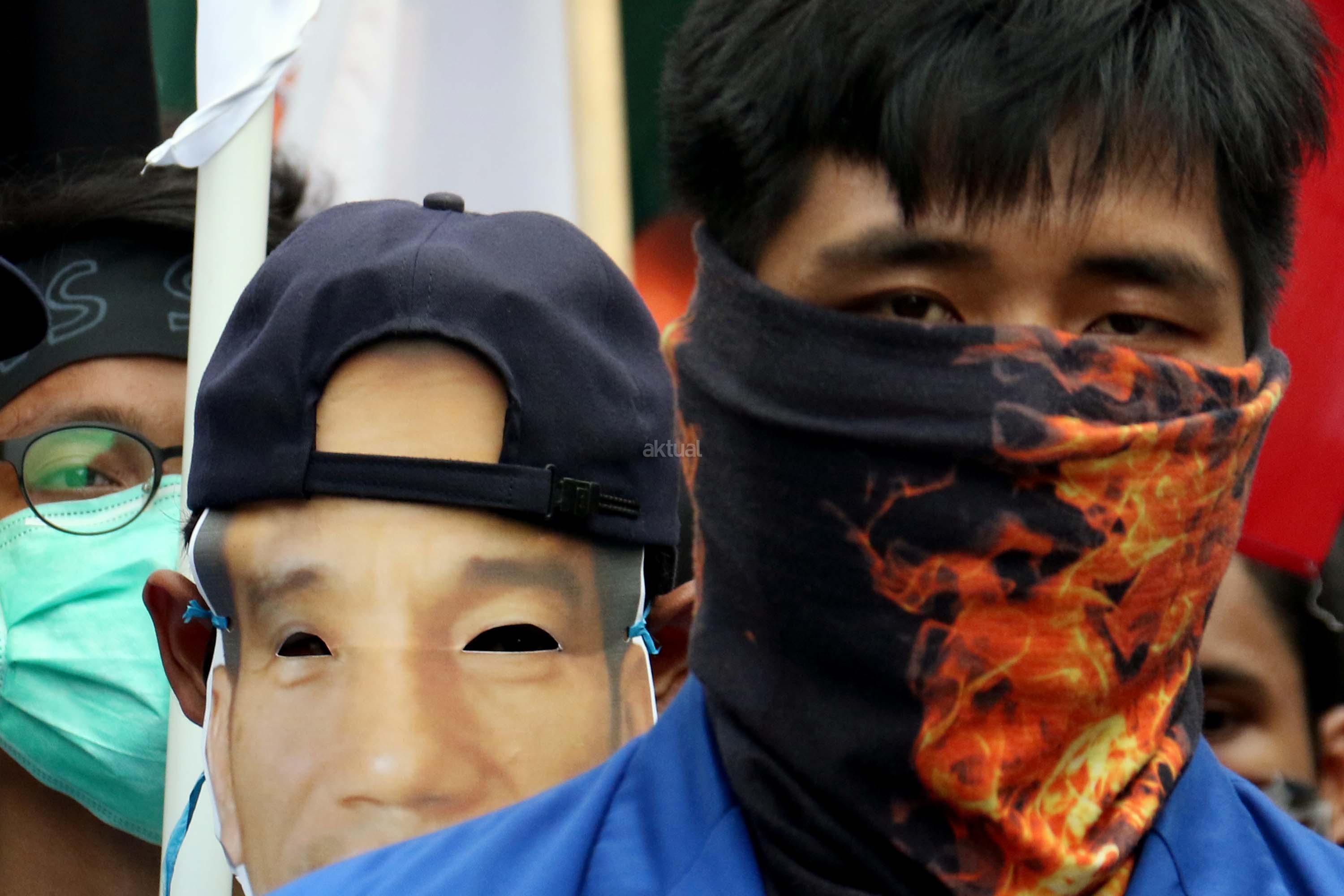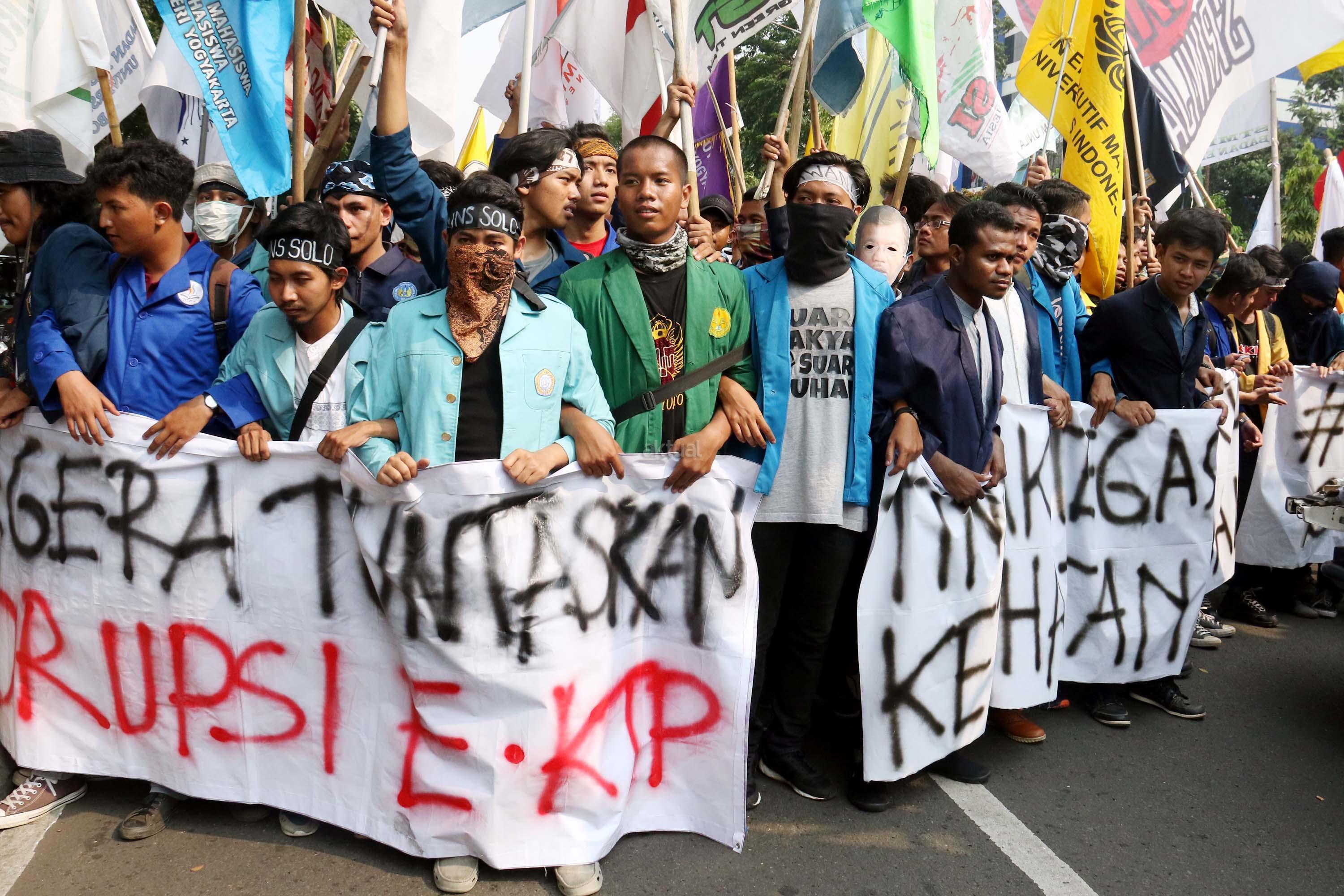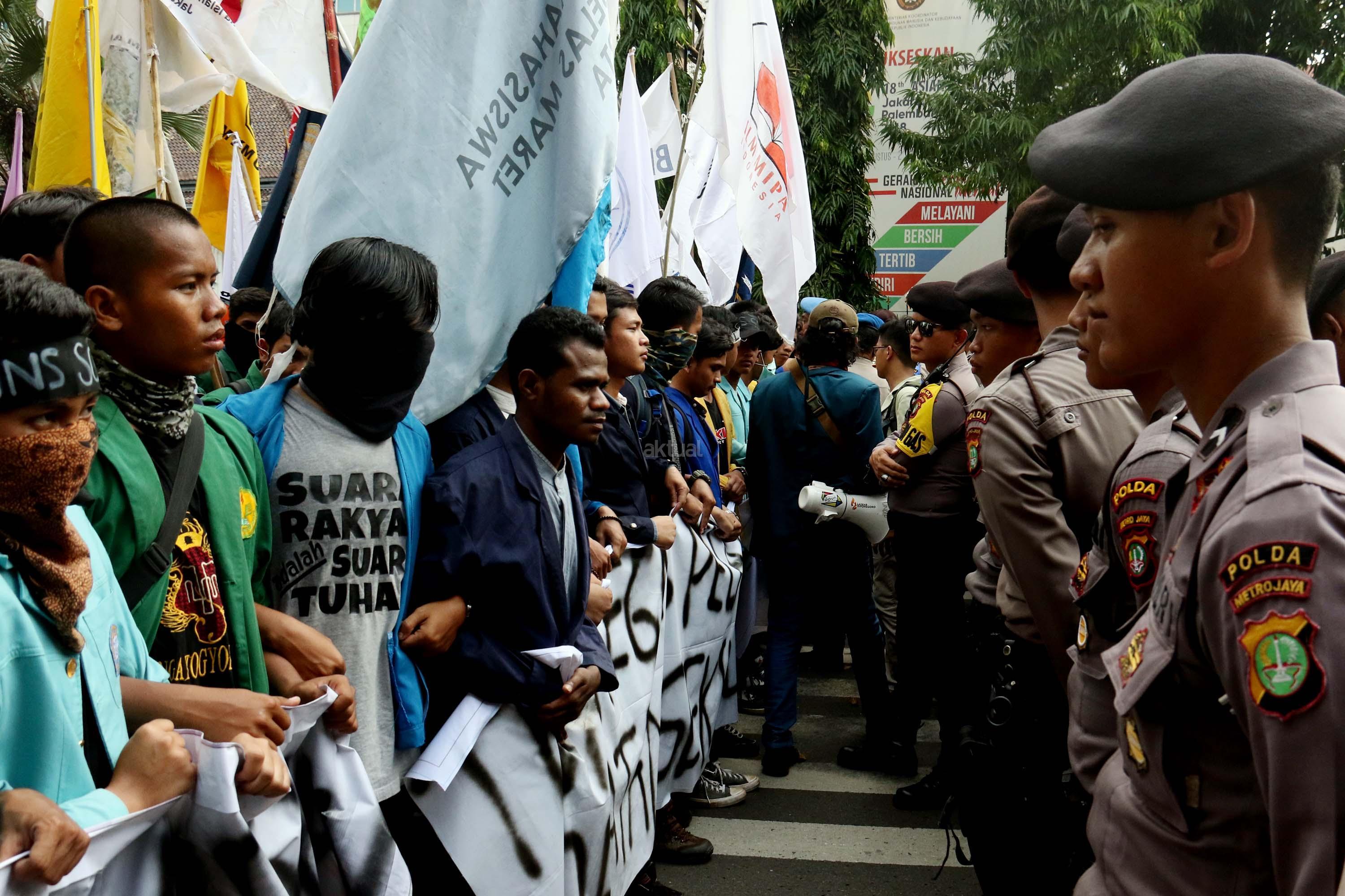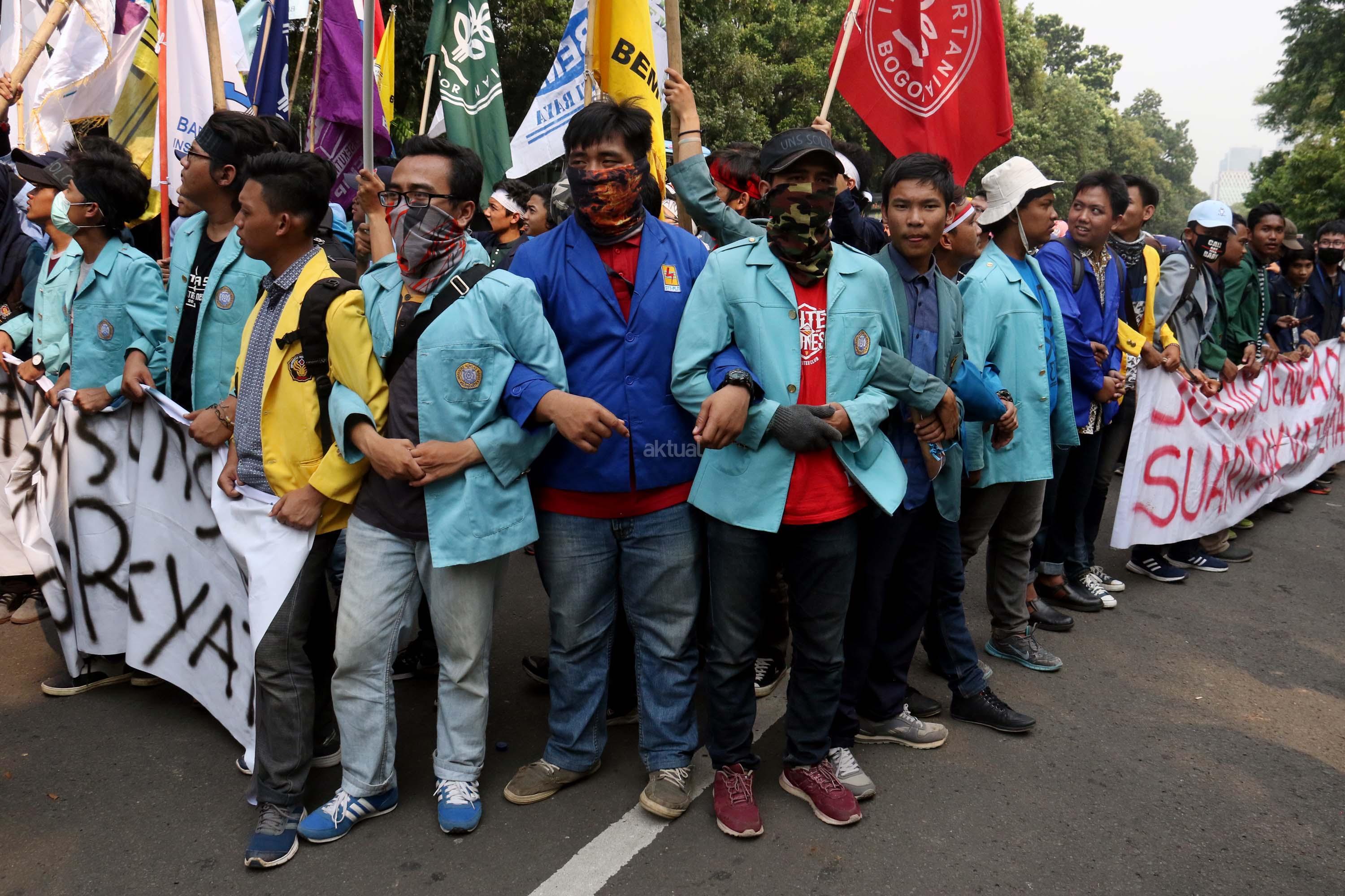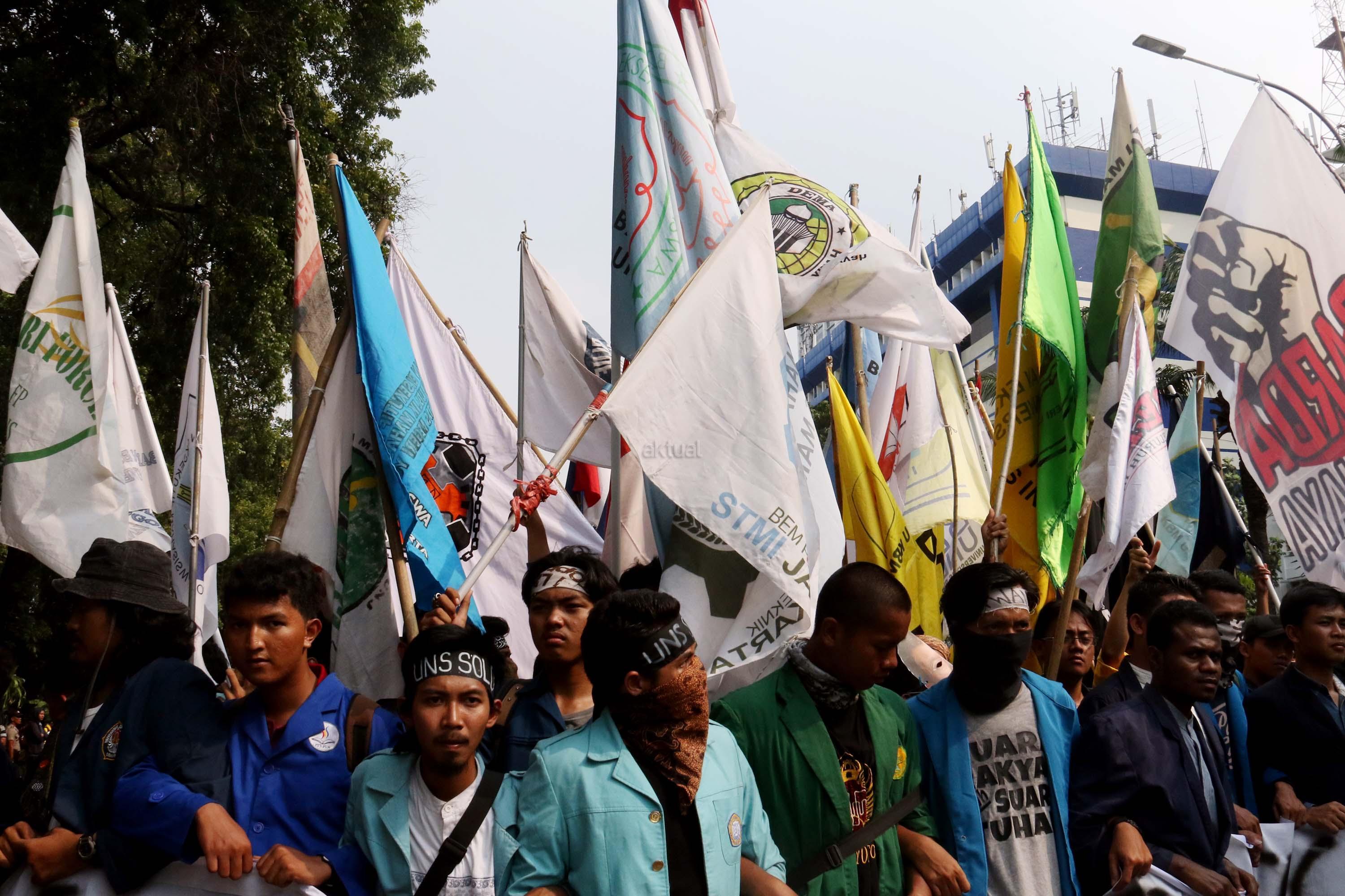 Ratusan mahasiswa yang tergabung dalam BEM Seluruh Indonesia melakukan longmarch menuju Istana Merdeka di Jalan Medan Merdeka Barat, Jakarta, Senin (22/5/2017). Dalam aksinya mereka meminta Kembalikan subsidi listrik 900 VA dan menolaj kenaikan Tarif Dasar Listrik (TDL) , serta jamin keterjangkauan harga kebutuhan pokok bagi rakyat. AKTUAL/Munzir