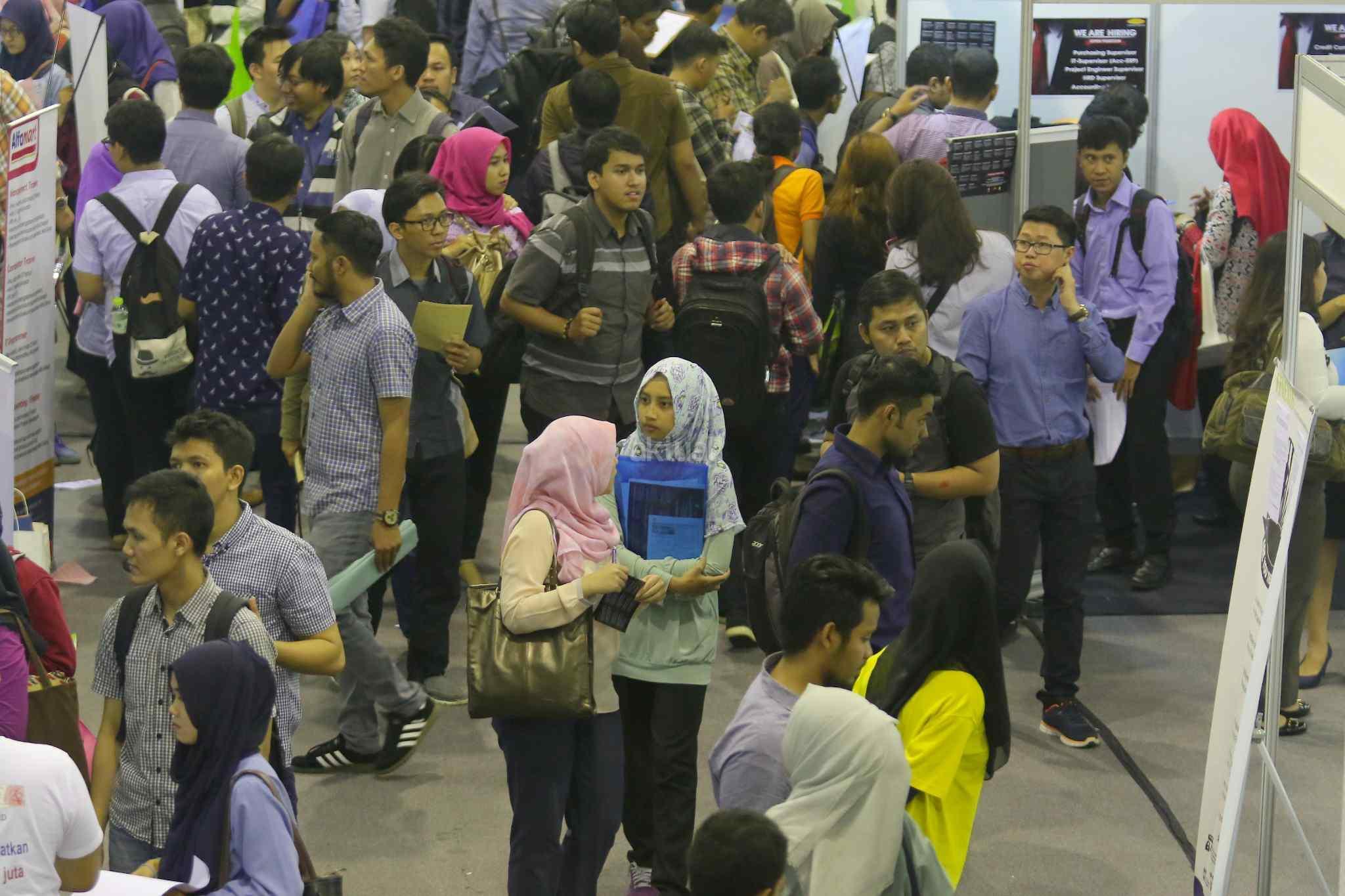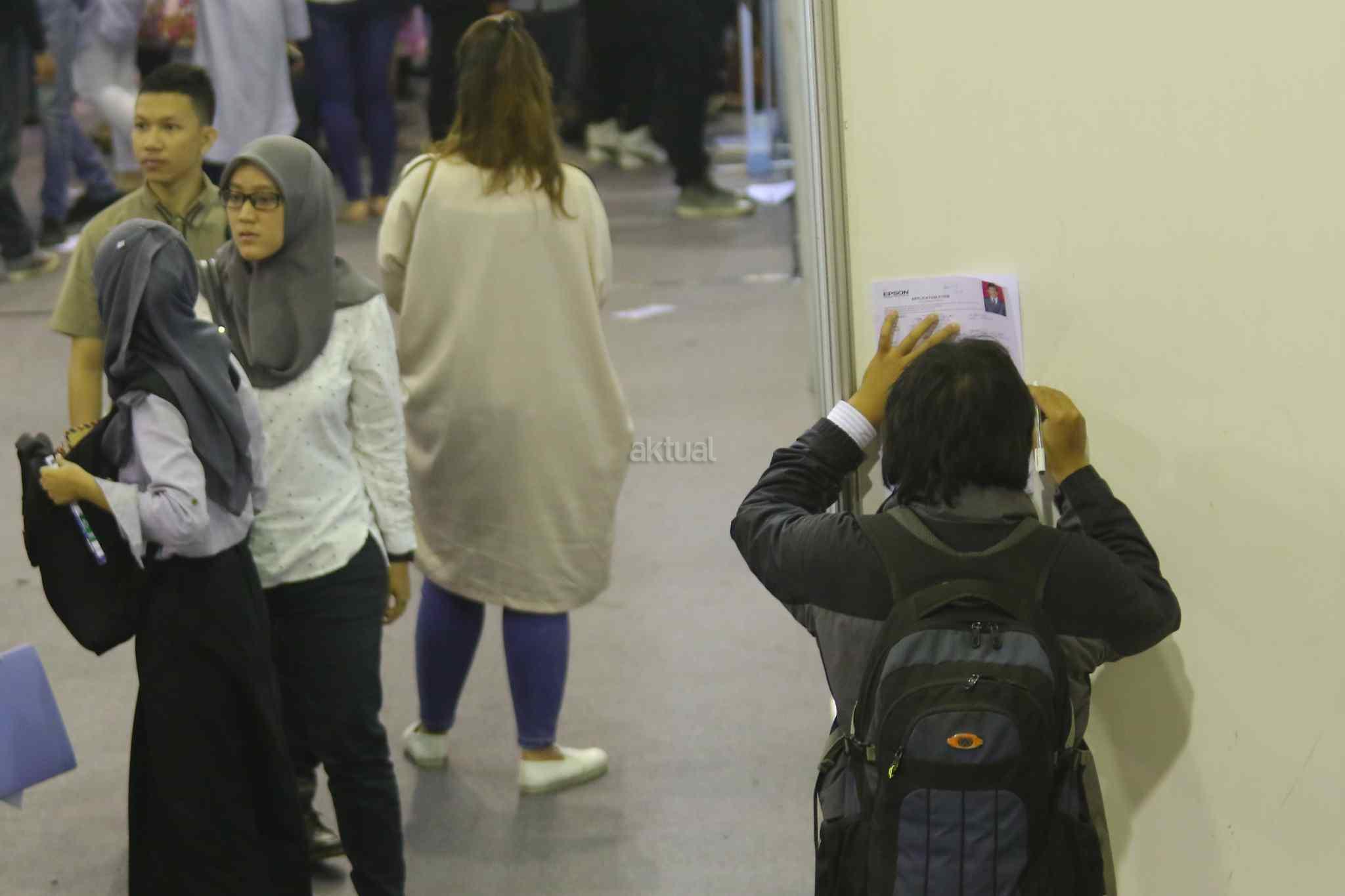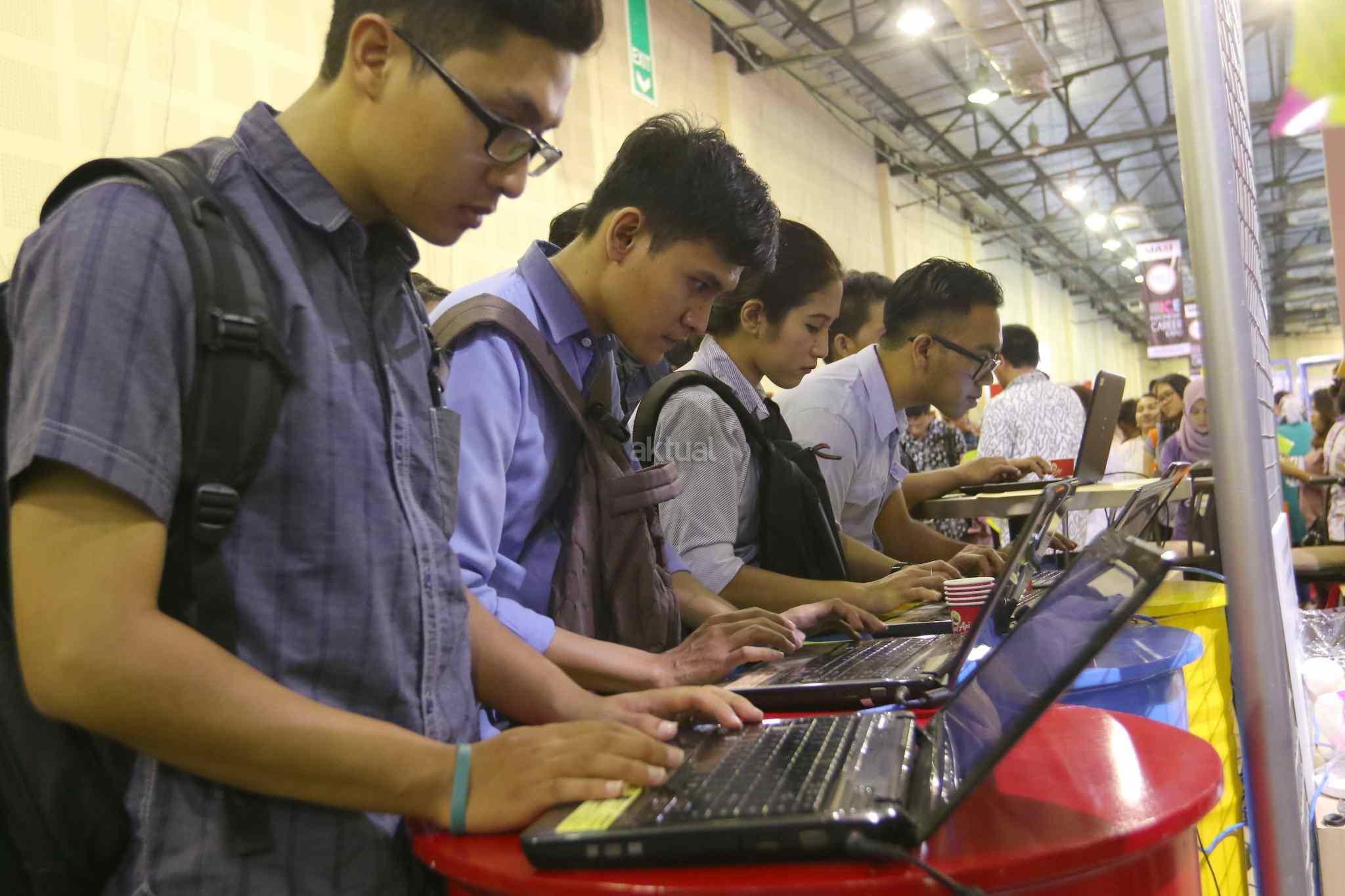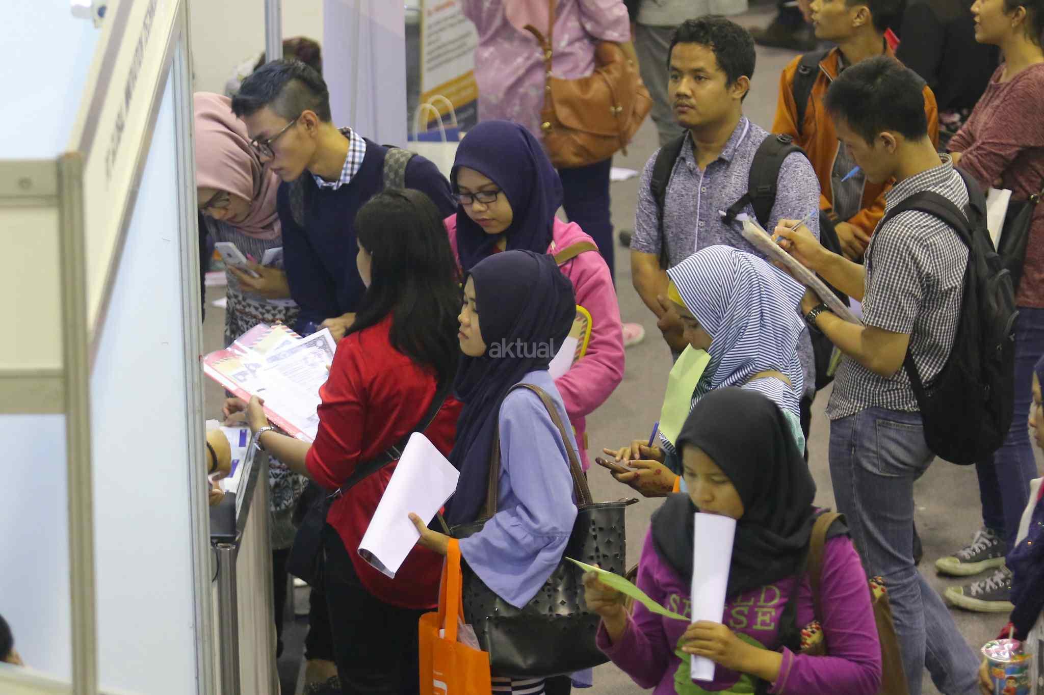 Ratusan pelamar memadati bursa kerja di Balai Kartini, Jakarta, Sabtu (15/10). Pada tahun ini angkatan kerja Indonesia mencapai 127,6 juta dengan tingkat pengangguran keseluruhan sebesar 5,5 persen atau tujuh juta orang. Sementara itu lebih dari 50 persen dari pekerja berkarir pada sektor informal. AKTUAL/Tino Oktaviano