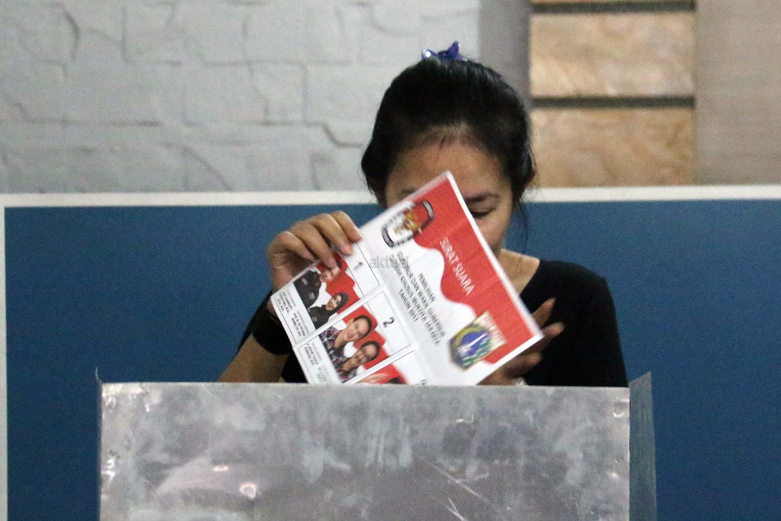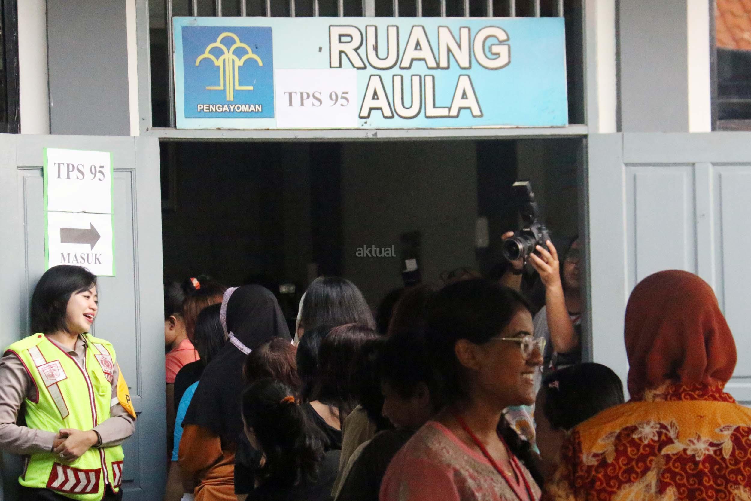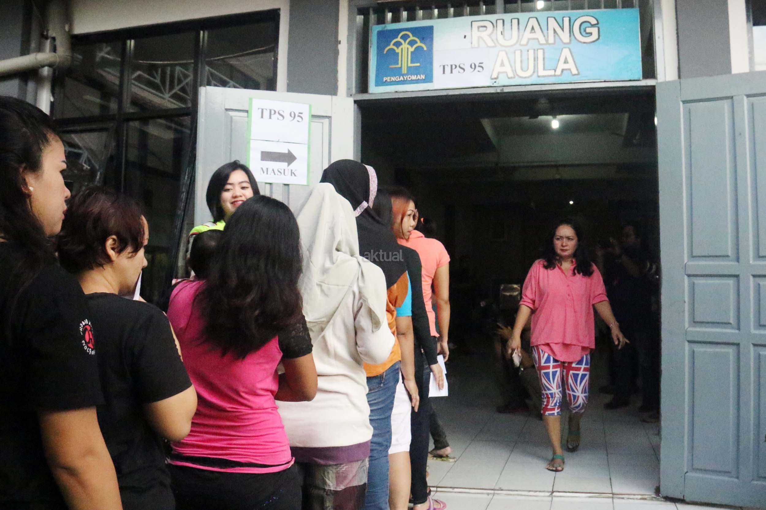 Ratusan warga binaan Rumah Tahanan (Rutan) Pondok Bambu ikut melakukan penyoblosan di TPS 95 di Rutan Pondok Bambu, Jakarta Timur, Rabu (15/2/2017). Sebanyak 157 warga binaan Rumah Tahanan (Rutan) wanita Pondok Bambu masuk daftar pemilih tetap (DPT) dan terdapat 161 surat suara yang tersedia. AKTUAL/Munzir
