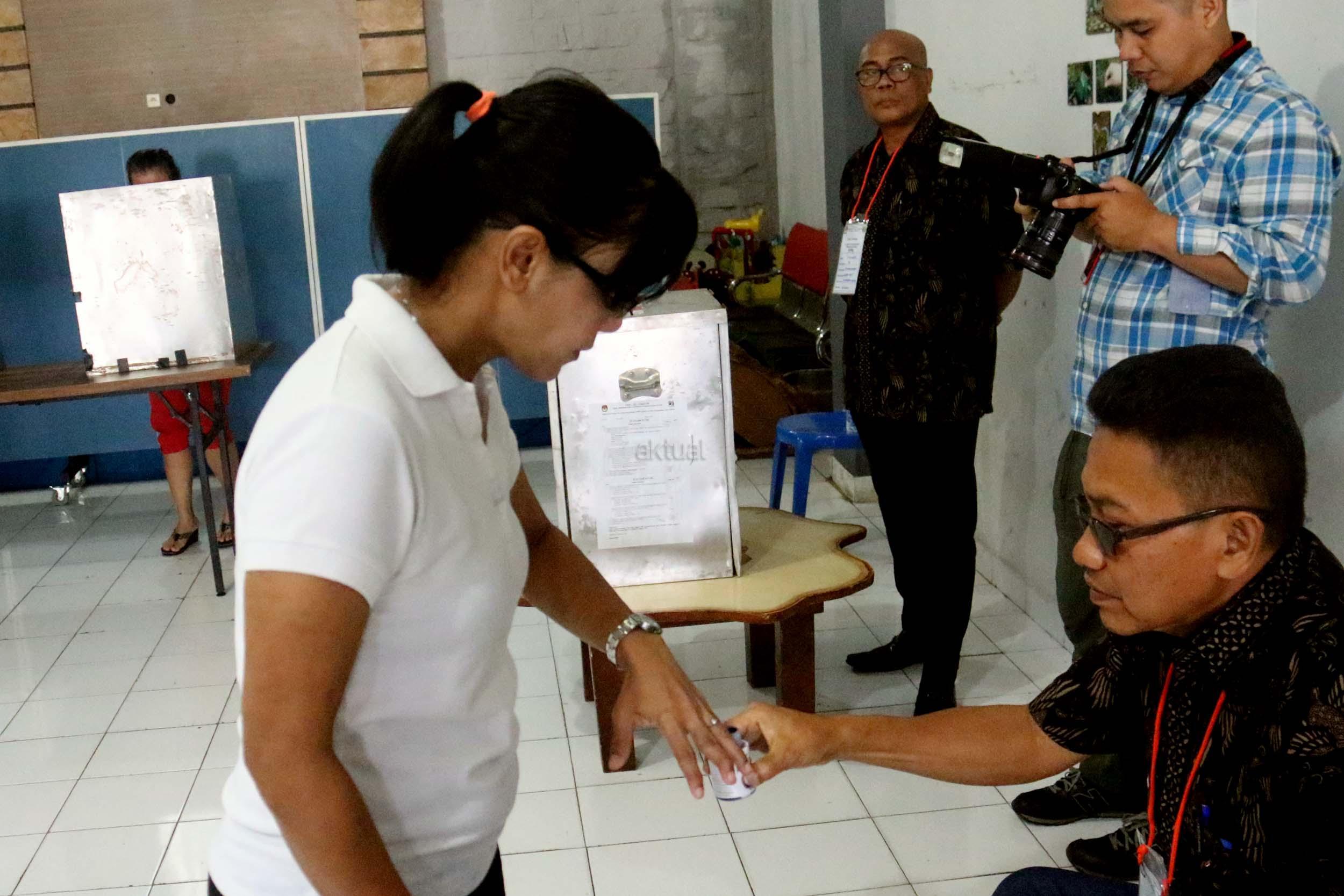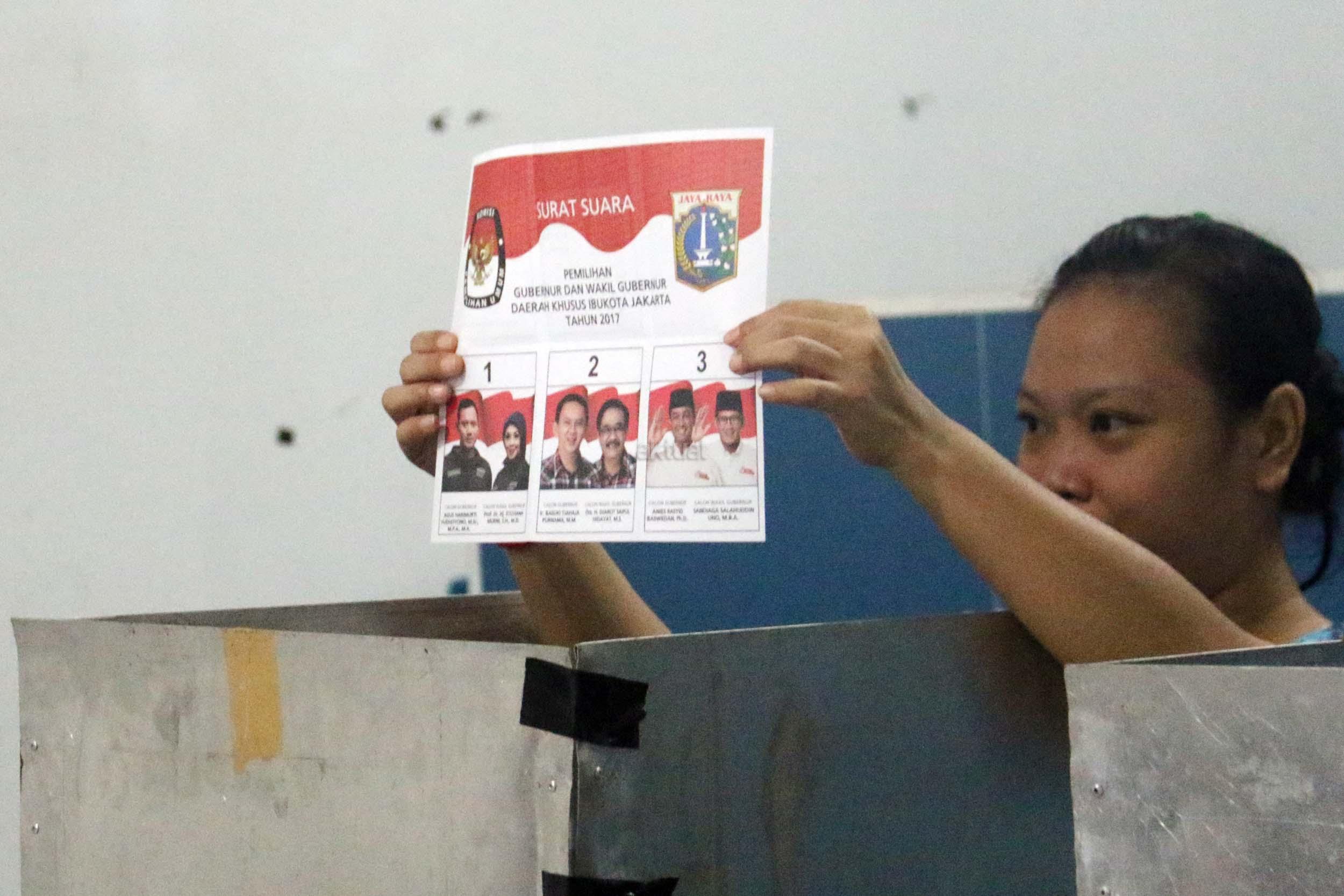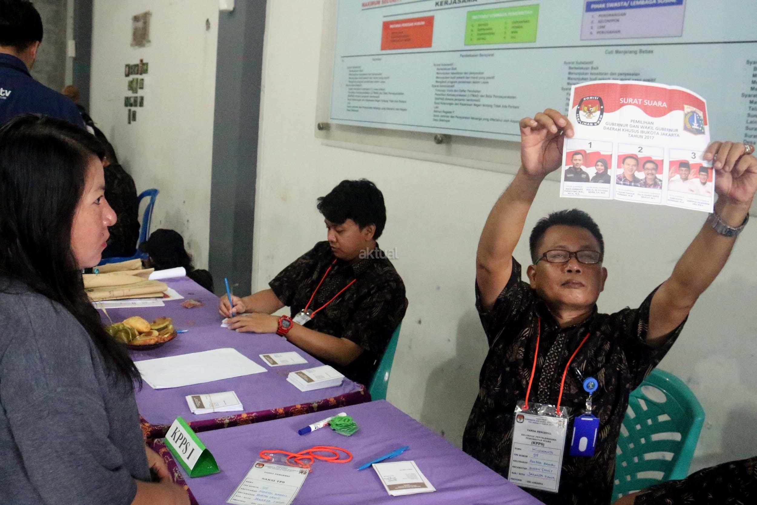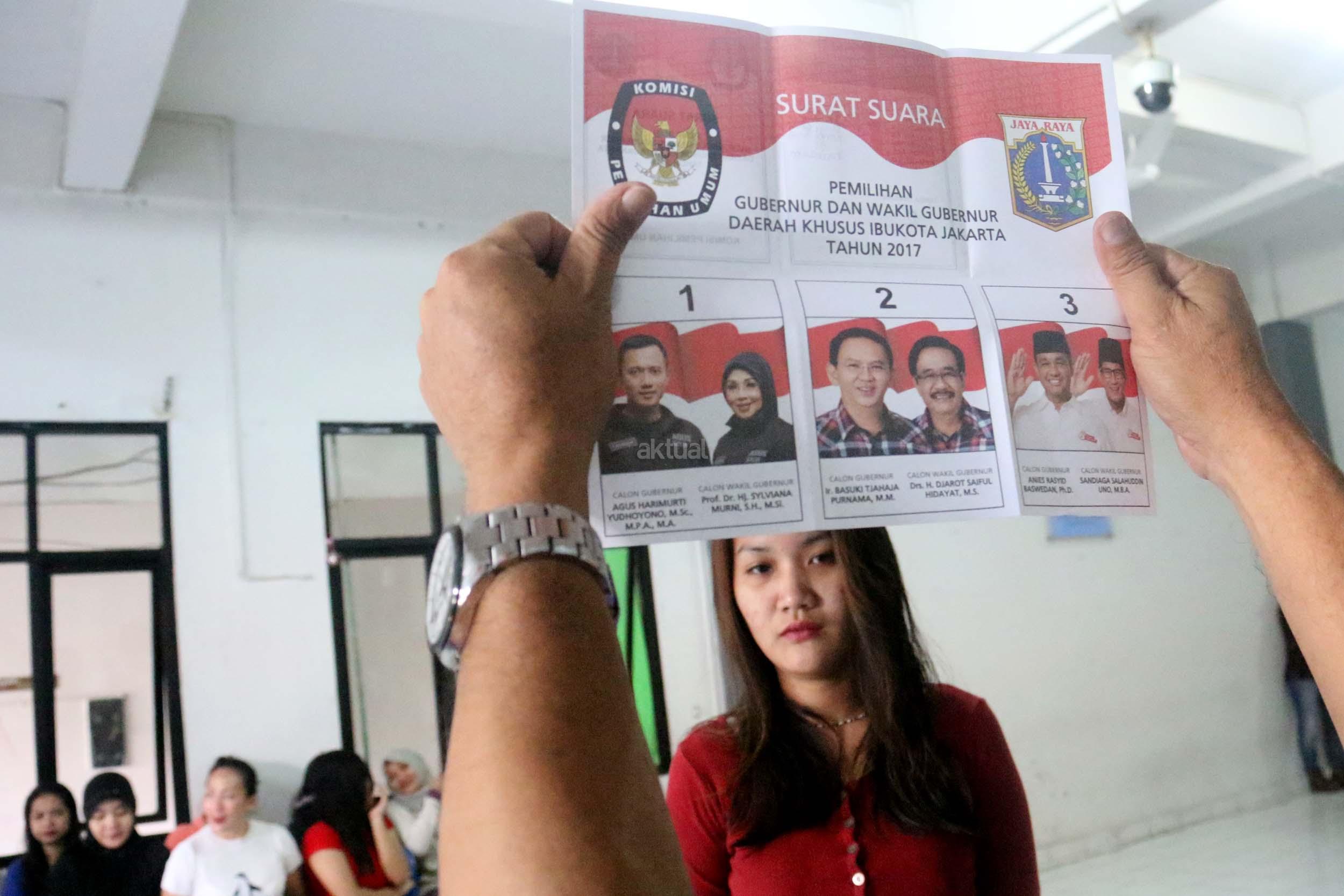 Ratusan warga binaan Rumah Tahanan (Rutan) Pondok Bambu ikut melakukan penyoblosan di TPS 95 di Rutan Pondok Bambu, Jakarta Timur, Rabu (15/2/2017). Sebanyak 157 warga binaan Rumah Tahanan (Rutan) wanita Pondok Bambu masuk daftar pemilih tetap (DPT) dan terdapat 161 surat suara yang tersedia. AKTUAL/Munzir
