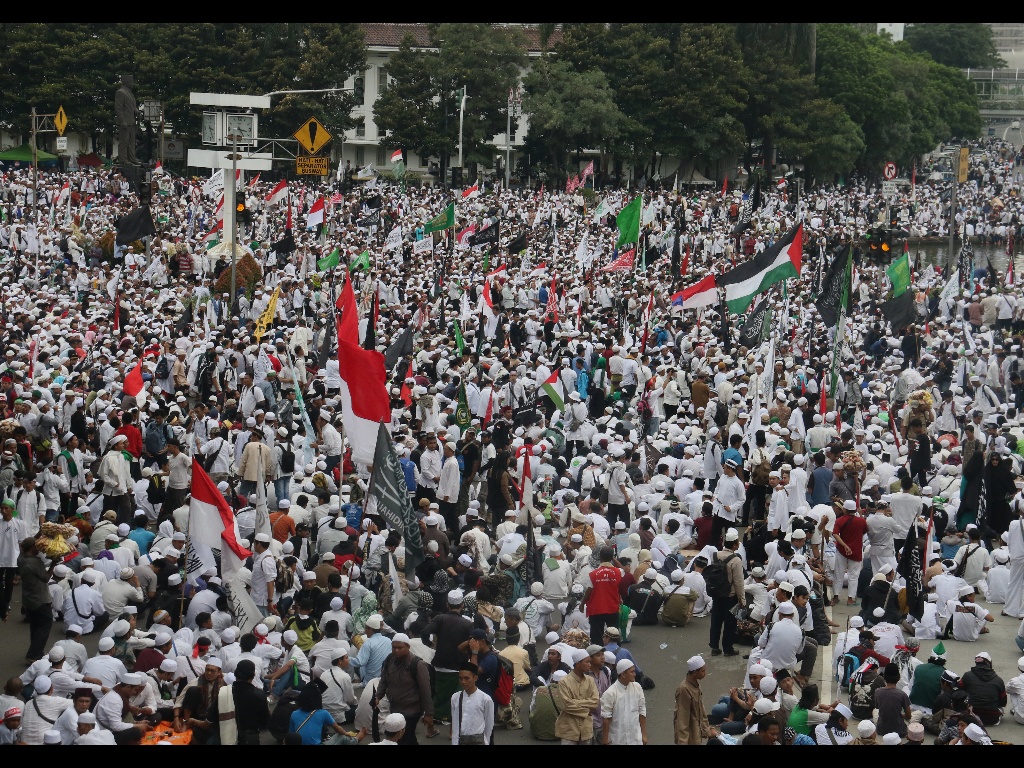 Ratusan Ribu Umat Islam Tertahan Tidak Bisa Aksi di Depan Istana Merdeka