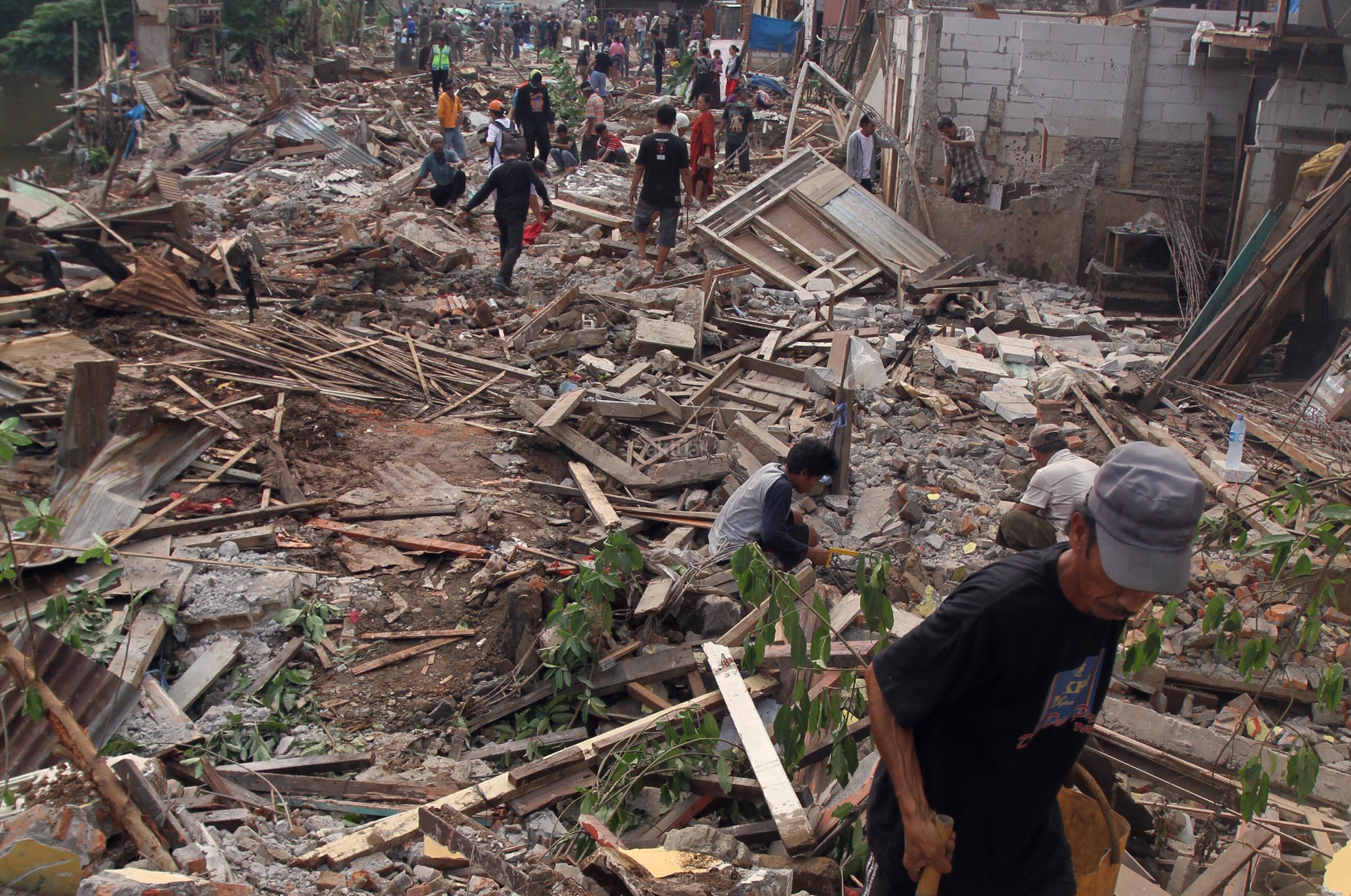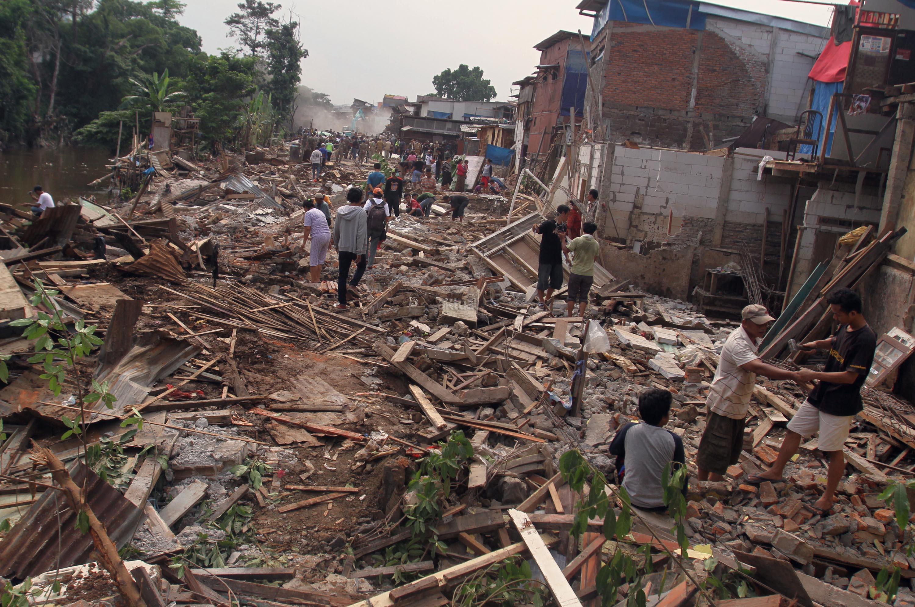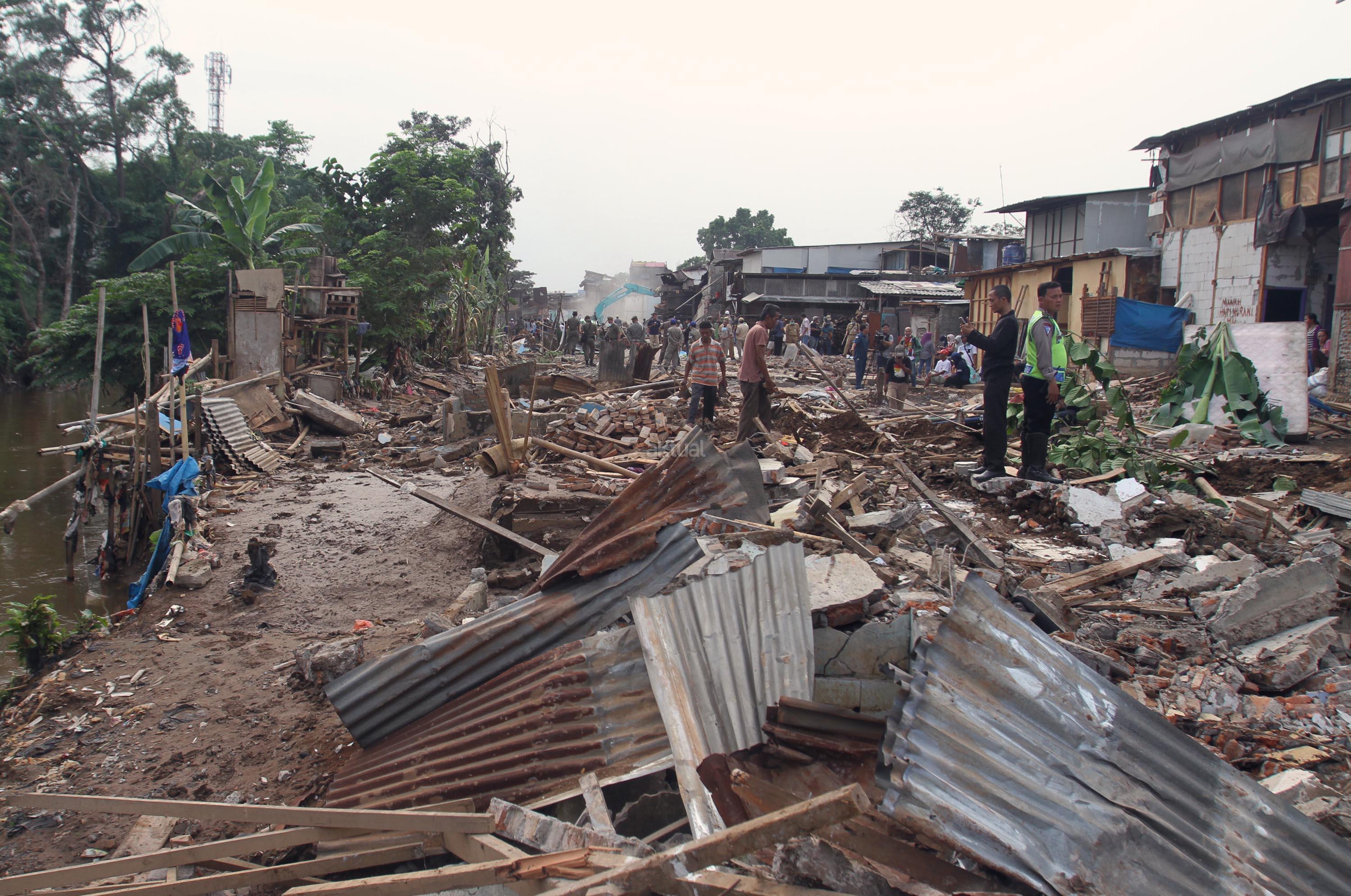 Ratusan Rumah Di Bantaran Kali Ciliwung di Bukit Duri Digusur