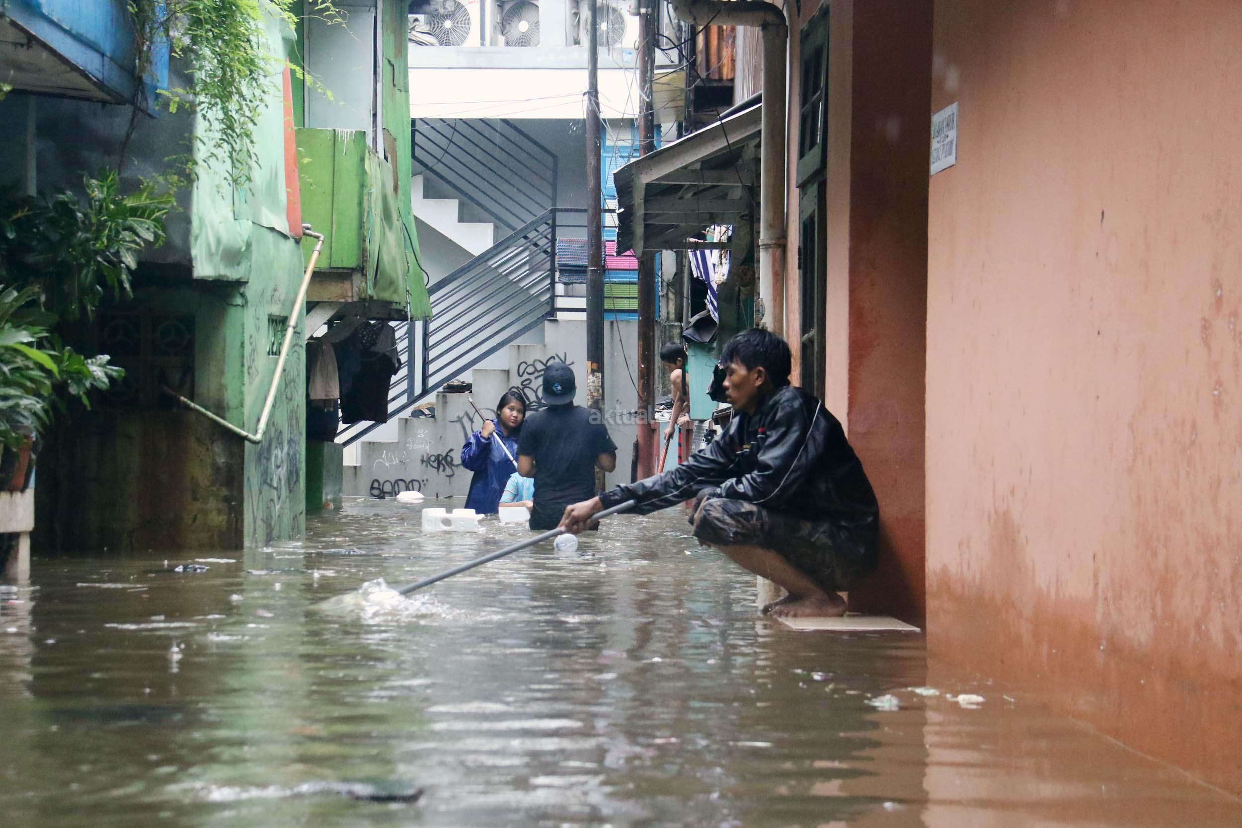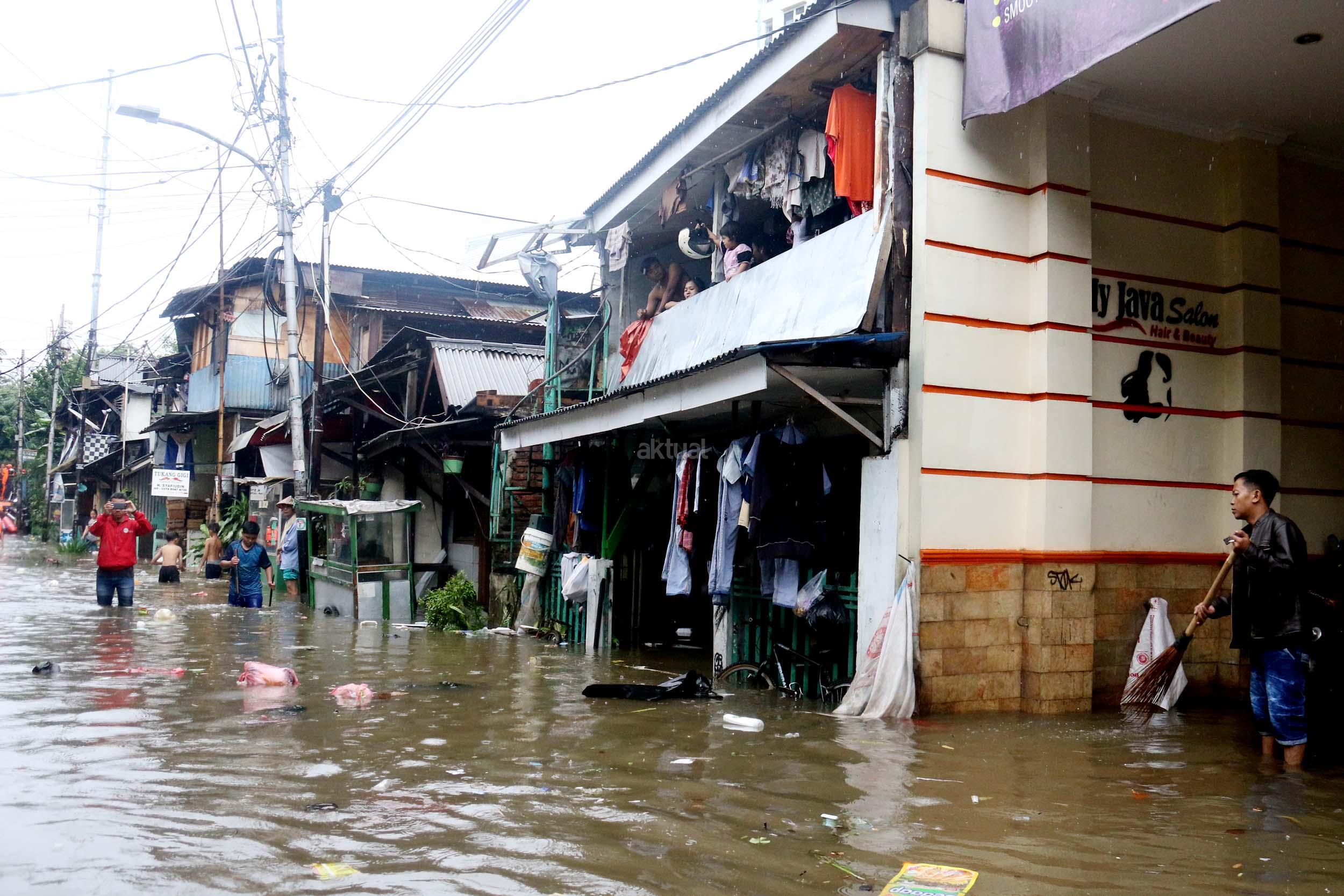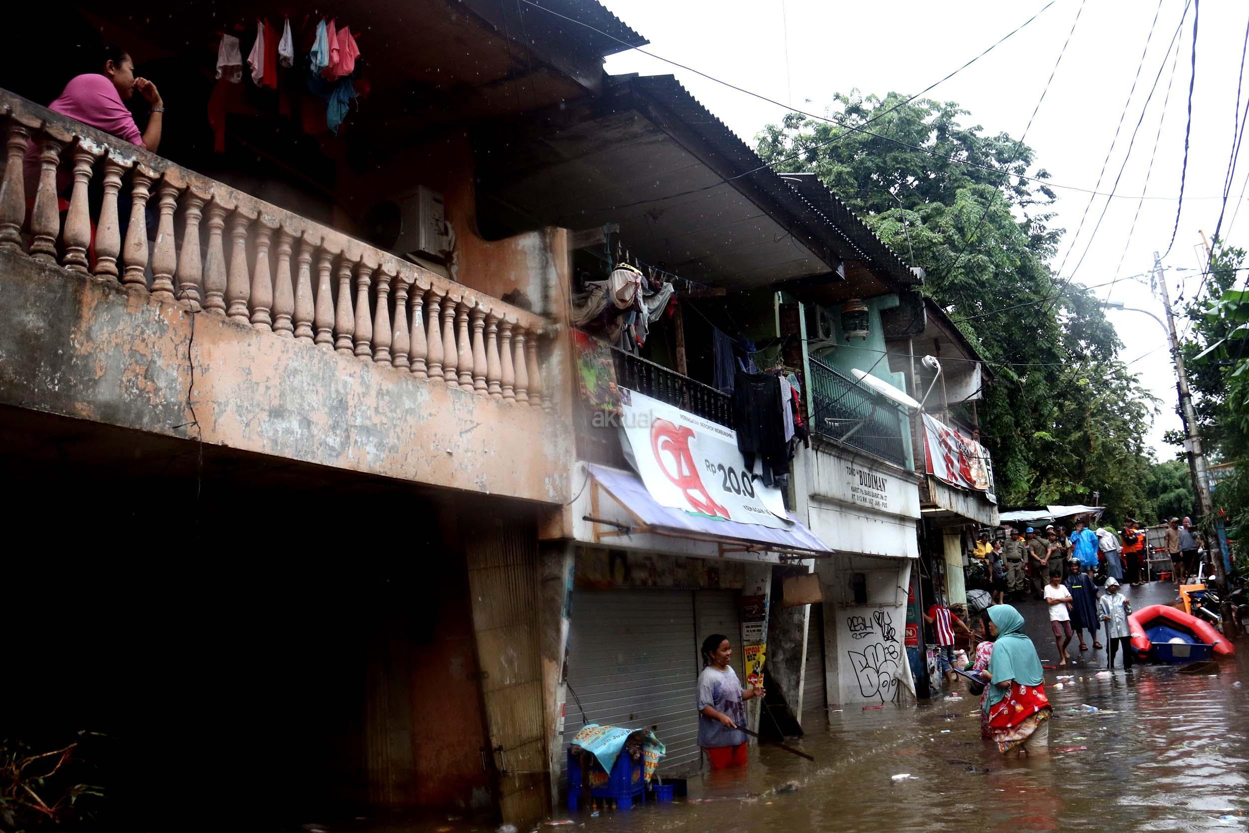 Ratusan rumah terendam banjir yang berada di kawasan Karet, Pasar Baru, Jakarta Pusat, Selasa (21/2/2017). Badan Nasional Penanggulangan Bencana (BNPB) menyebutkan bahwa ada 54 titik banjir yang tersebar di wilayah Jakarta dengan ketinggian bervariasi. AKTUAL/Munzir