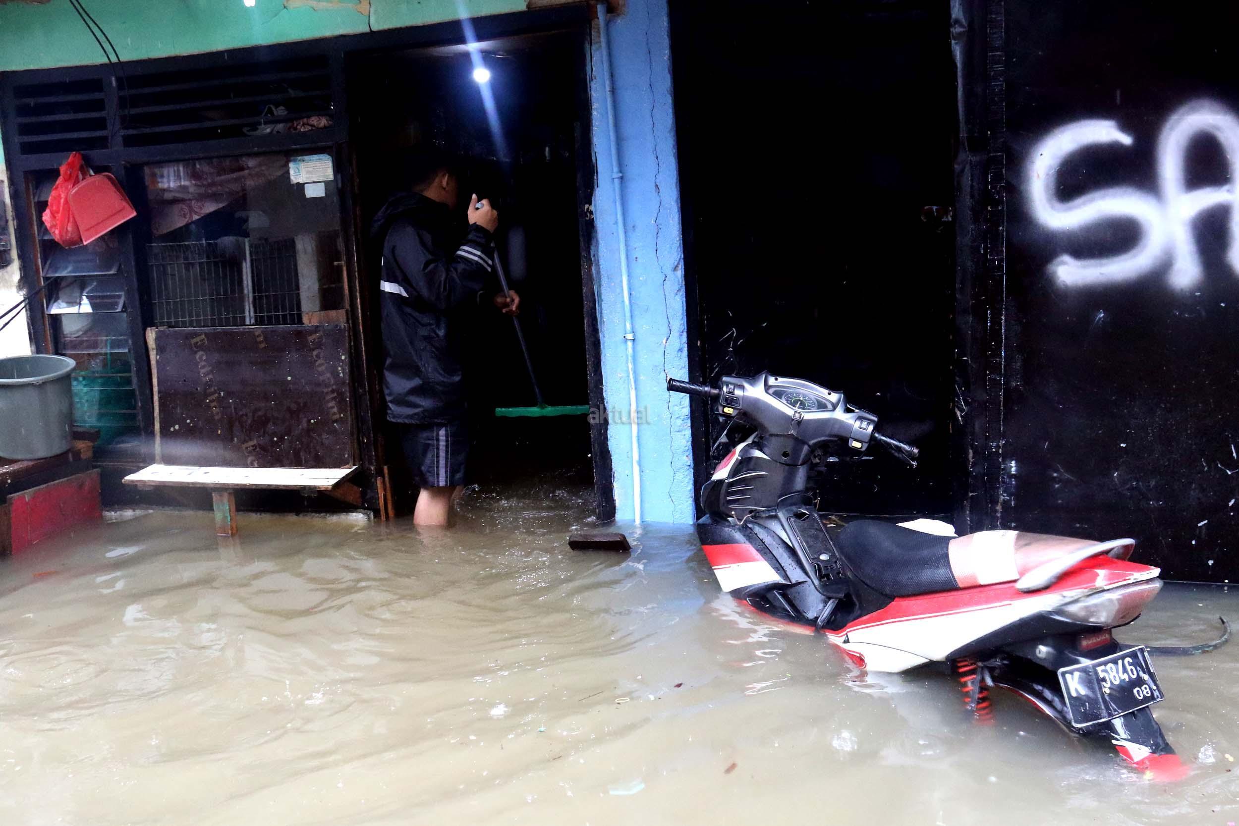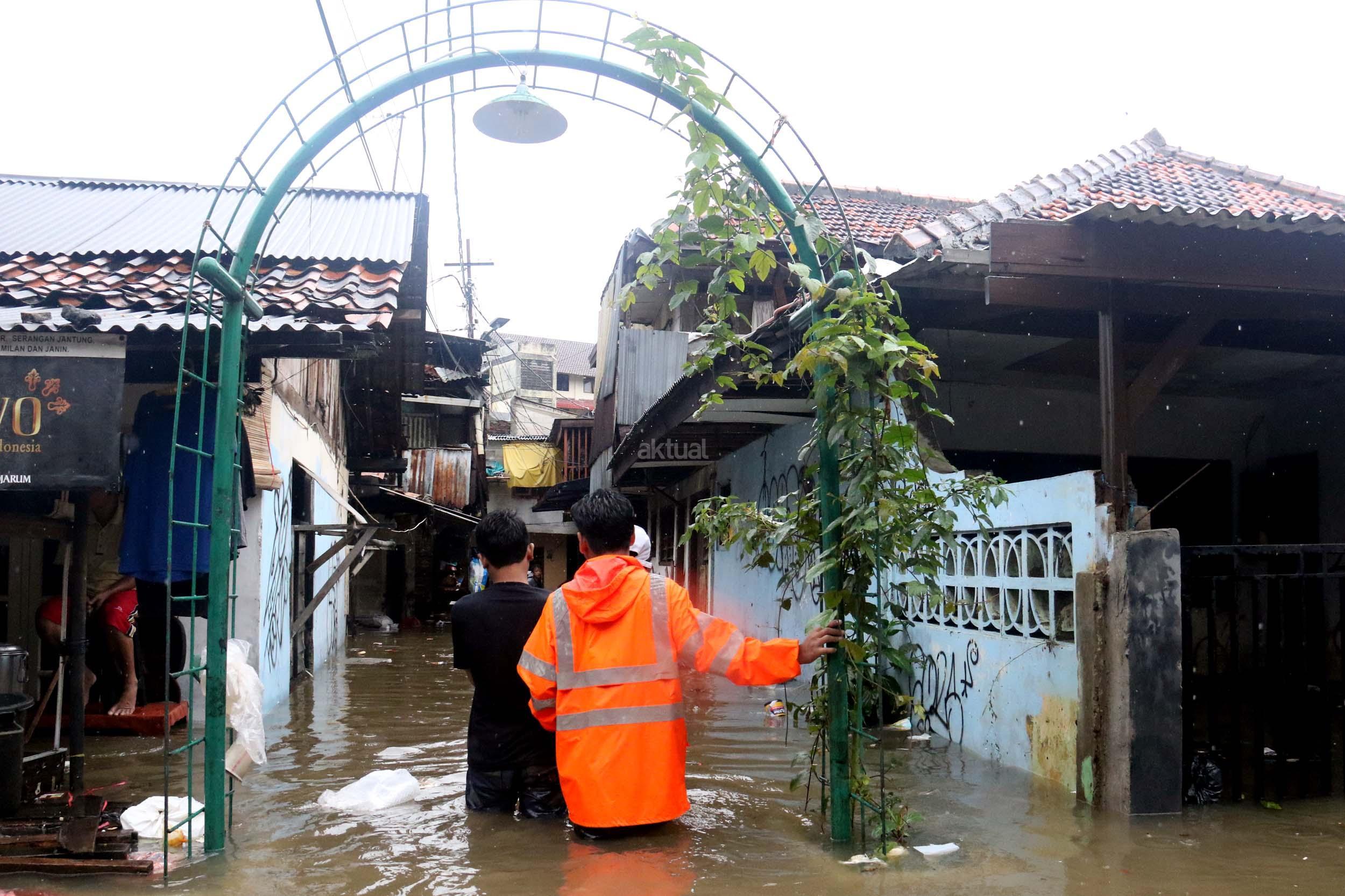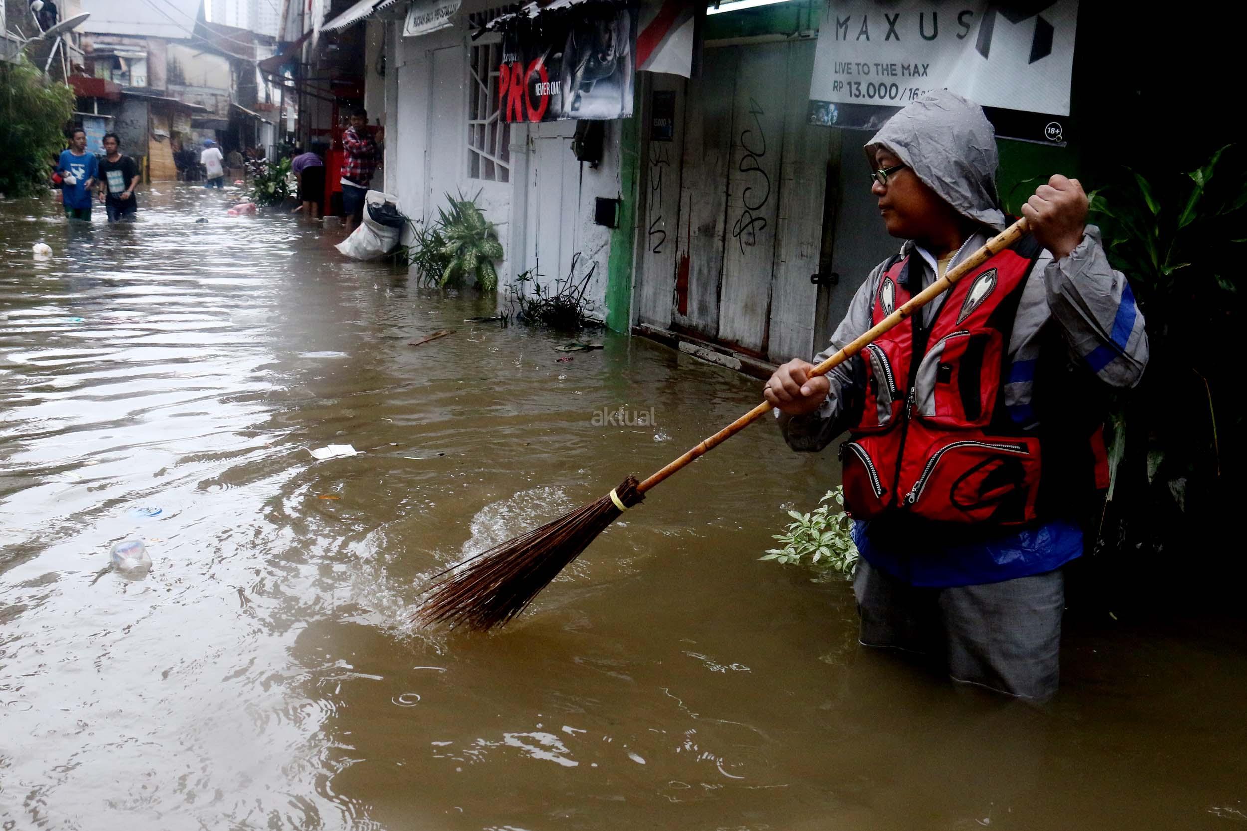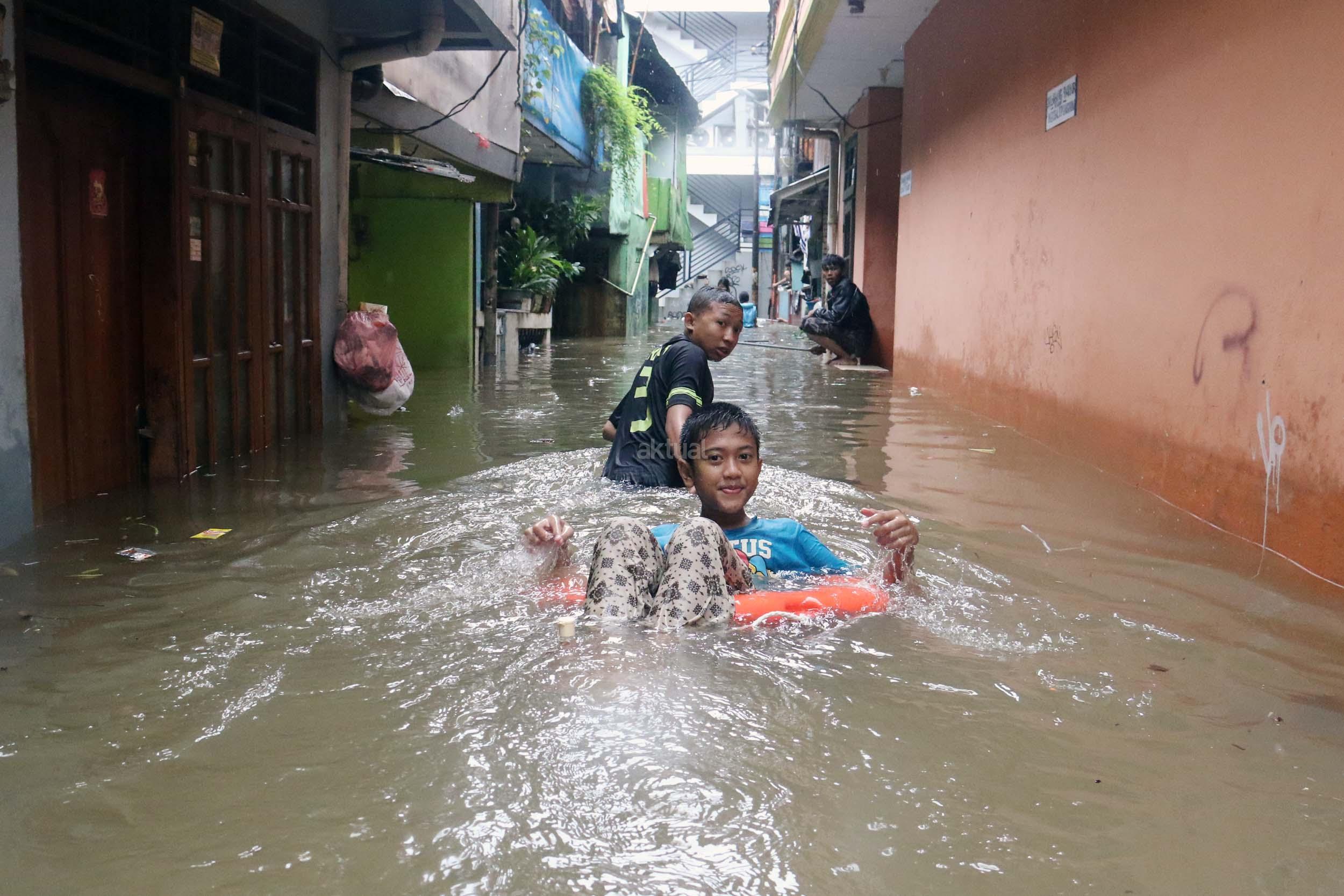 Ratusan rumah terendam banjir yang berada di kawasan Karet, Pasar Baru, Jakarta Pusat, Selasa (21/2/2017). Badan Nasional Penanggulangan Bencana (BNPB) menyebutkan bahwa ada 54 titik banjir yang tersebar di wilayah Jakarta dengan ketinggian bervariasi. AKTUAL/Munzir