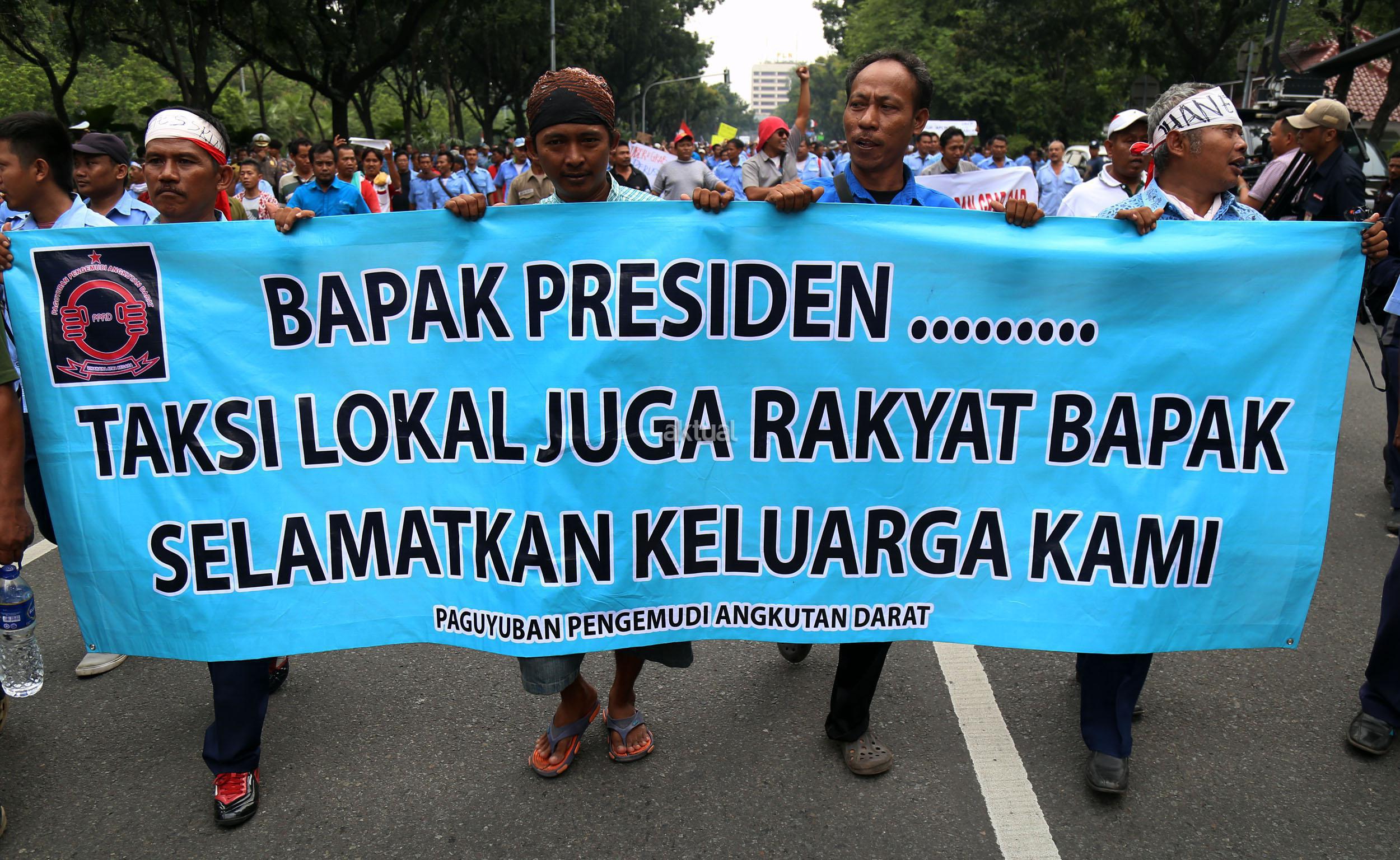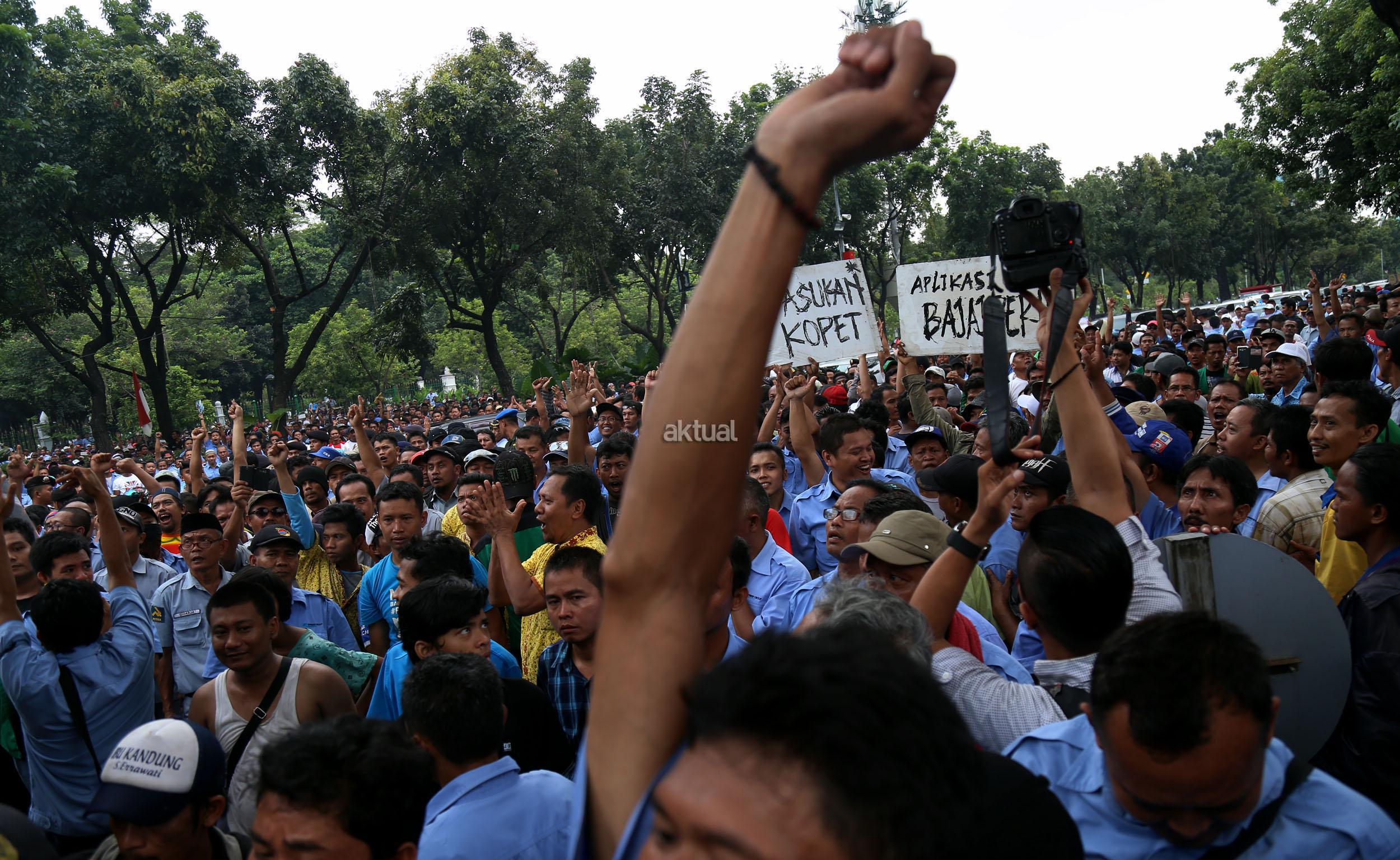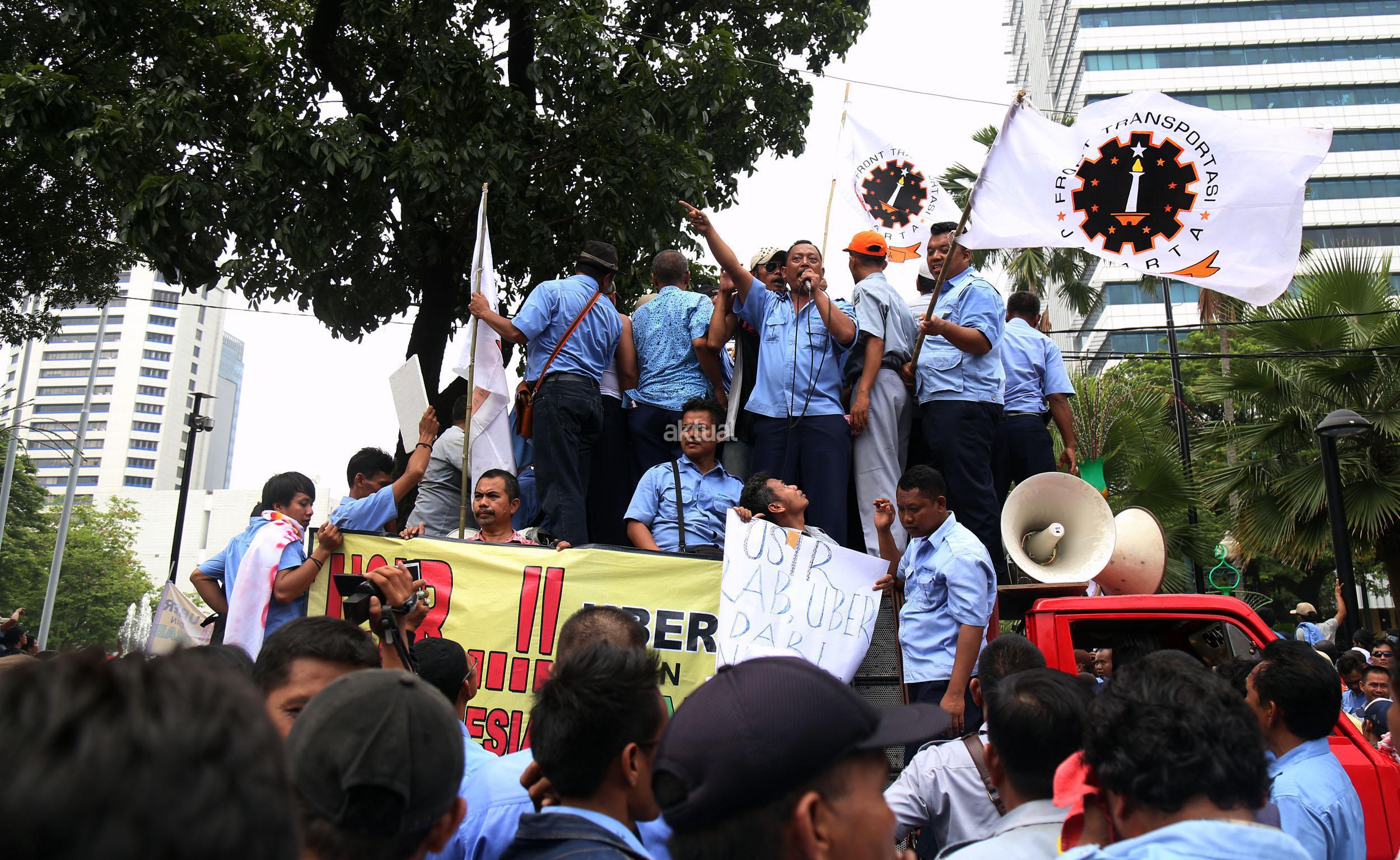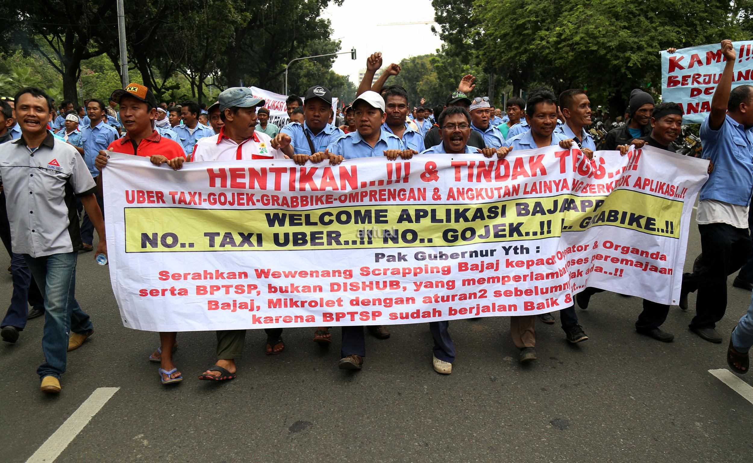 Dalam aksinya mendesak Gebenur DKI Jakarta Basuki Tjahaja Purnama (Ahok) untuk menolak keberdaan aplikasi dan menuntut pemerintah menutup aplikasi transportasi online, yakni Uber dan Grab Taksi.