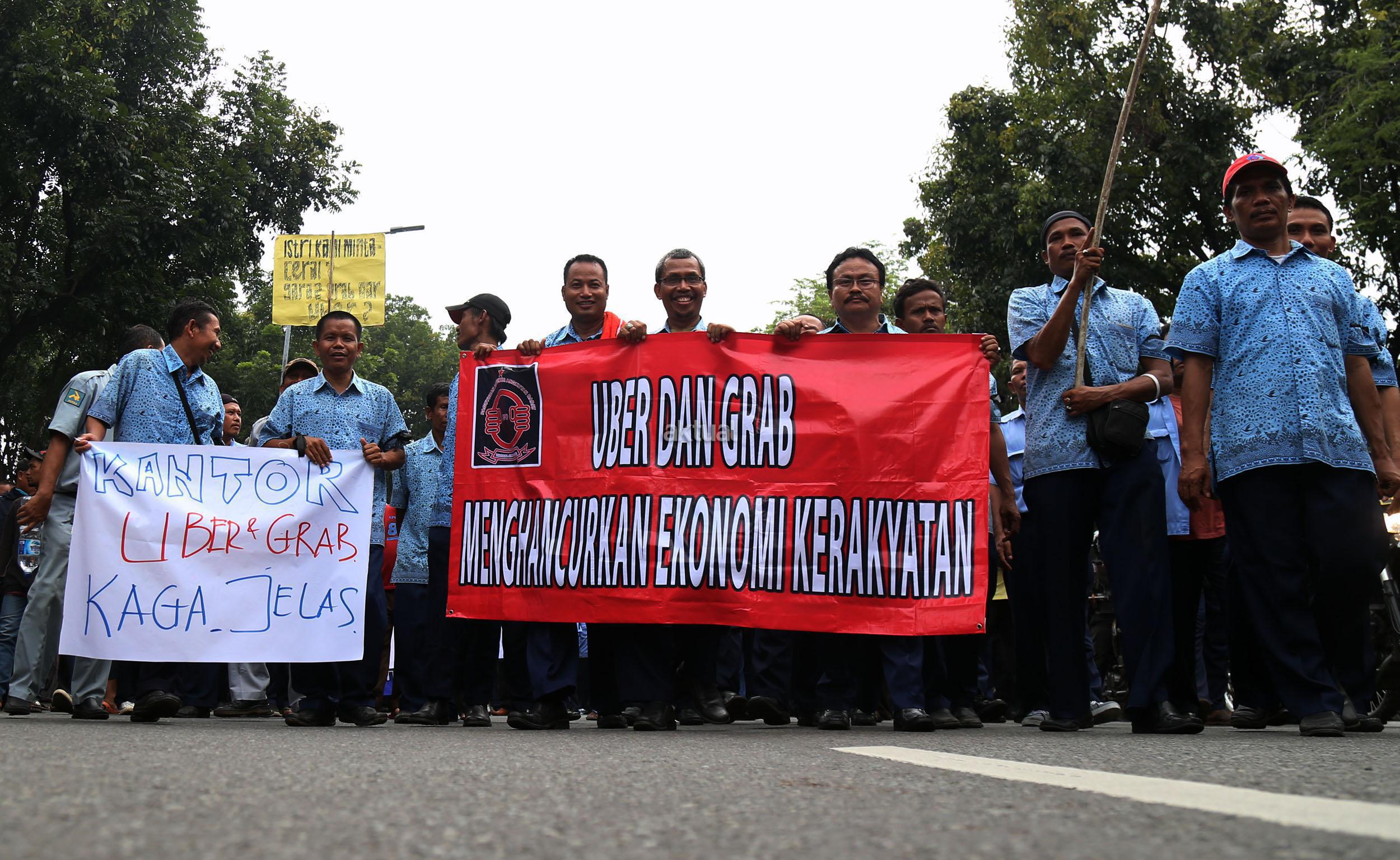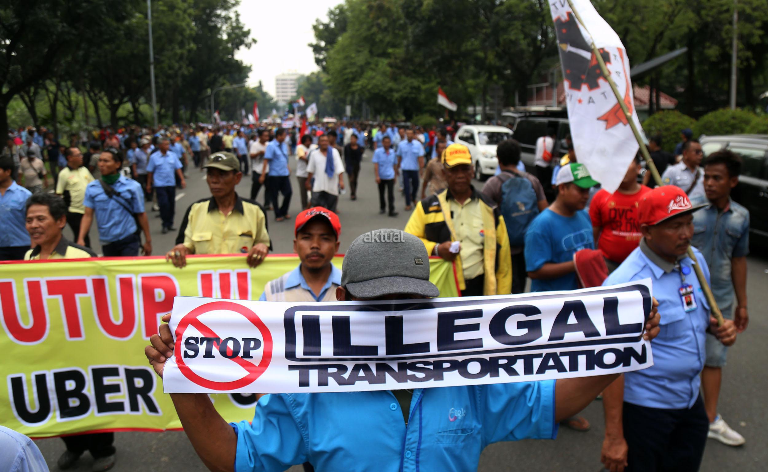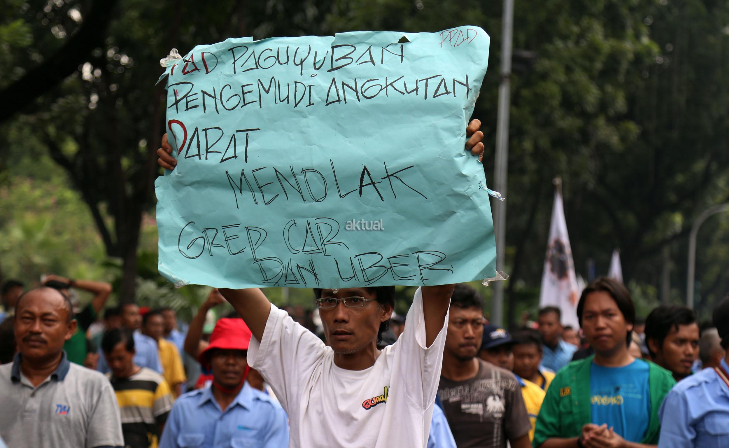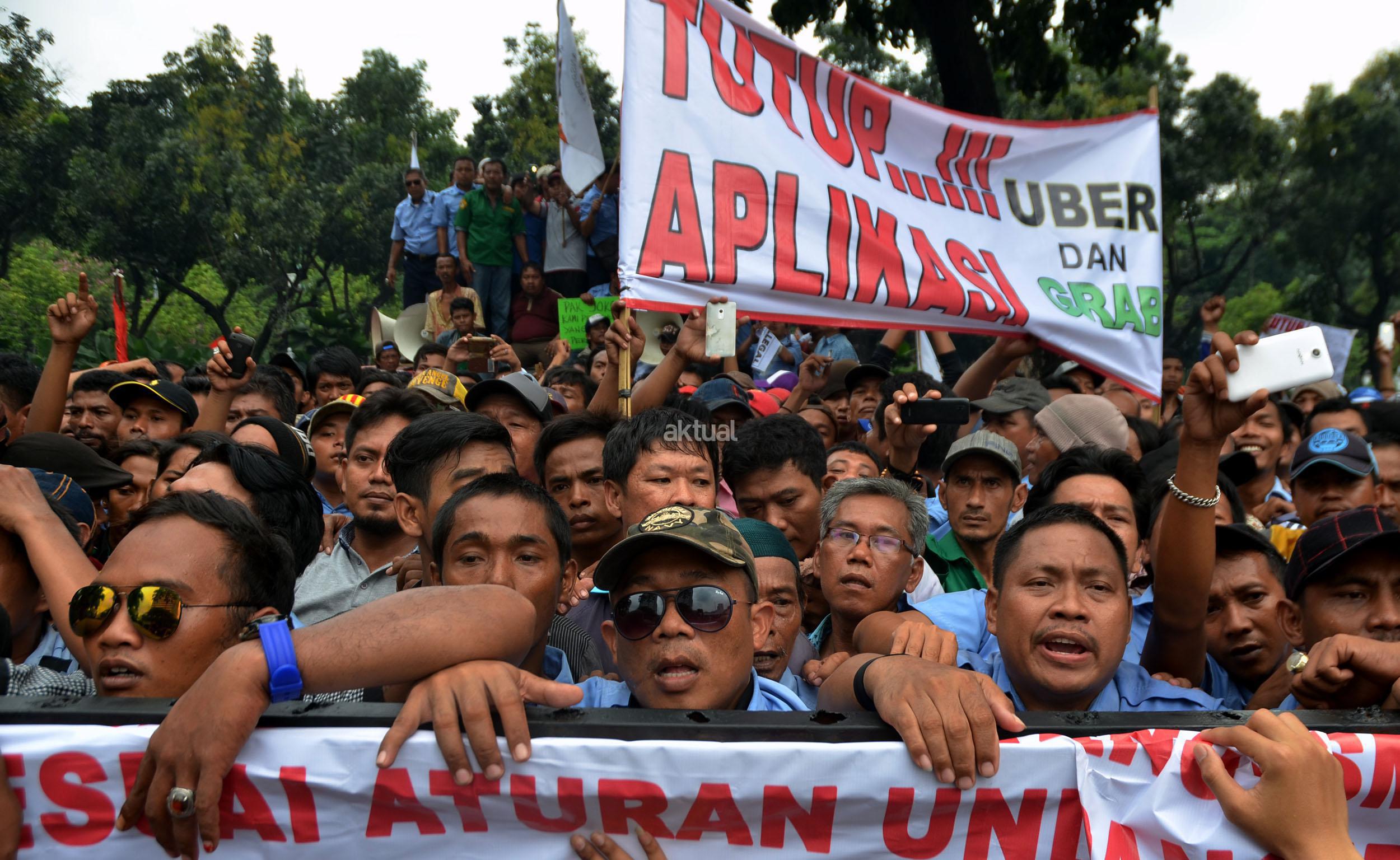 Dalam aksinya mendesak Gebenur DKI Jakarta Basuki Tjahaja Purnama (Ahok) untuk menolak keberdaan aplikasi dan menuntut pemerintah menutup aplikasi transportasi online, yakni Uber dan Grab Taksi.