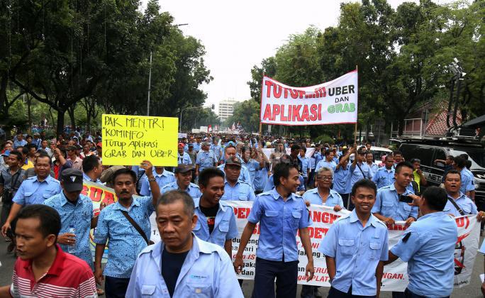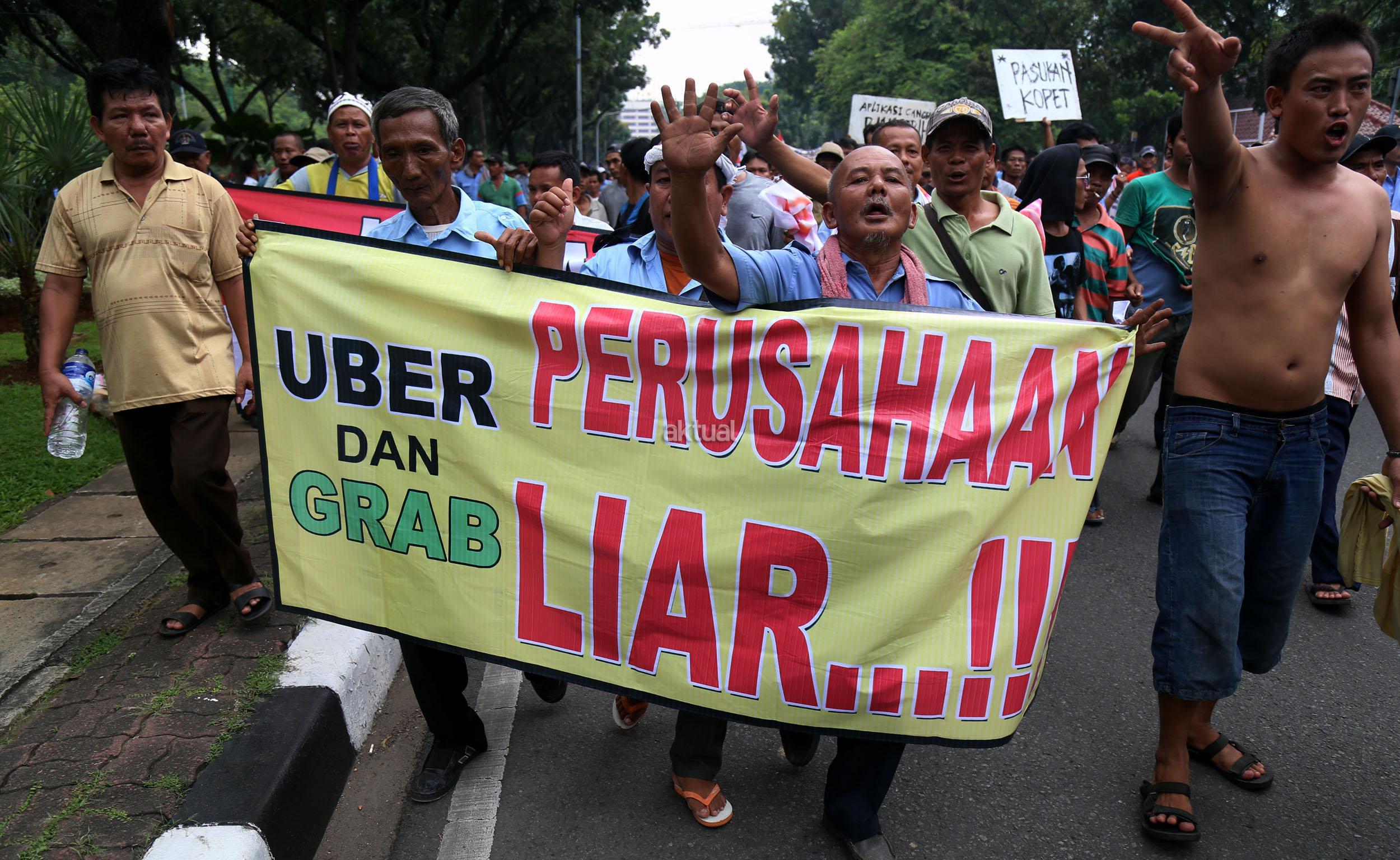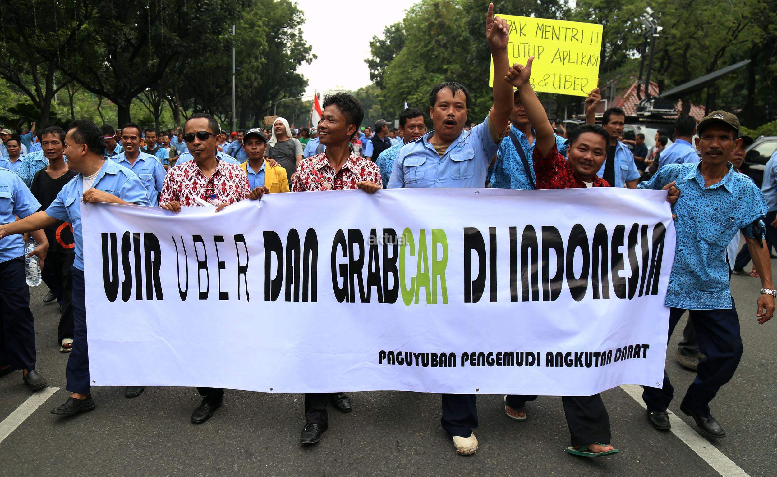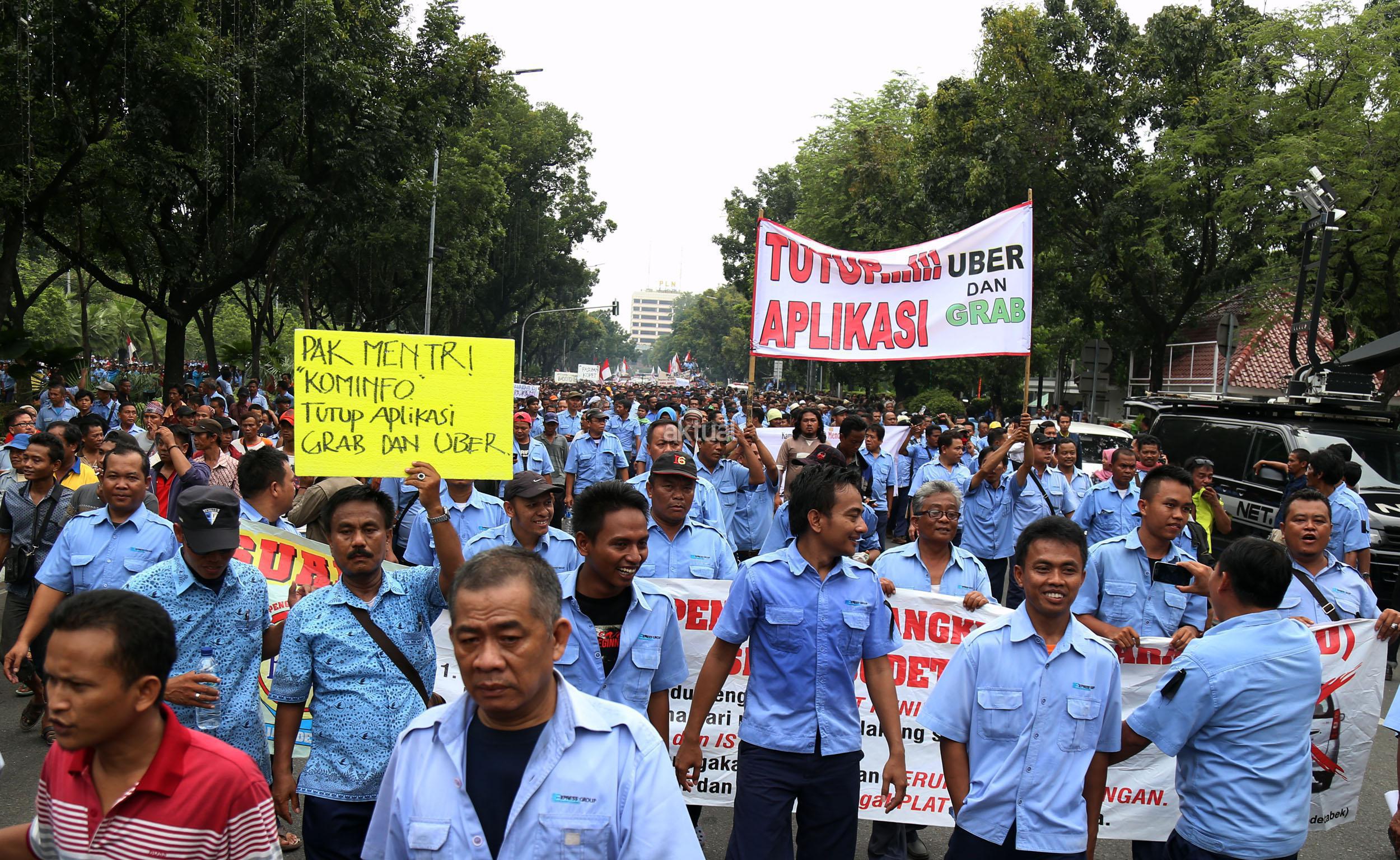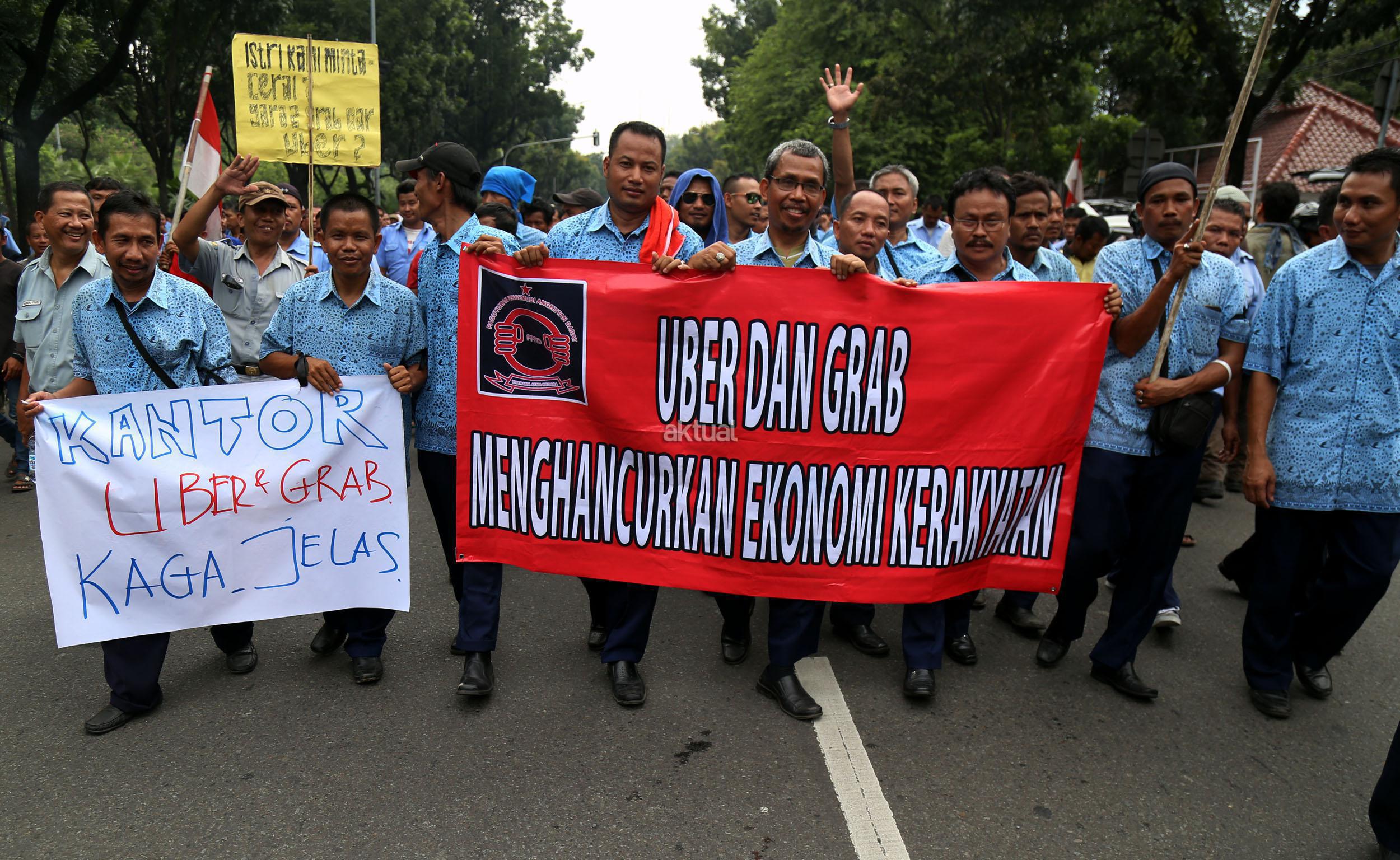 Dalam aksinya mendesak Gebenur DKI Jakarta Basuki Tjahaja Purnama (Ahok) untuk menolak keberdaan aplikasi dan menuntut pemerintah menutup aplikasi transportasi online, yakni Uber dan Grab Taksi.