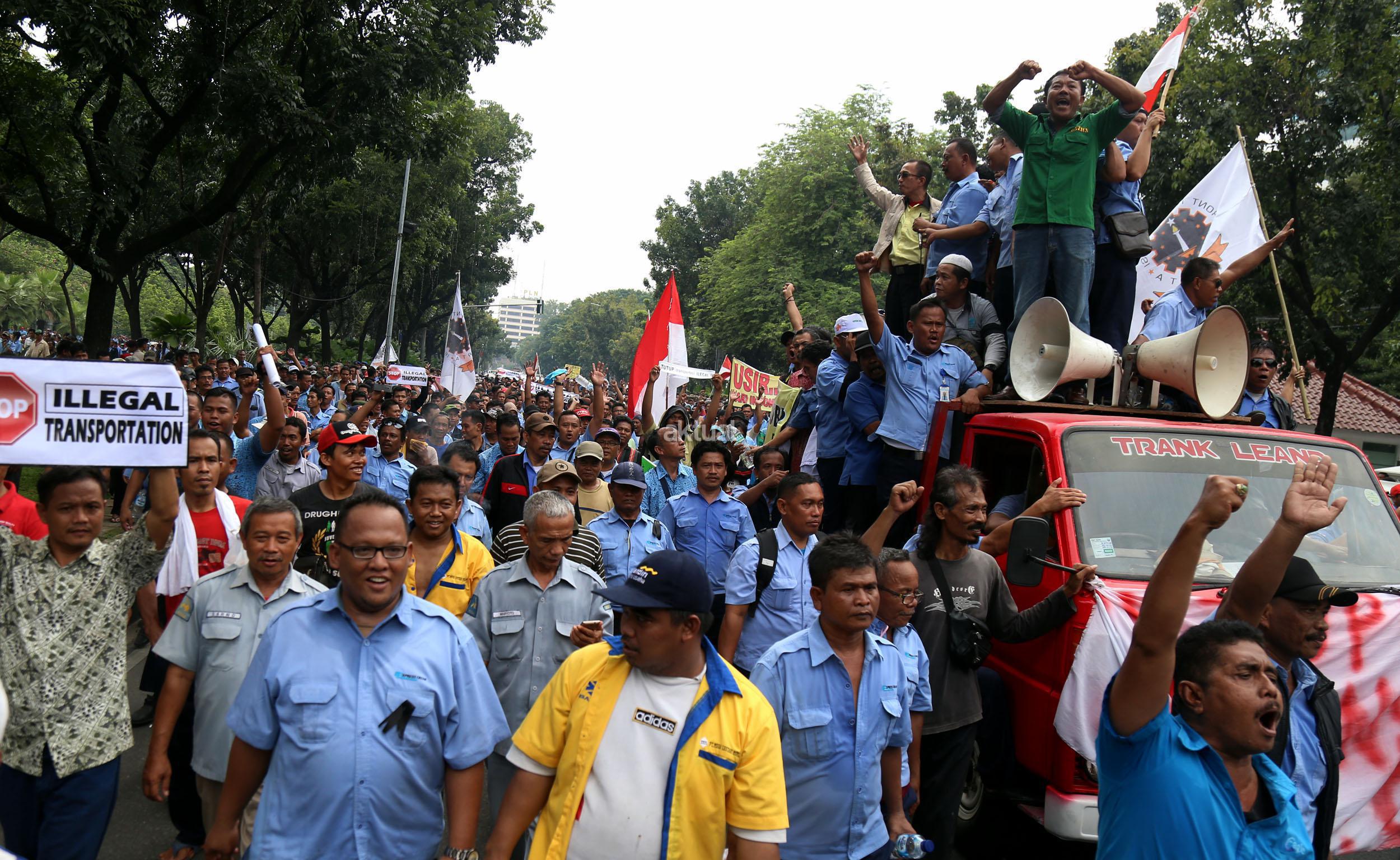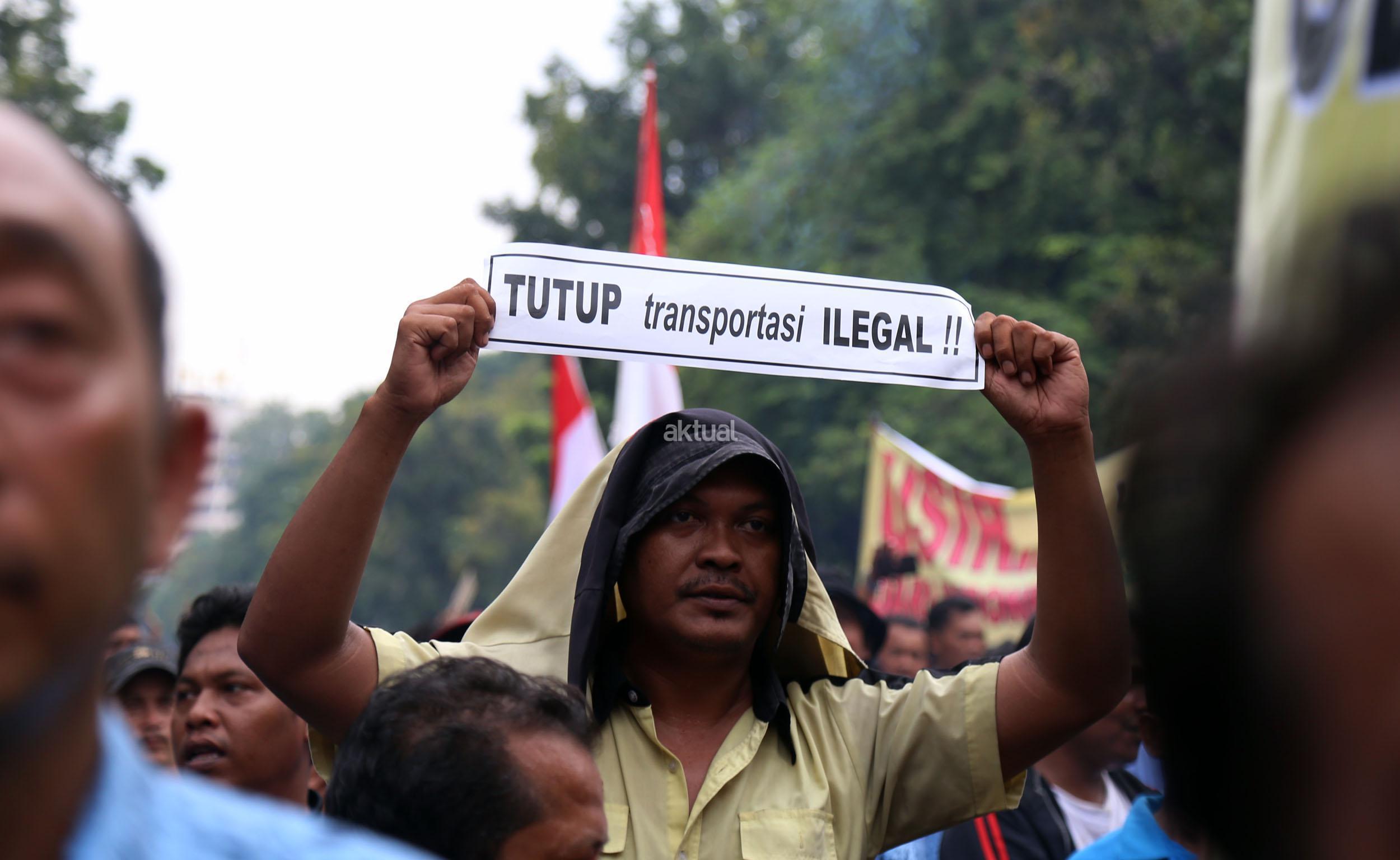 Tuntutan para ribuan angkutan umum ada dua, yaitu tentang peraturan pemerintah yang berkaitan dengan aplikasi dan soal Perda Nomor 5 Tahun 2014 tentang Usia Kendaraan di Jakarta. Taksi aplikasi juga tidak memiliki izin yang jelas sehingga dinilai bisa mengacaukan tata transportasi yang sudah berjalan selama ini.