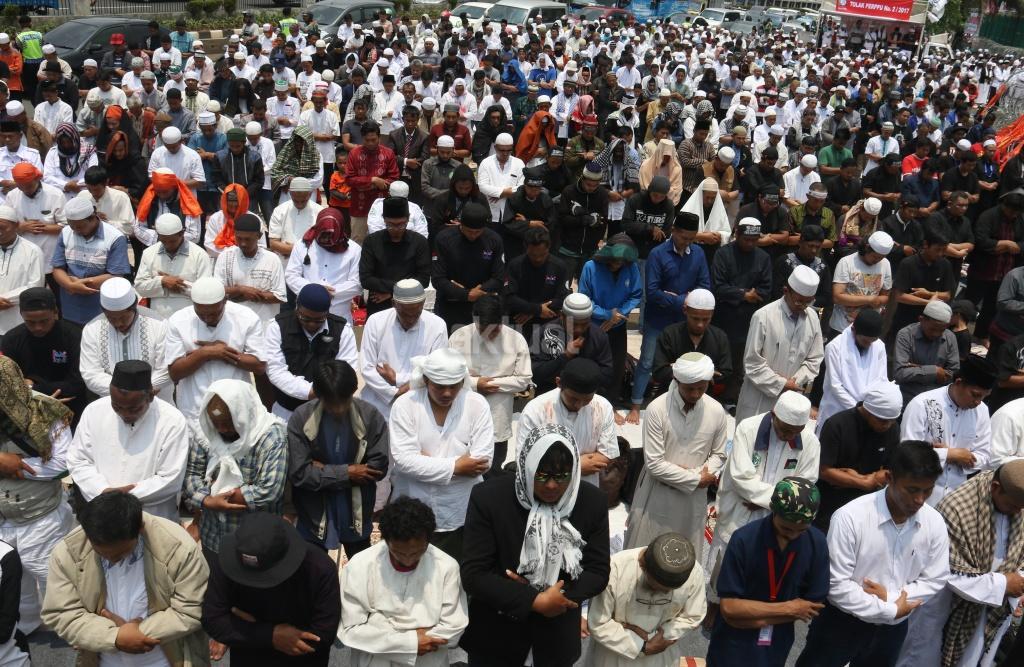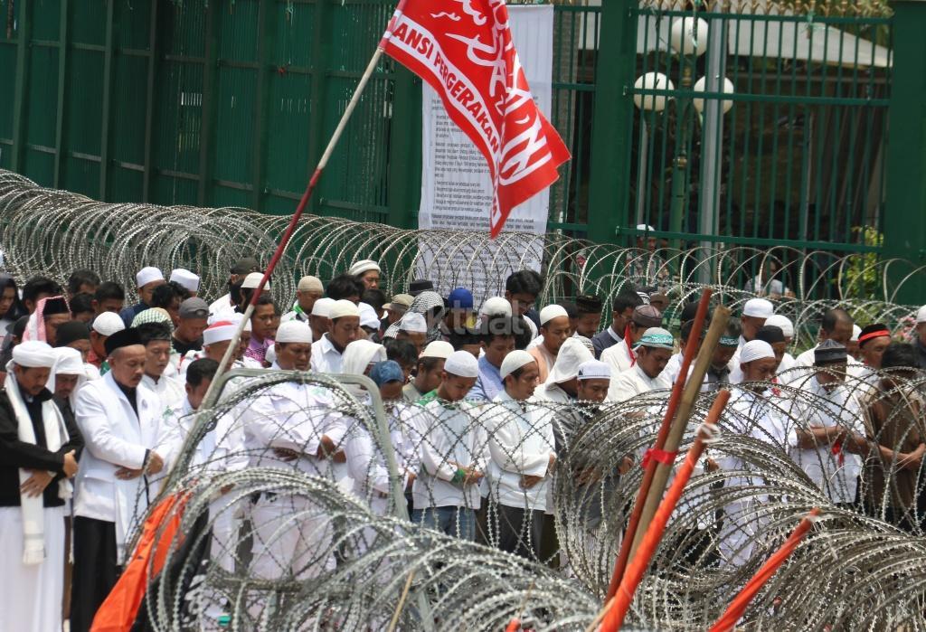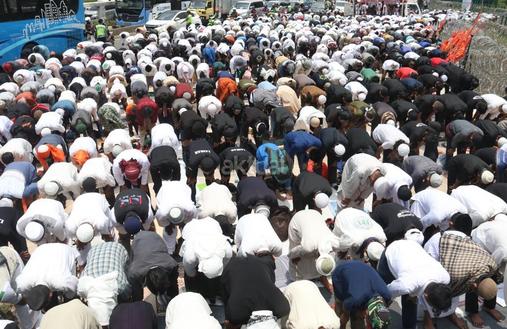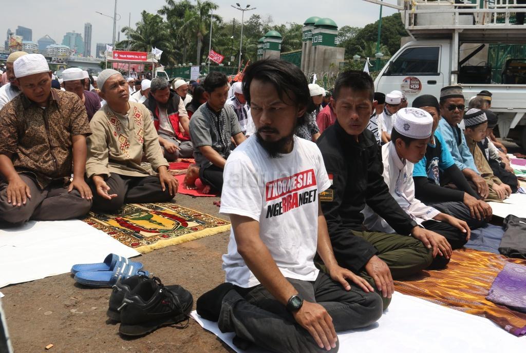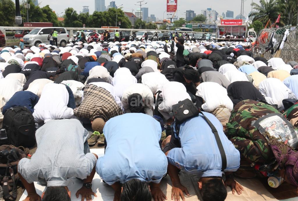 Ratusan Umat Islam Sholat Jumat Bersama di Depan DPR/MPR