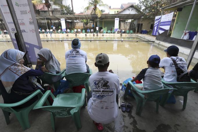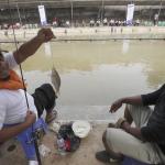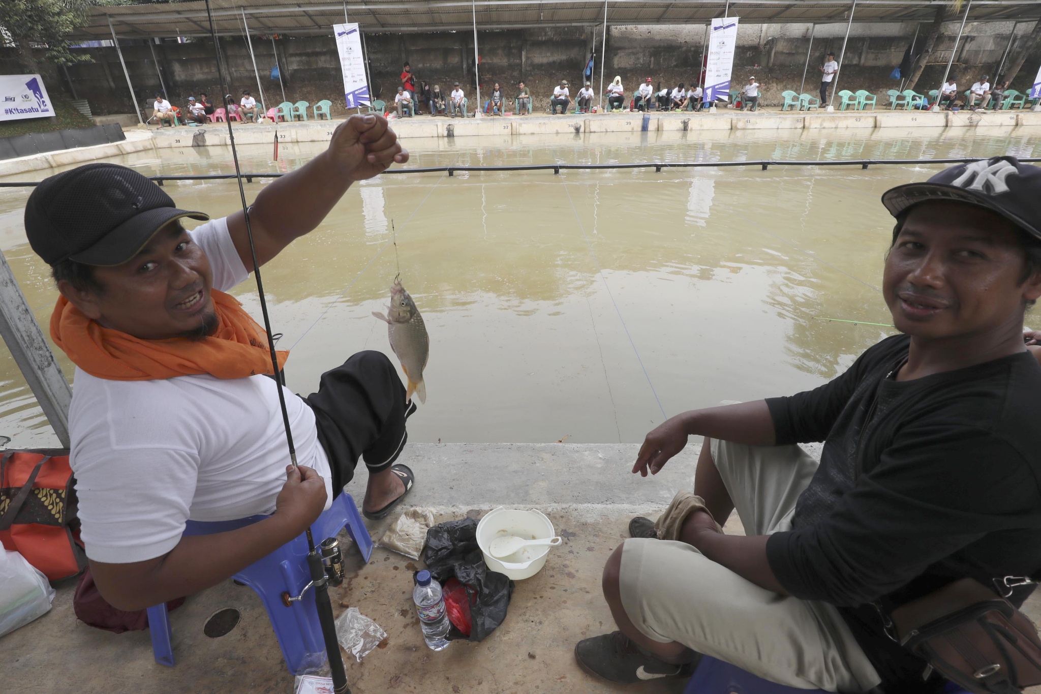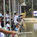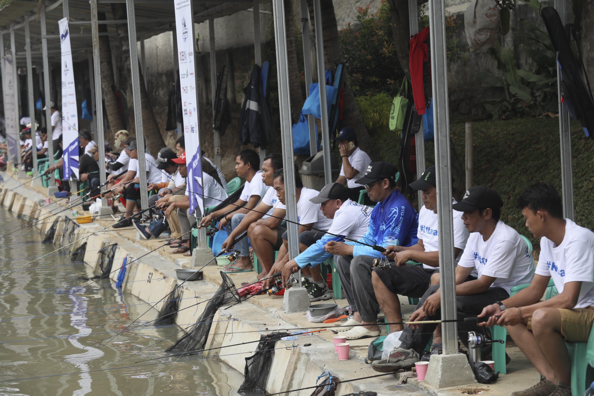 Peserta mancing dalam acara HUT ke 1 Jurnalis Mancing Indonesia (JMI) di pemencingan Deluna, Depok, Jawa Barat pada Minggu (26/8). Sebanyak 120 orang dari 60 media dan 20 orang dari korporasi tersebut meramaikan perlombaan mancing yang merebutkan total sebesar Rp 10 juta. AKTUAL/Dok JMI