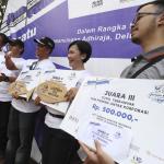 Pembina Jurnalis Mancing Indonesia (JMI) Pratama D Persadha (kedua kiri) didampingi Ketua JMI Folber D Silagian (kiri) memberikan juara 1 Kapolres Depok AKBP Didik Sugiarto (ketiga kiri), juara 2 Kapolsek Beji Kompol Yenny Anggreni Sihombing (kedua kanan), Perwakilan dari BNI Christoper (kanan) dalam lomba acara HUT ke 1 Jurnalis Mancing Indonesia (JMI) di pemencingan Deluna, Depok, Jawa Barat pada Minggu (26/8). Sebanyak 120 orang dari 60 media dan 20 orang dari korporasi tersebut meramaikan perlombaan mancing yang merebutkan total sebesar Rp 10 juta. AKTUAL/Dok JMI