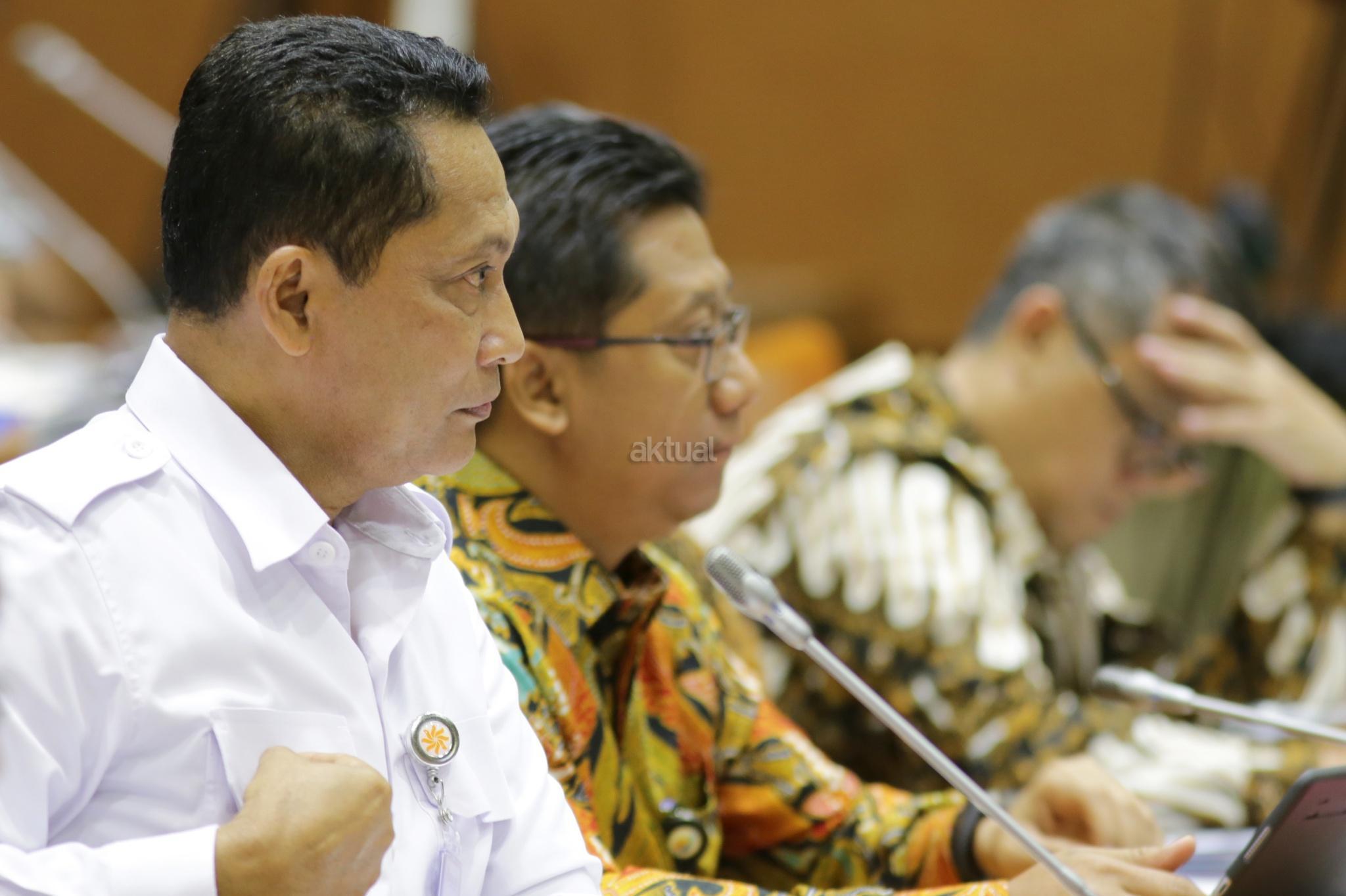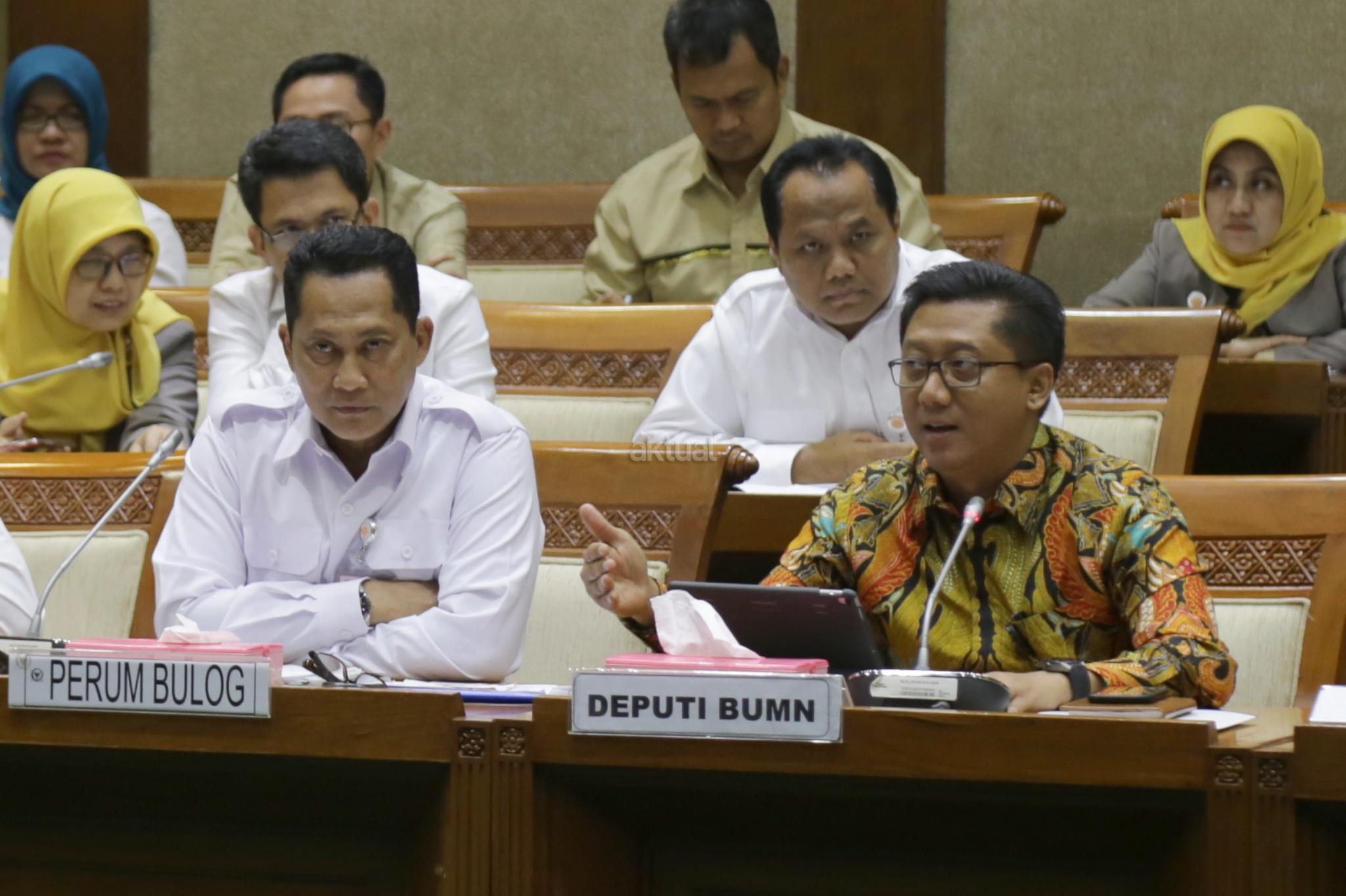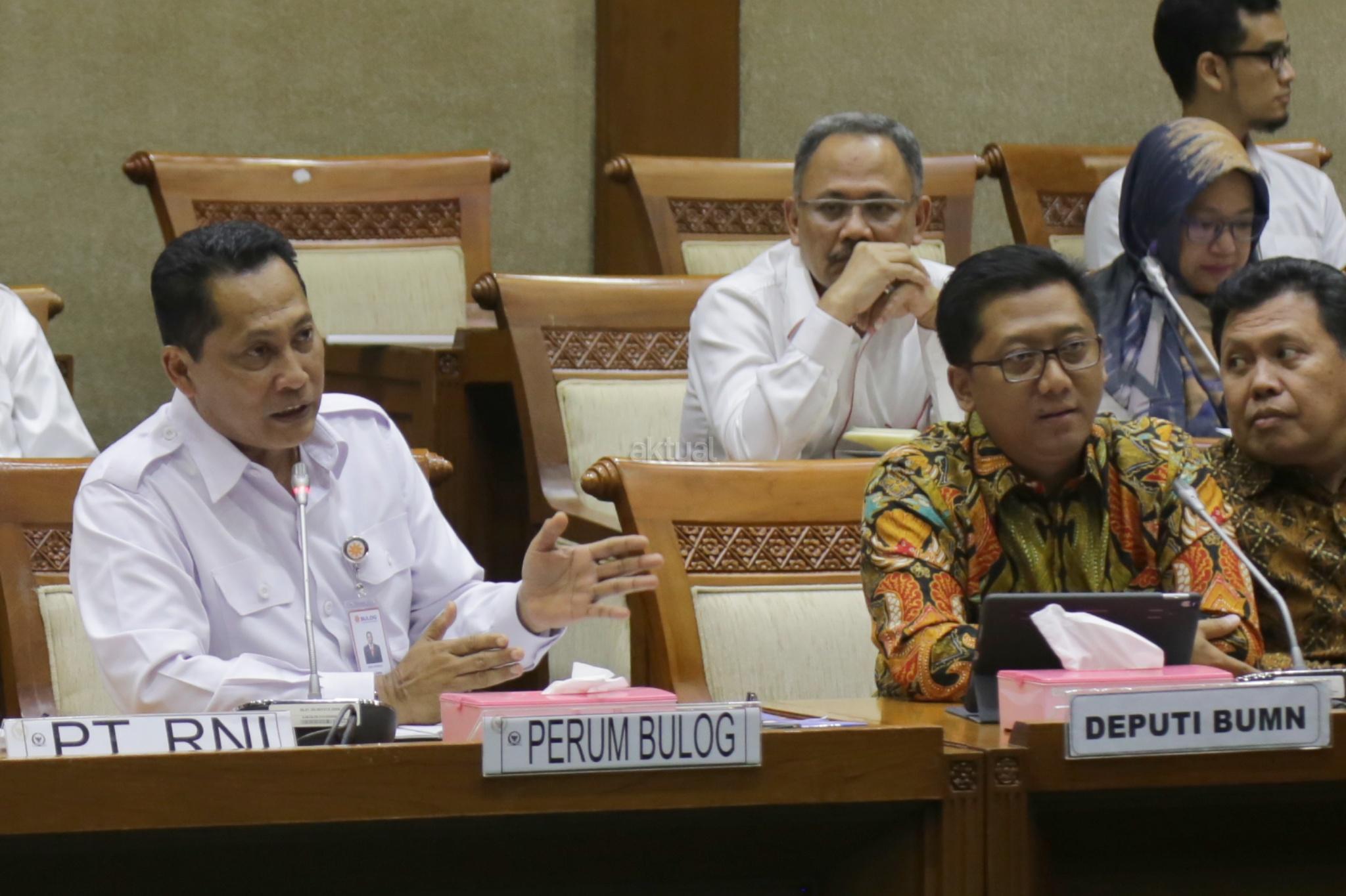 Dirut Bulog Budi Waseso mengikuti rapat dengar pendapat (RDP) dengan Komisi VI DPR di Kompleks Parlemen, Senayan, Jakarta, Senin (21/5). Rapat perdana antara Budi Waseso yang baru diangkat sebagai Dirut Bulog dengan DPR itu membahas ketersediaan stok serta stabilitas harga pangan di bulan Ramadhan sekaligus menjelang Idul Fitri. AKTUAL/Tino Oktaviano
