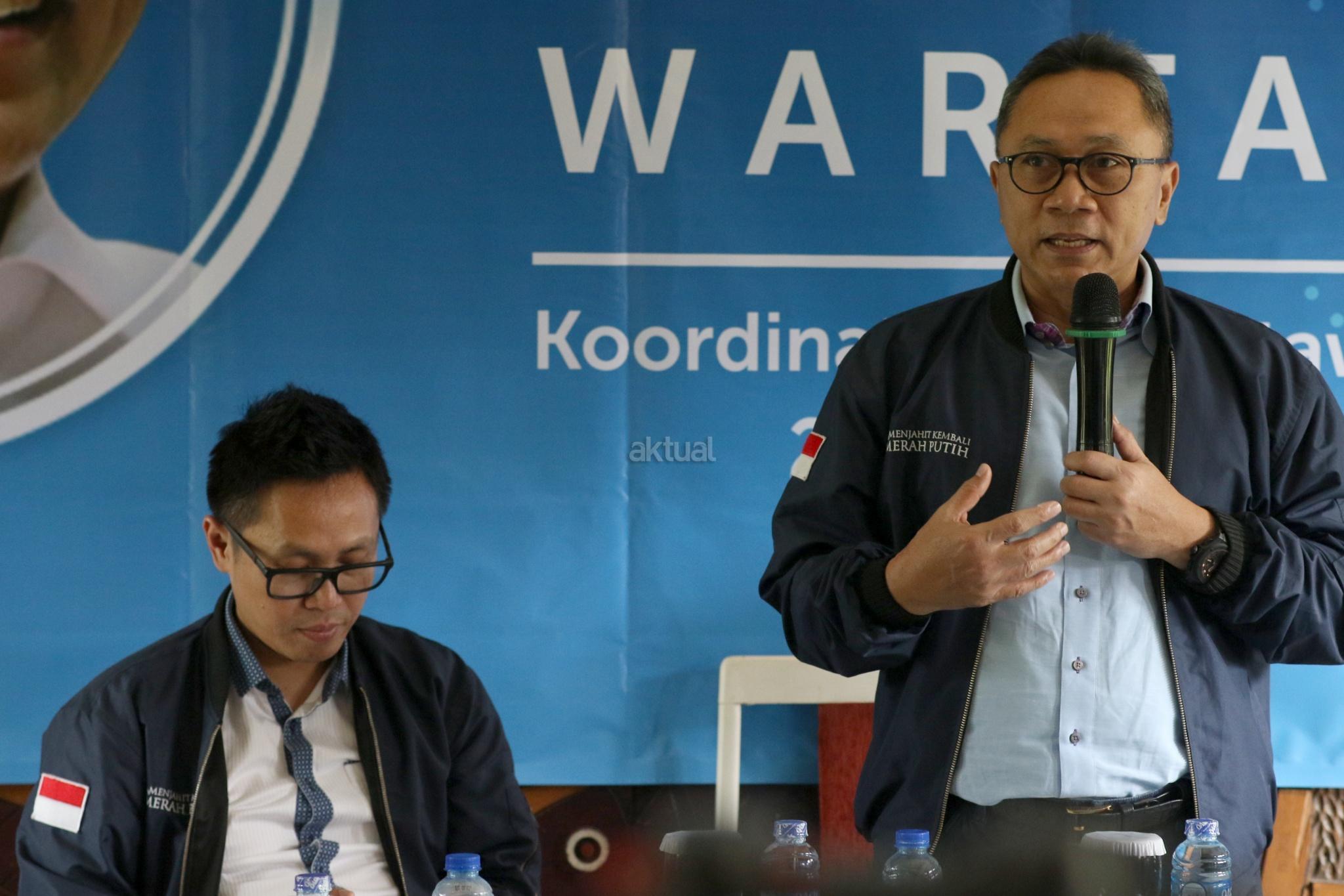 Ketua MPR Zulkifli Hasan (kanan) menyampaikan pendapatnya didampingi Anggota MPR Fraksi PAN Eko Hendro Purnomo dalam diskusi Refleksi Akhir Tahun MPR di Restoran Pulau Dua, Senayan, Jakarta, Jum’at (29/12). Pada kesempatan itu selain menyampaikan situasi Ekonomi, Sosial dan Politik sepanjang 2017, Zulhasan menyampaikan perjalanan panjang MPR dalam menyampaikan Sosialisasi Empat Pilar MPR keseluruh pelosok Indonesia hingga mendorong te bentuknya Tim Pengarah Unit Kerja Presiden – Pembinaan Ideologi Pancasila (UKP-PIP), yang ke depannya akan bersama-sama MPR, menyampaikan petingnya nilai-nilai Pancasila sebagai antisipasi serangan “perang” Asimetris. AKTUAL/Tino Oktaviano
