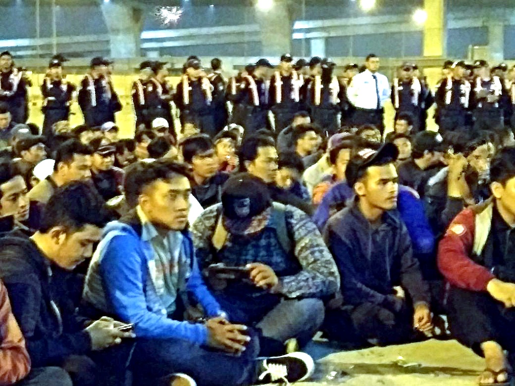 Serikat Pekerja Jakarta International Container Terminal (JICT) bersama ratusan karyawan outsourching yang terkena Pemutusan Hak Kerja (PHK) melakukan refleksi akhir tahun di kawasan JICT, Pelabuhan Tanjung Priok, Jakarta Utara, Minggu (31/12) malam. Selain mengecam keputusan kontroversial Direksi JICT, para pekerja outsourcing akan berjuang sampai mereka diterima kembali. Mereka yakin kemampuan khusus yang sudah teruji bertahun-tahun tidak mudah dipelajari dalam waktu singkat. Pada akhirnya akan mengancam dwelling time dan kelancaran arus barang. AKTUAL/Tino Oktaviano