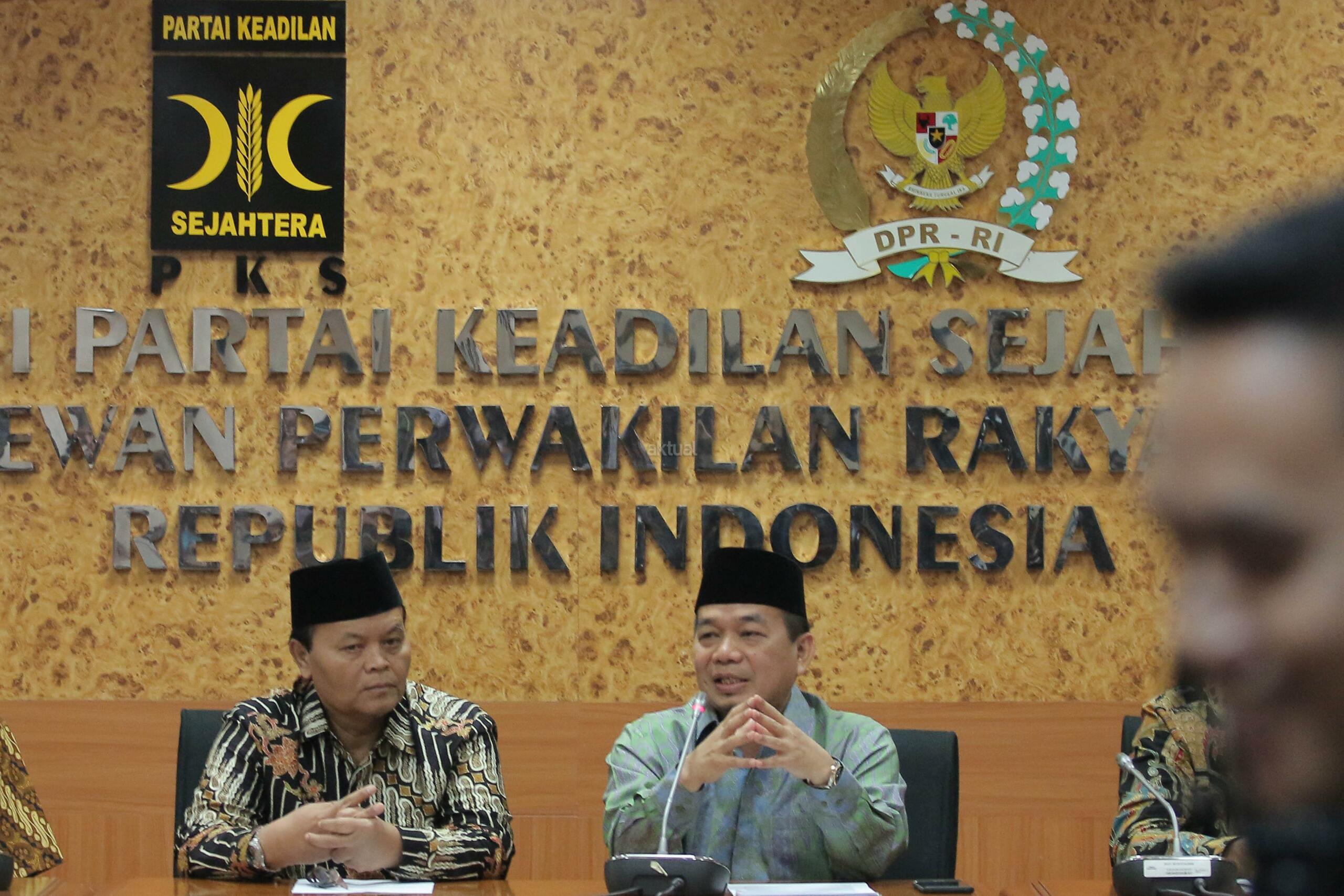 Ketua Fraksi PKS DPR RI, Jazuli Juwaini (kanan) dan Wakil Ketu MPR Hidayat Nur Wahid (kiri) menghadiri Tadabbur dan Renungan Proklamasi di ruang Fraksi PKS Komplek Parlemen Senayan, Jakarta, Selasa (14/6). Proklamasi Kemerdekaan RI 17 Agustus 1945 bertepatan dengan 9 Ramadhan 1364 H Fraksi PKS mengajak umat islam untuk mensyukuri dan melakukan refleksi atas peran dan Kontribusi Umat Islam dalam Menjaga dan mengisi Kemerdekaan Indonesia. AKTUAL/HO