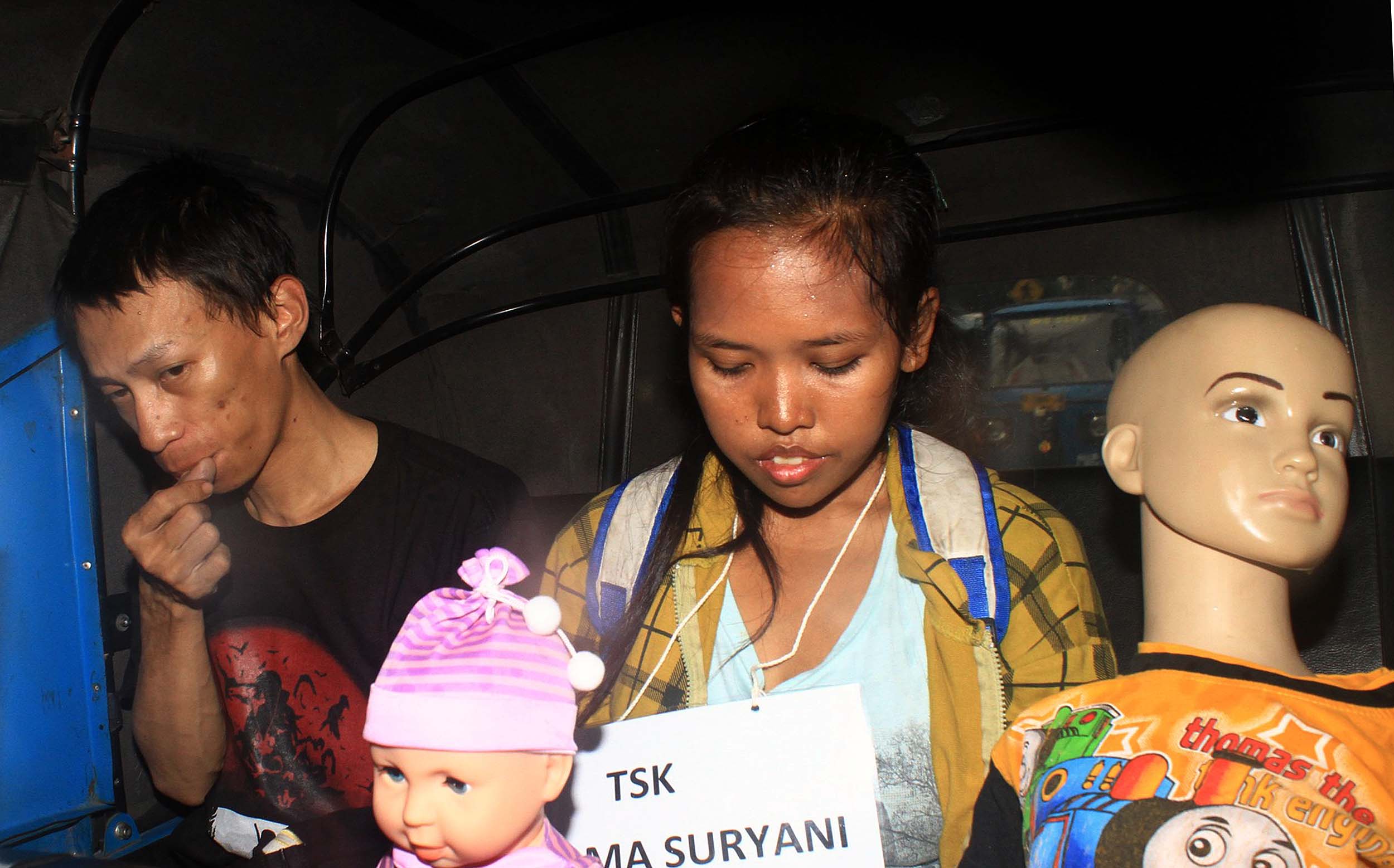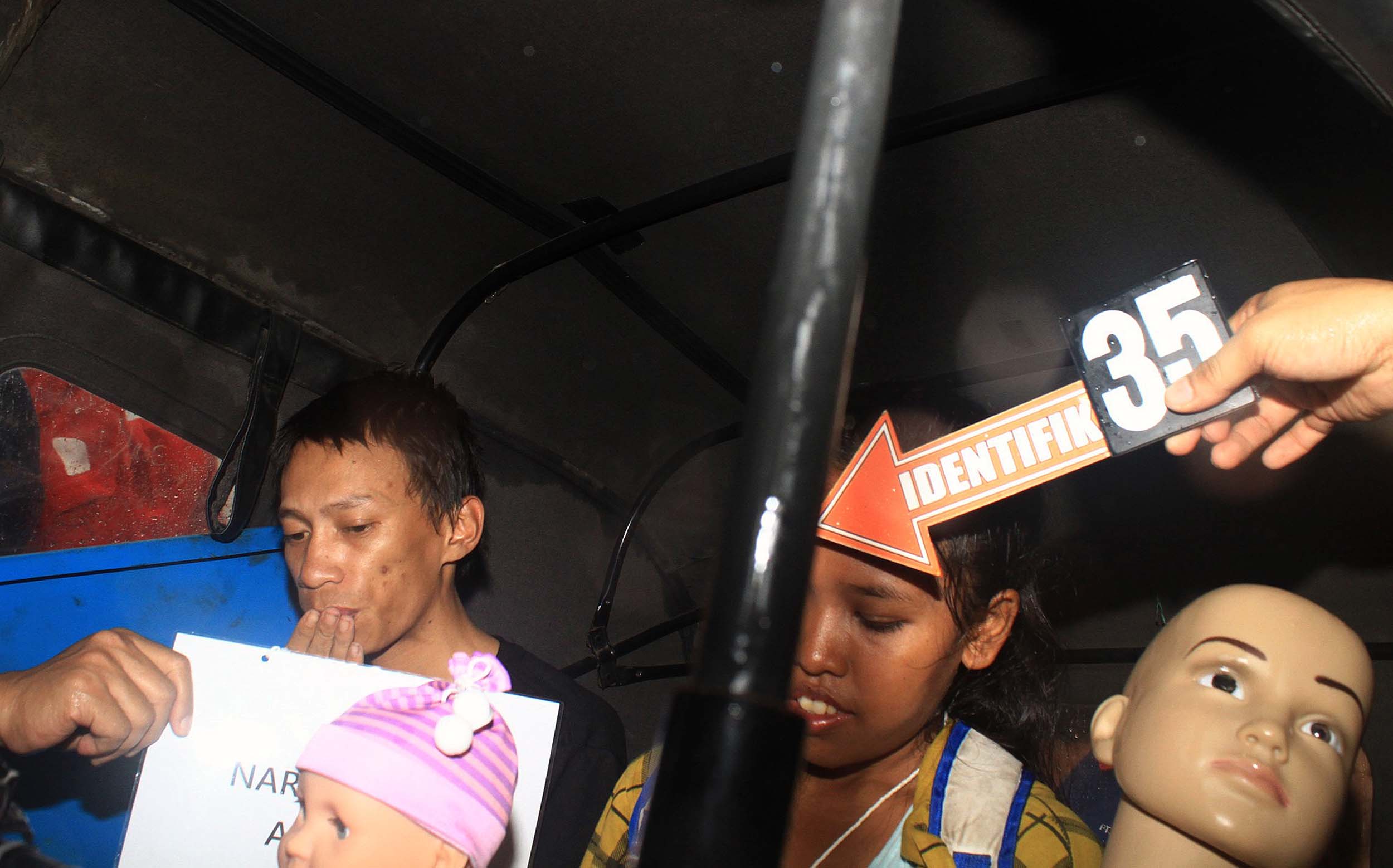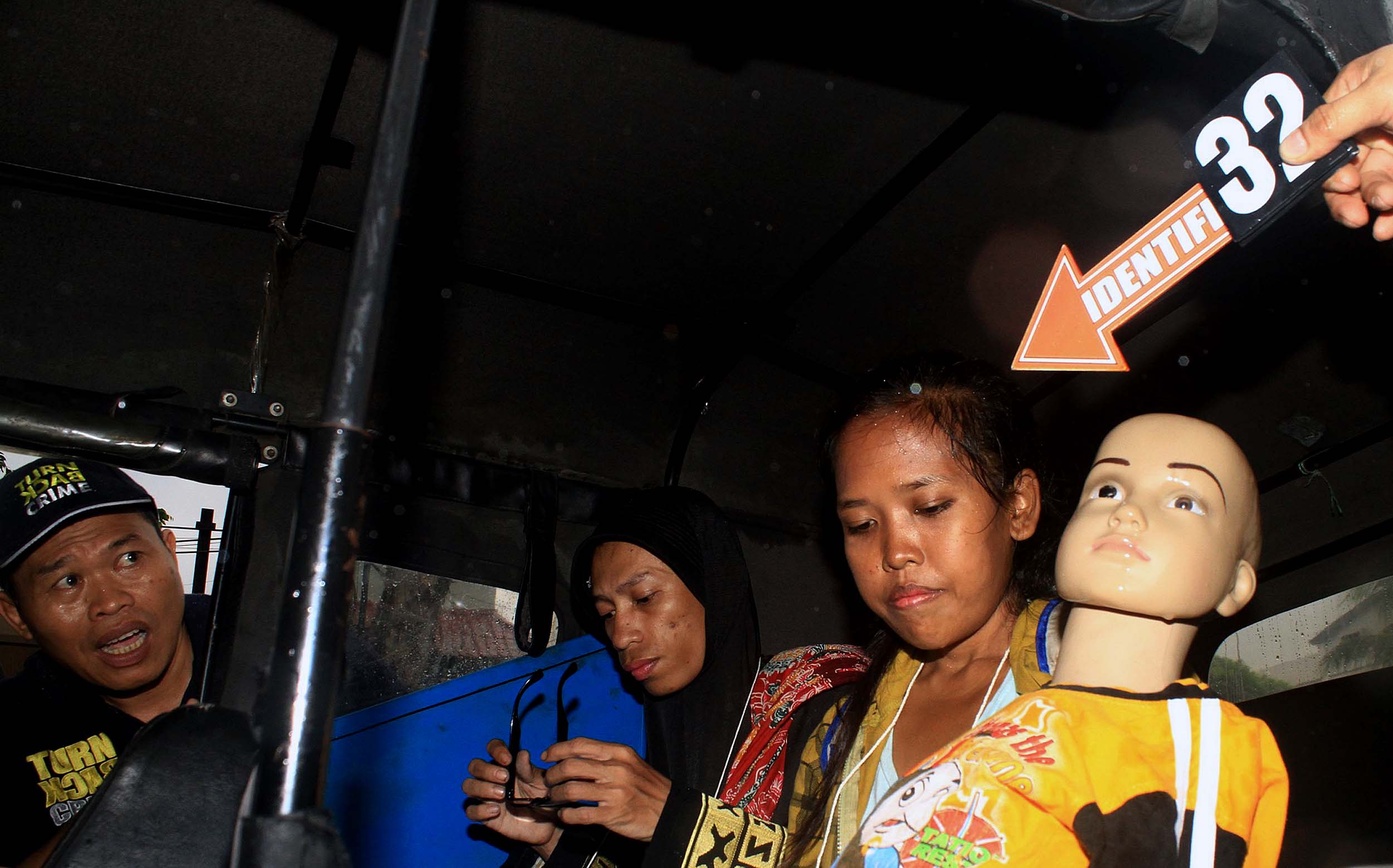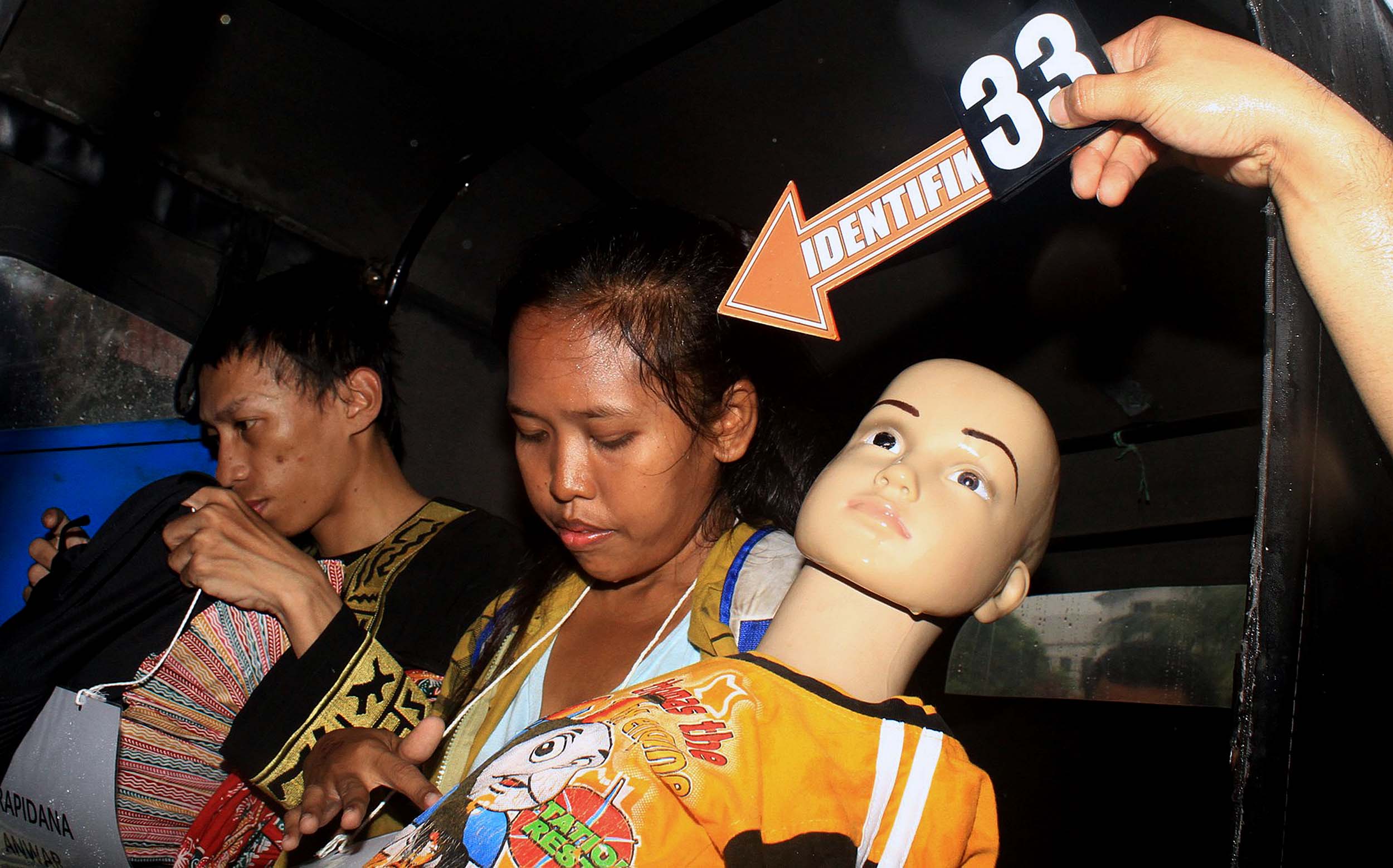 Anwar alias Rizal dan istrinya saat melakukan salah satu adegan rekontruksi kejadian di Rutan Salemba, Jakarta, Minggu (17/7/2016). Dalam rekonstruksi kejadian ini Anwar dan istrinya memperagakan sebanyak 36 adegan.