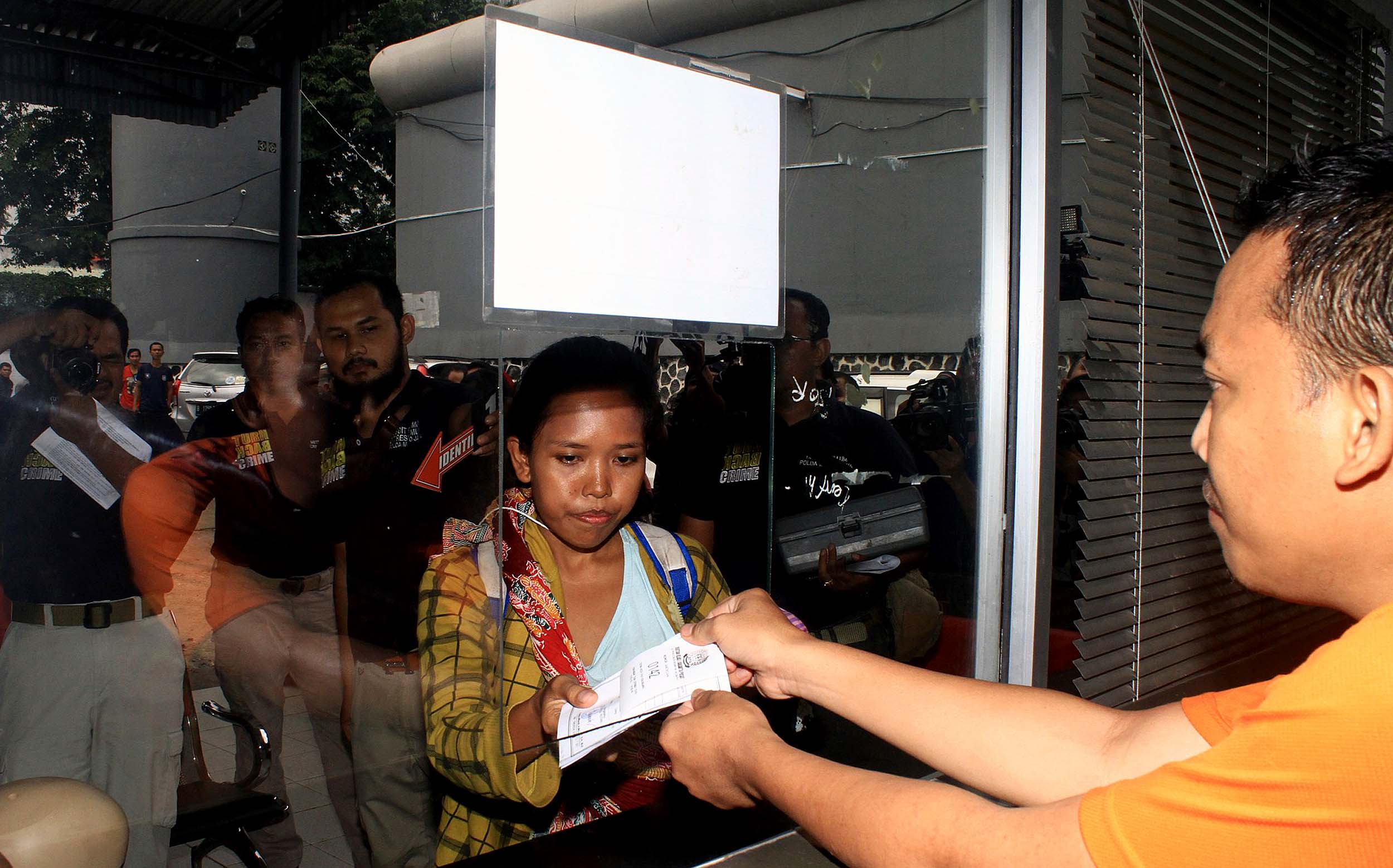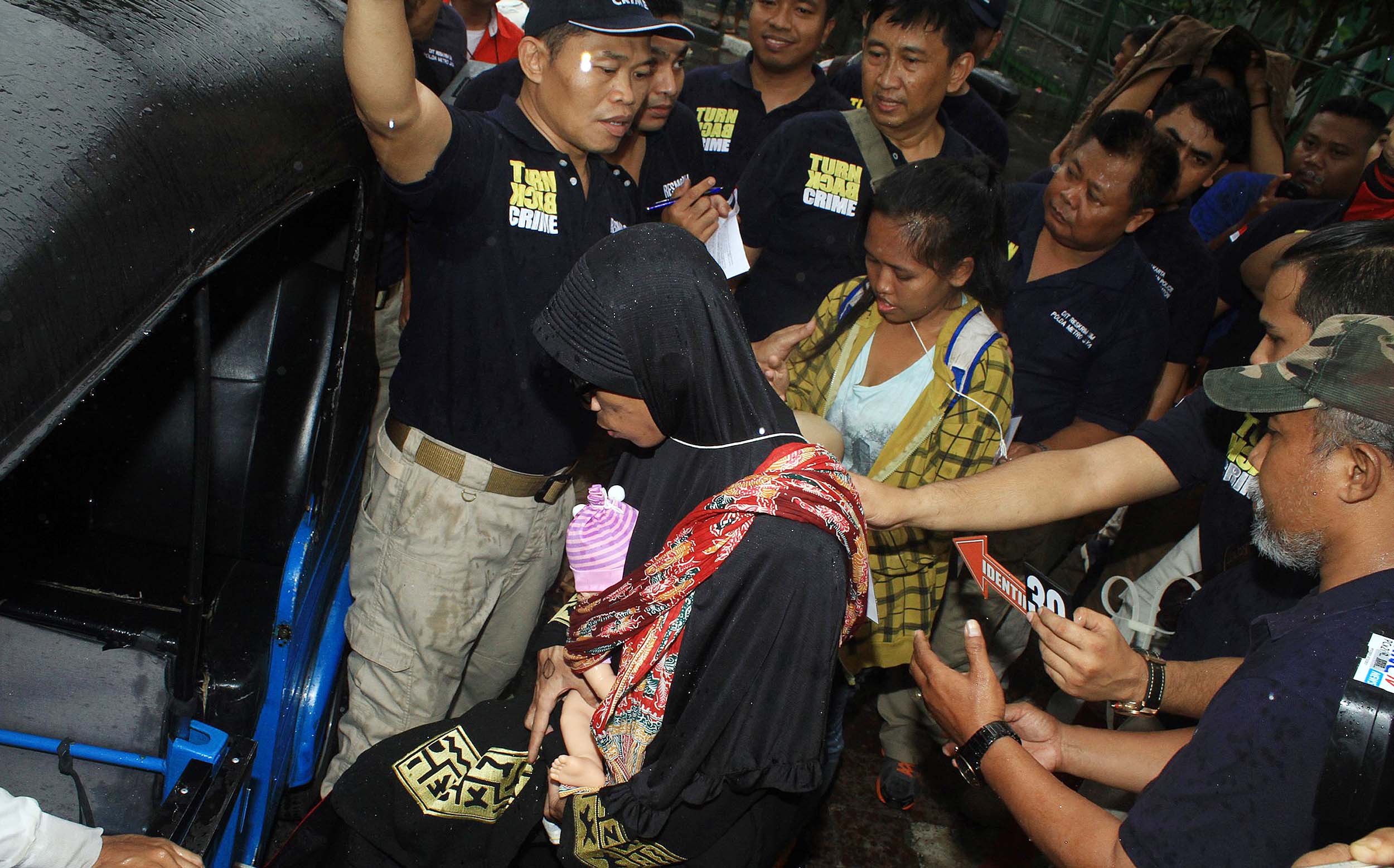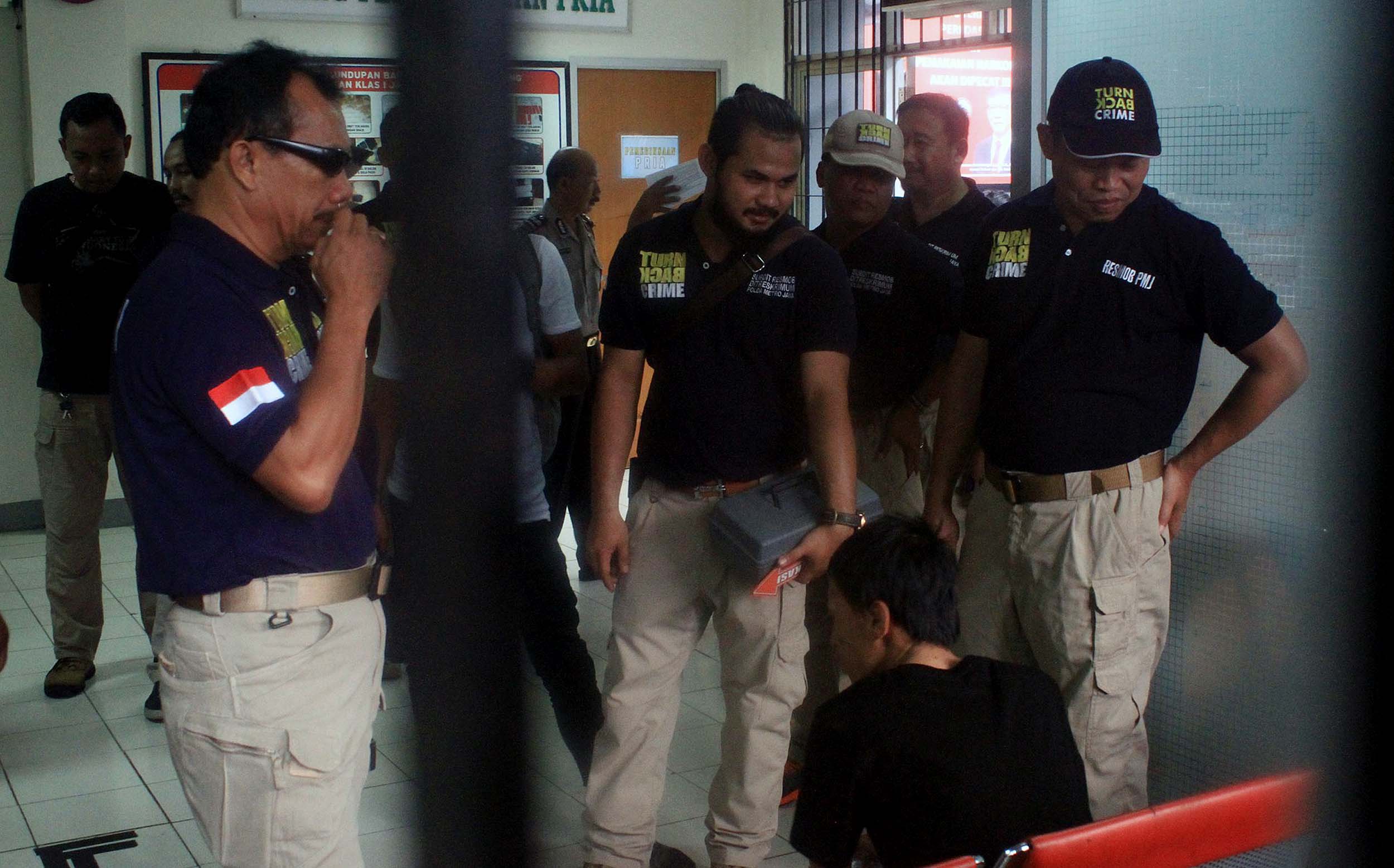 Istri Anwar mengikuti rekontruksi kaburnya Anwar alias Rizal (25) di Rutan Salemba, Jakarta, Minggu (17/7/2016). Proses rekonstruksi ini mendapat pengawalan ketat dari sejumlah anggota Subdit Resmob Ditreskrimum Polda Metro Jaya.