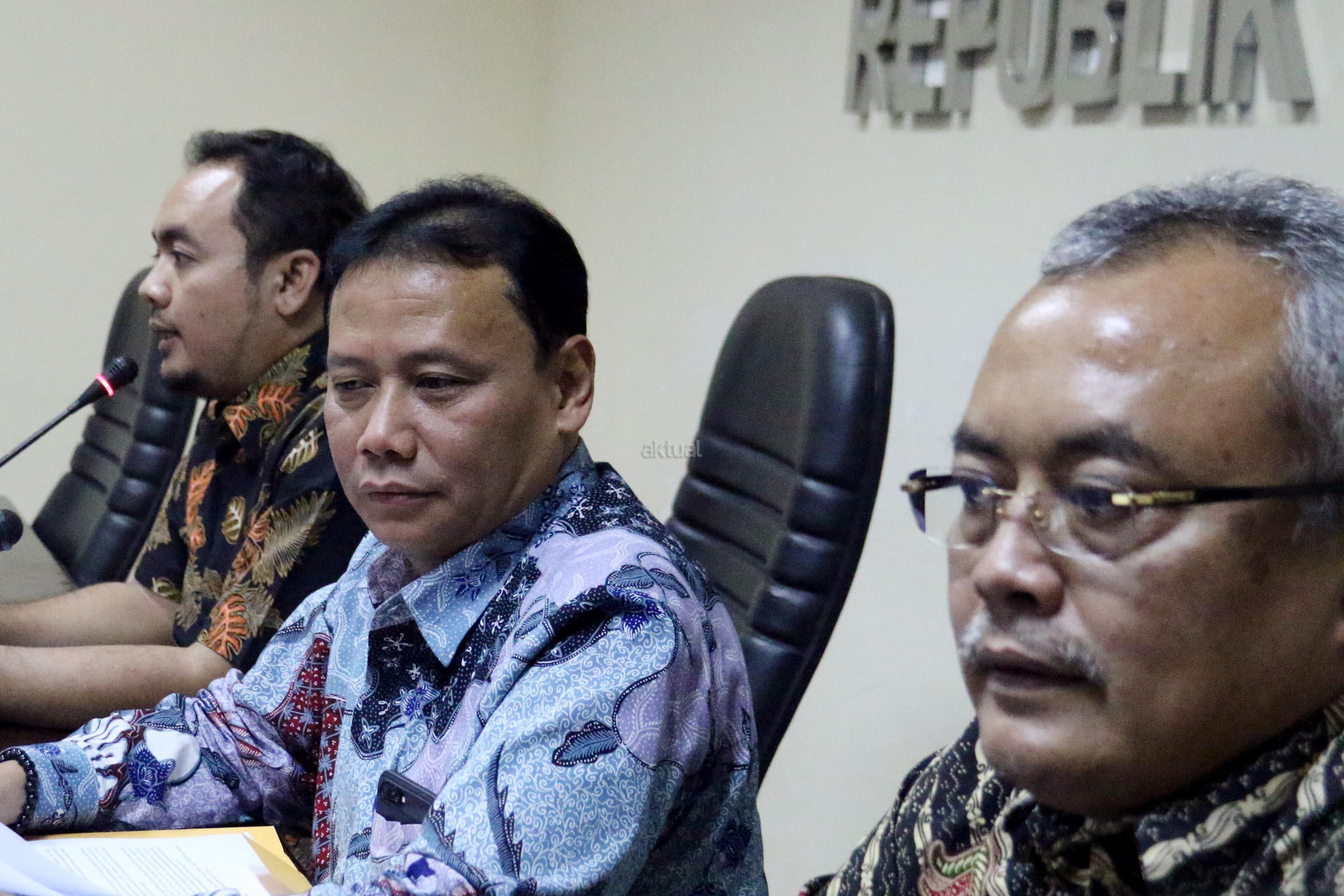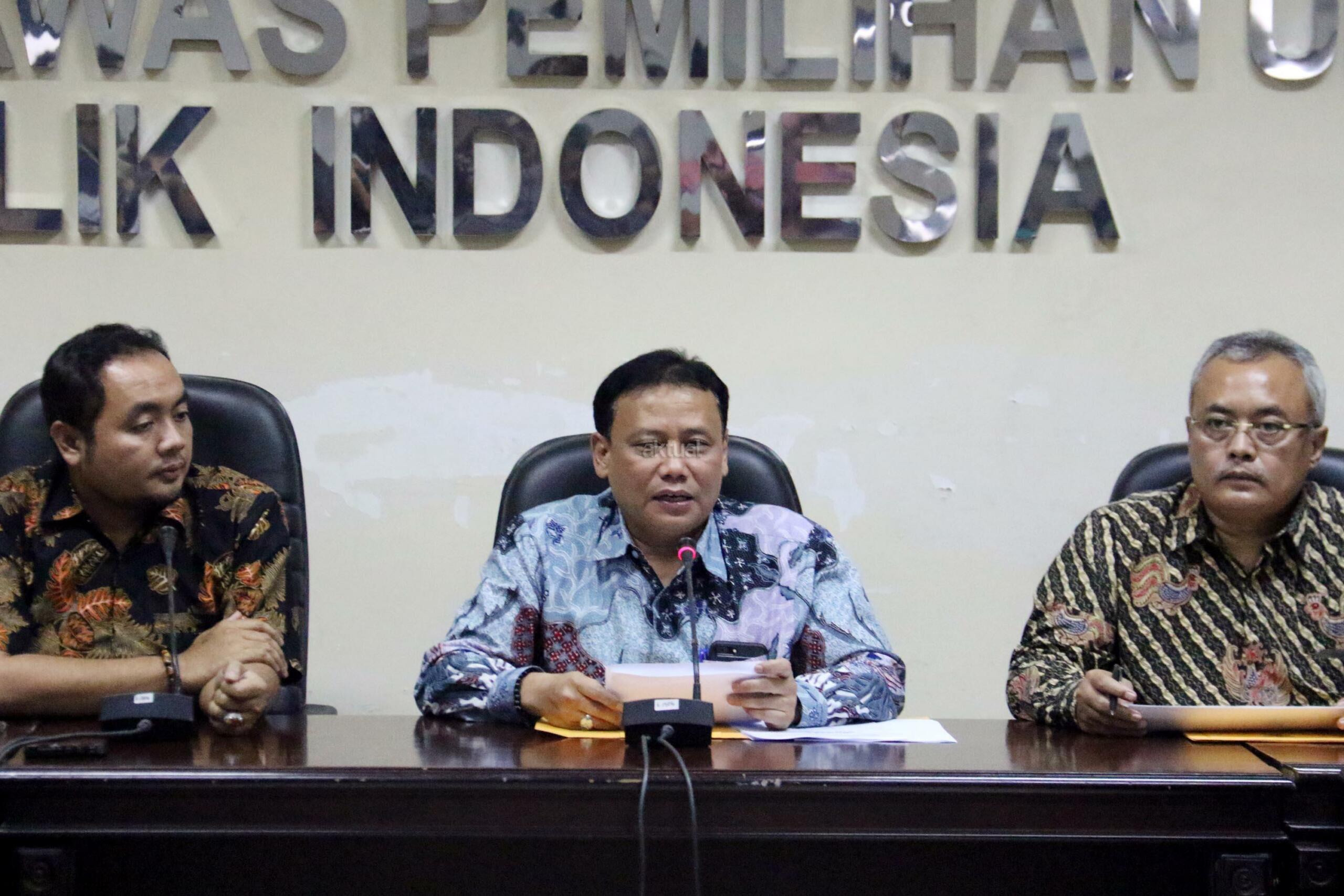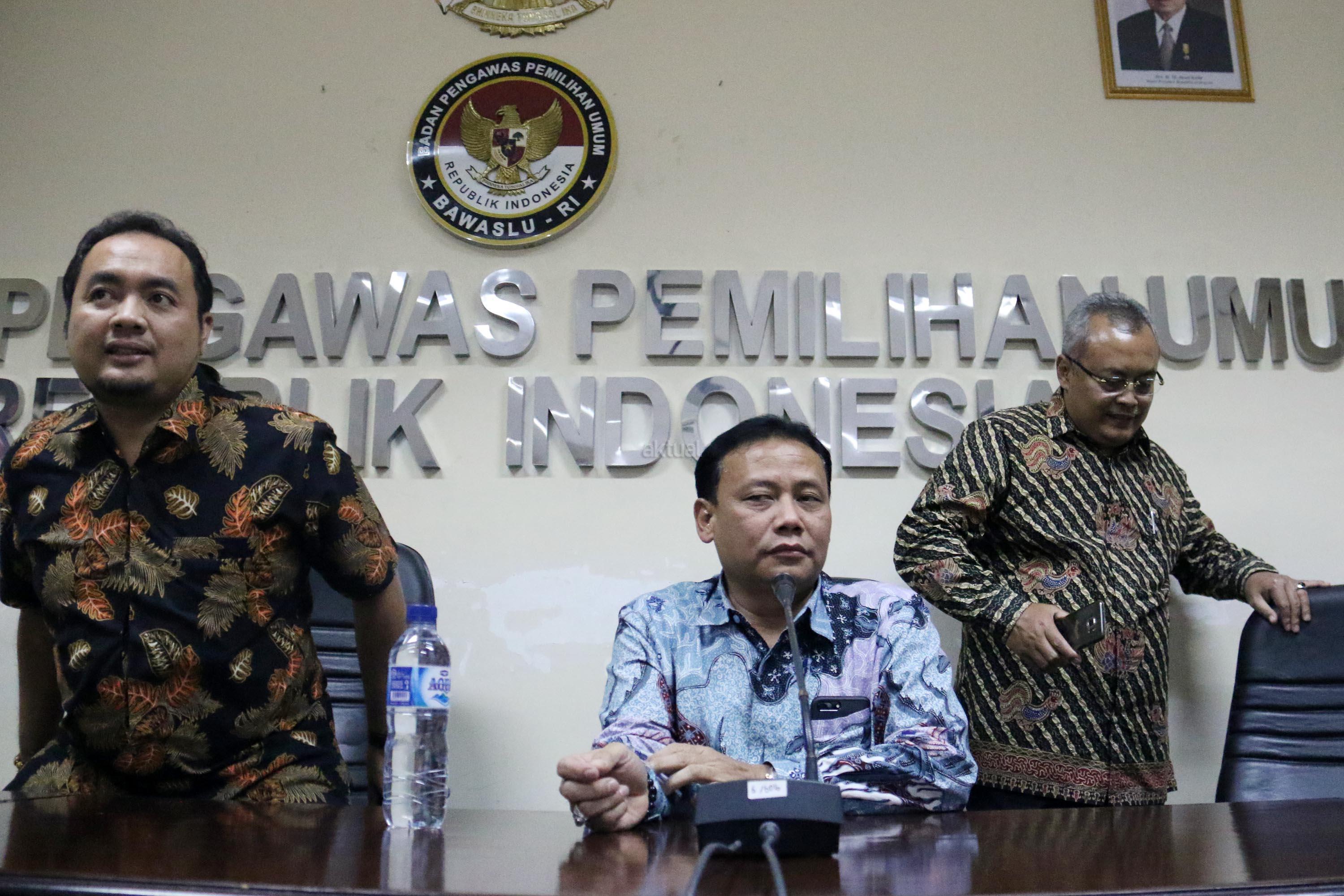Anggota Bawaslu RI Mochammad Afifuddin (kiri), Ketua Bawaslu RI Abhan (tengah), Sekjen Bawaslu Gunawan Suswantoro (kanan) saat jumpa persnya terkait 1.609 orang rekruitmen Badan Pengawas Pemilu (Bawaslu) tingkat provinsi di 25 provinsi, di Jakarta, Selasa (8/8/2017). Badan Pengawas Pemilu (Bawaslu) RI akan menggandeng berbagai kampus dan lembaga lainnya dalam tes tertulis serentak rekruitmen calon anggota Bawaslu Provinsi di 25 provinsi di seluruh Indonesia. AKTUAL/Munzir