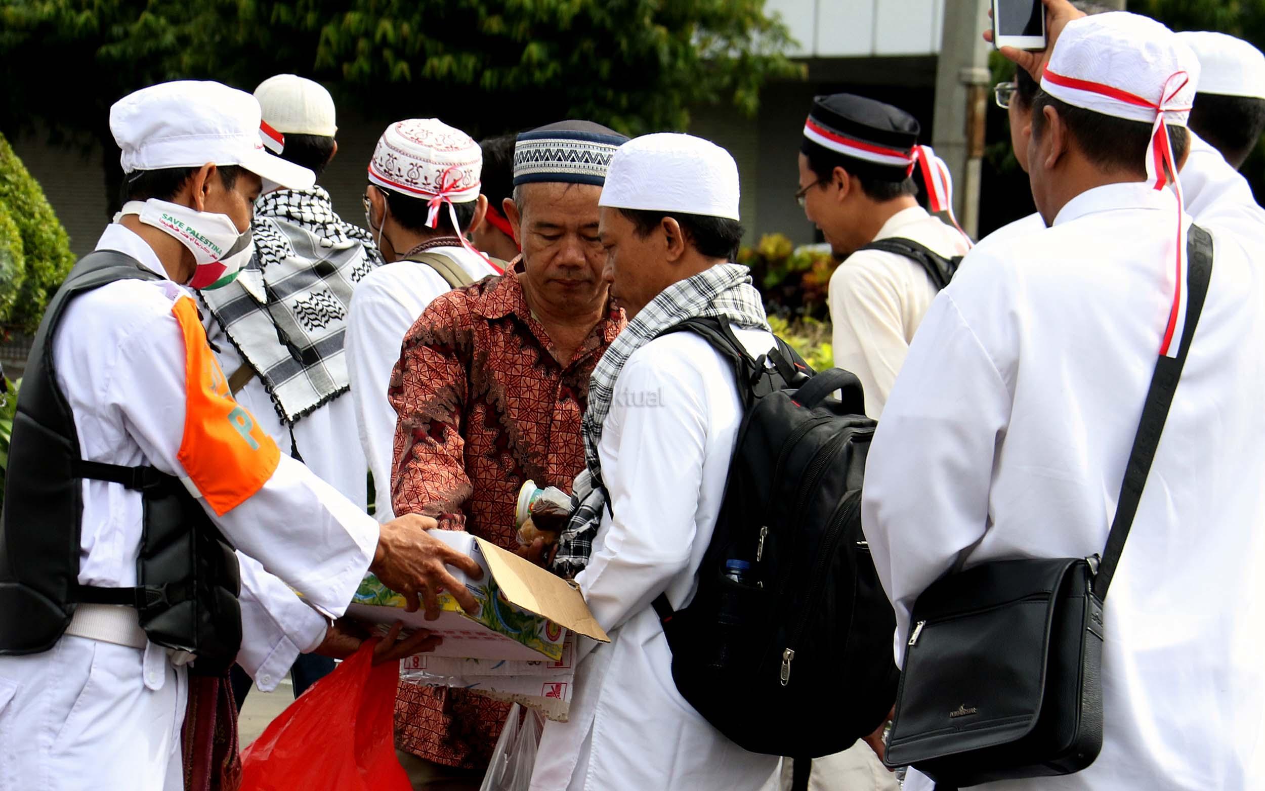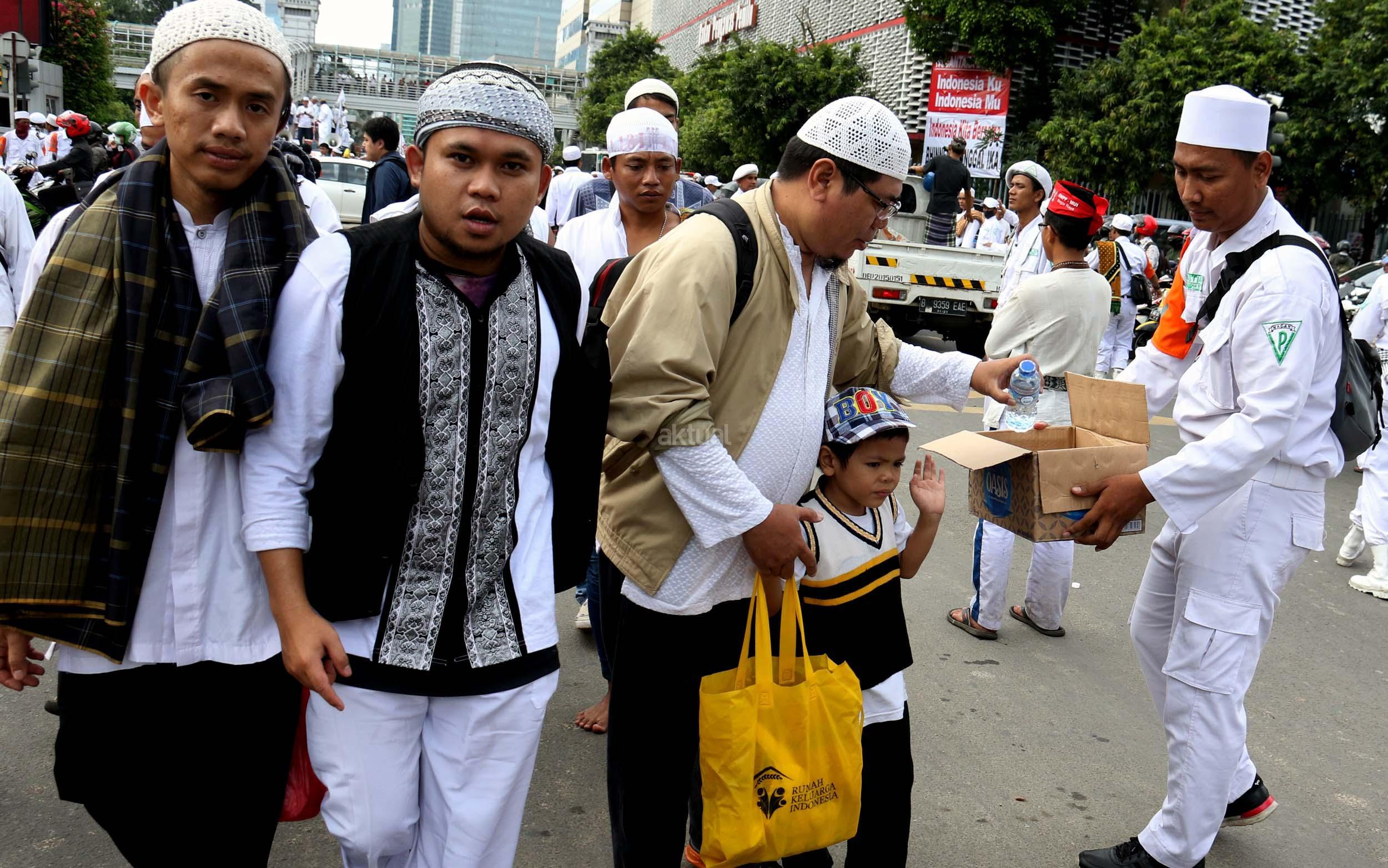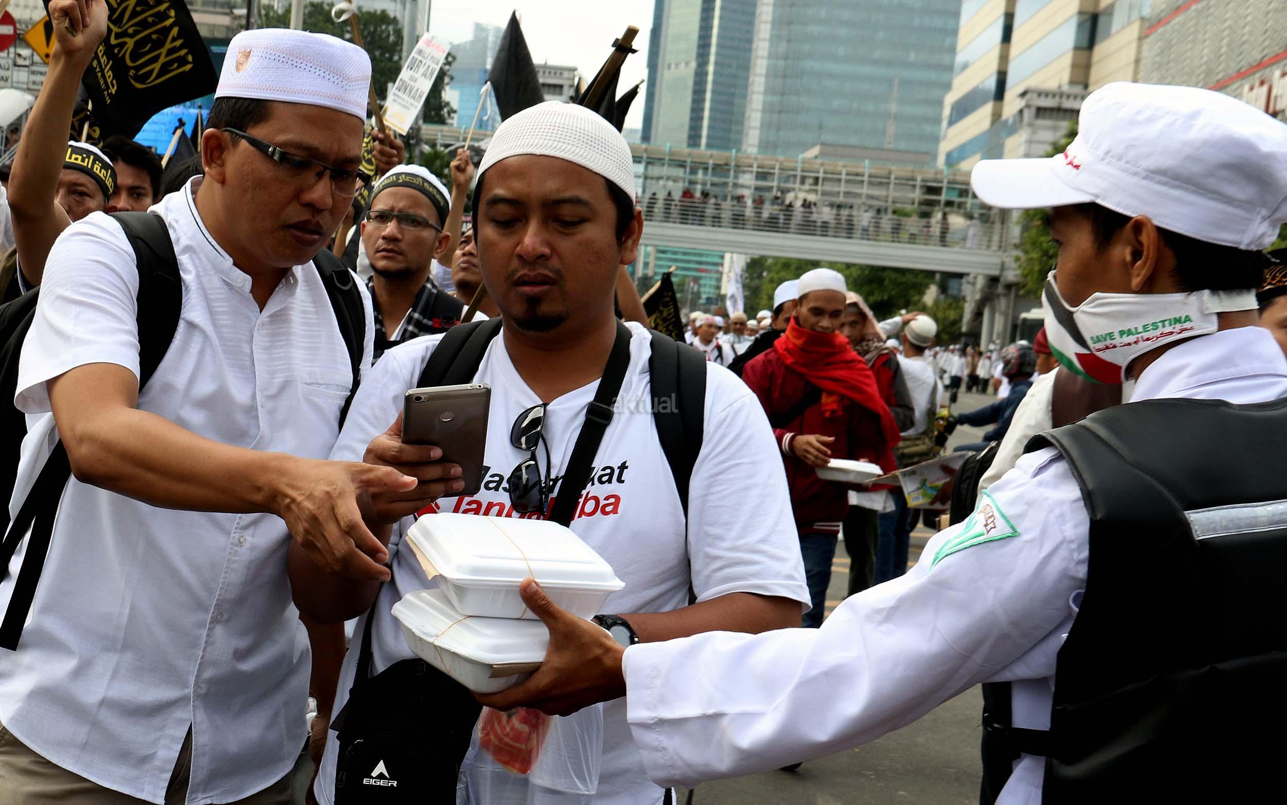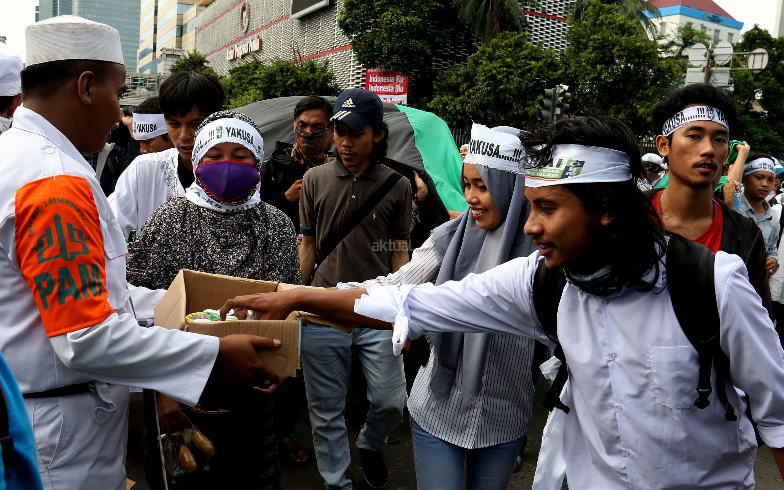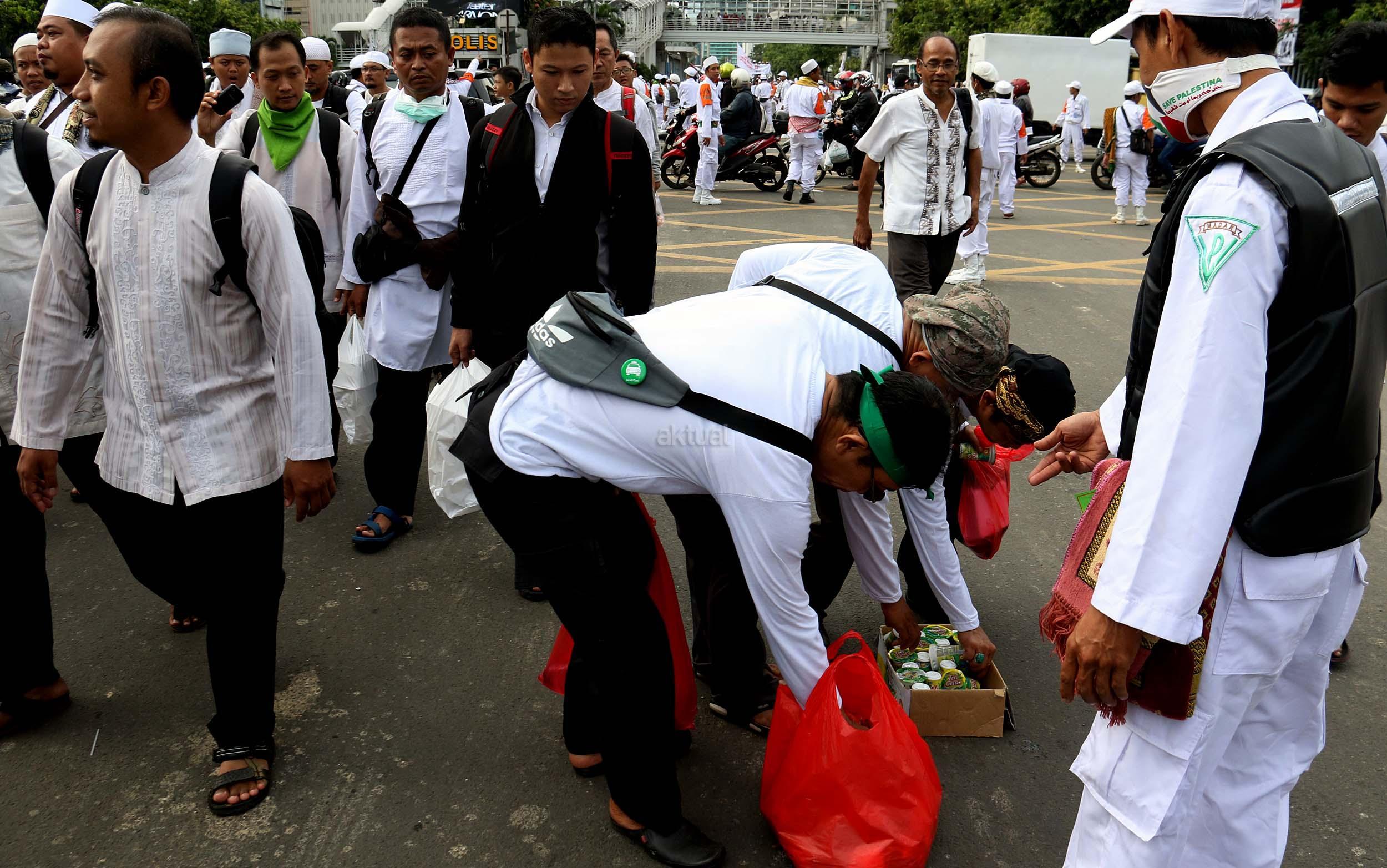 Relawan Bagikan Makanan dan Minuman Kepada Peserta Aksi 212