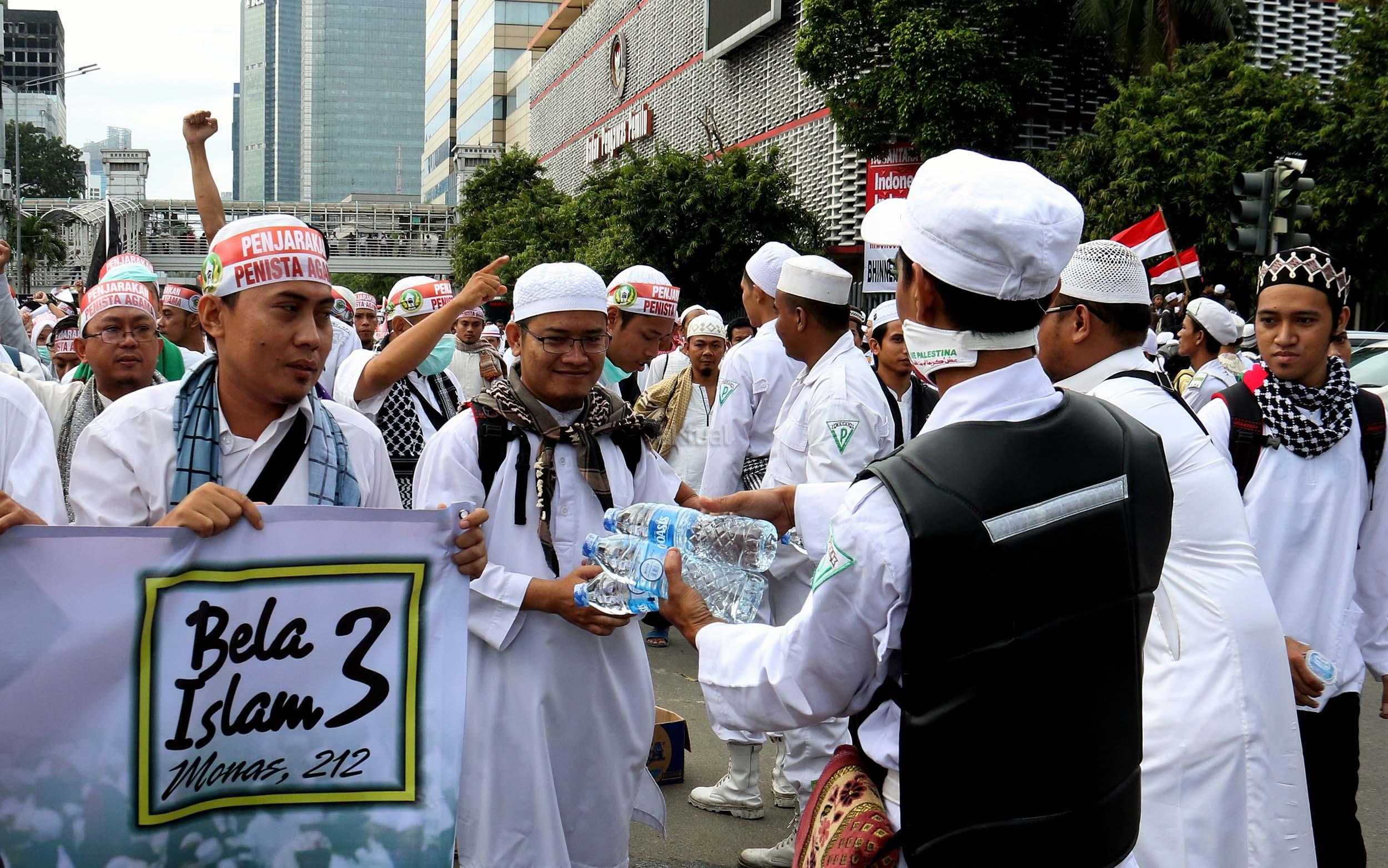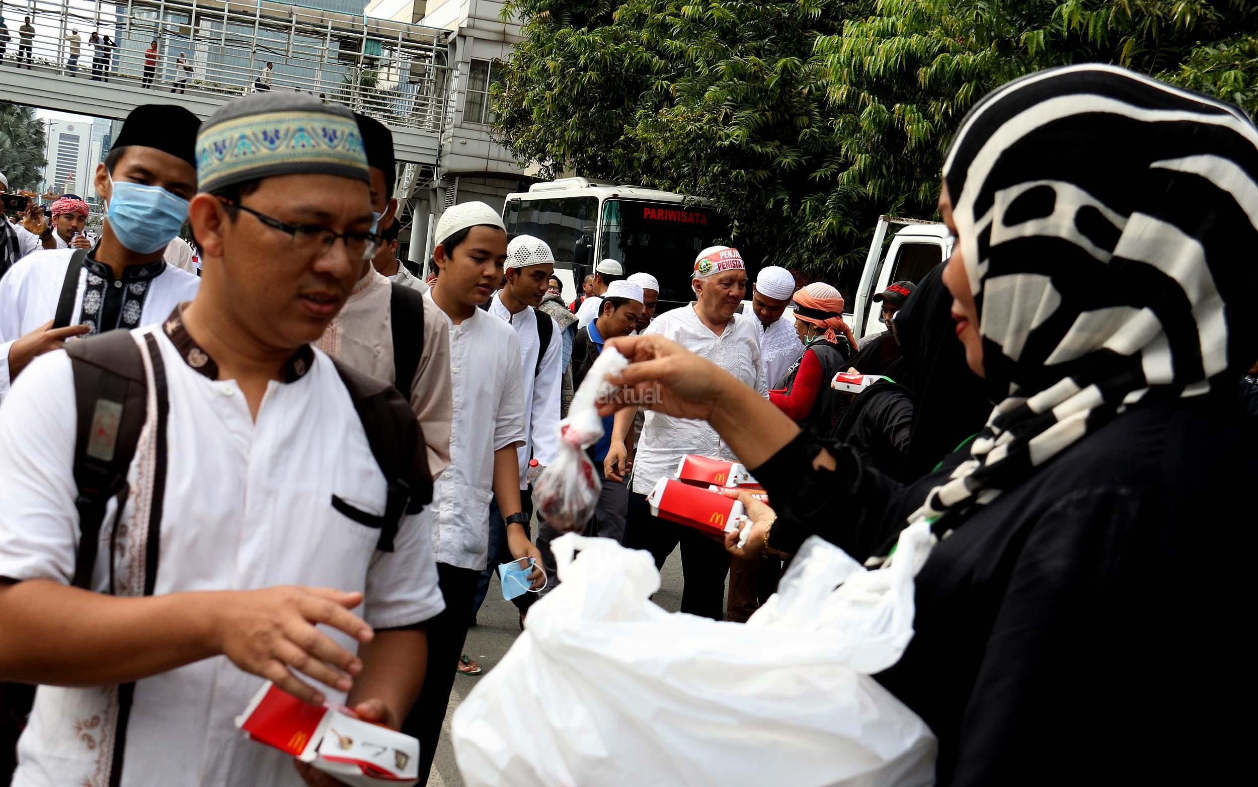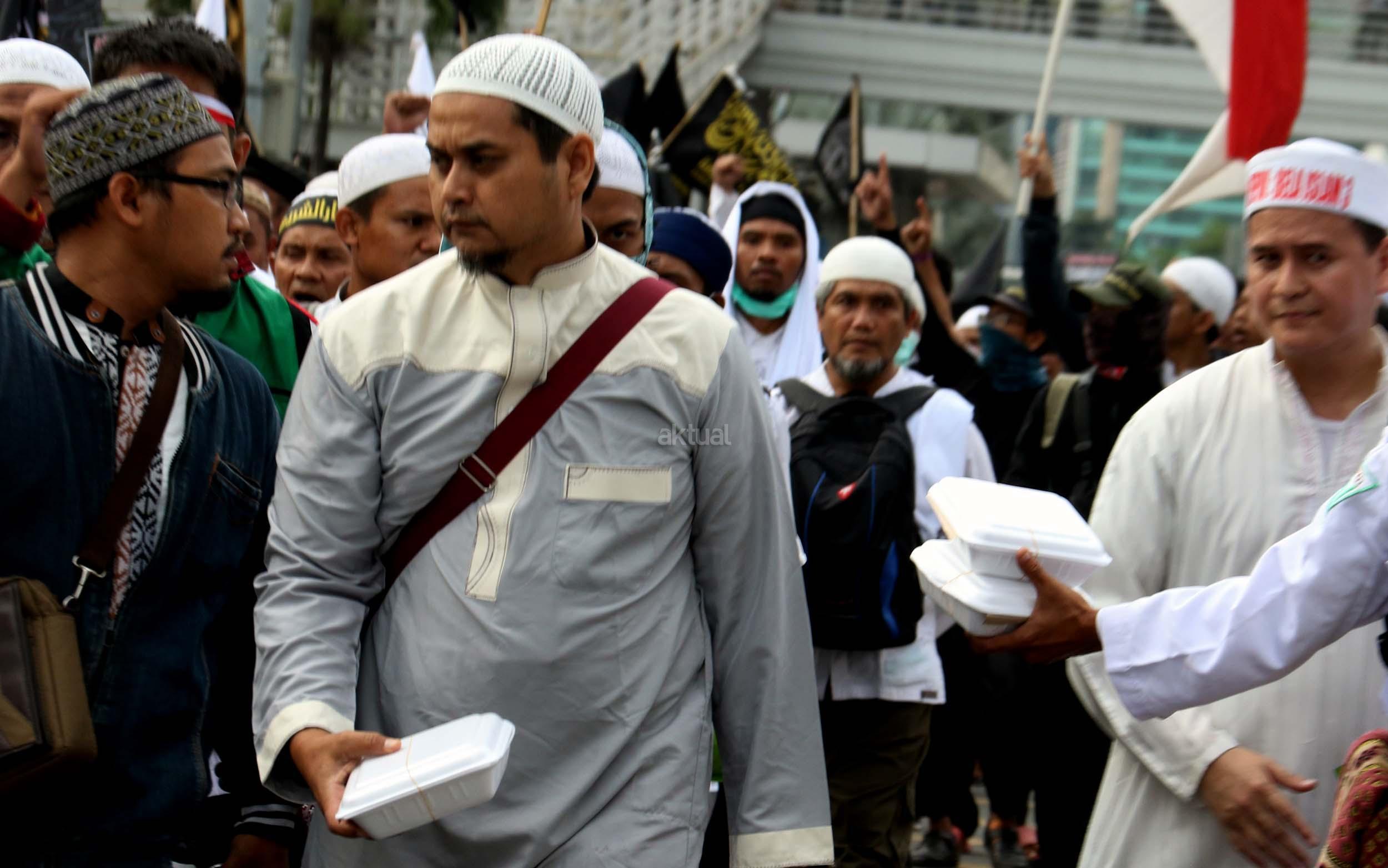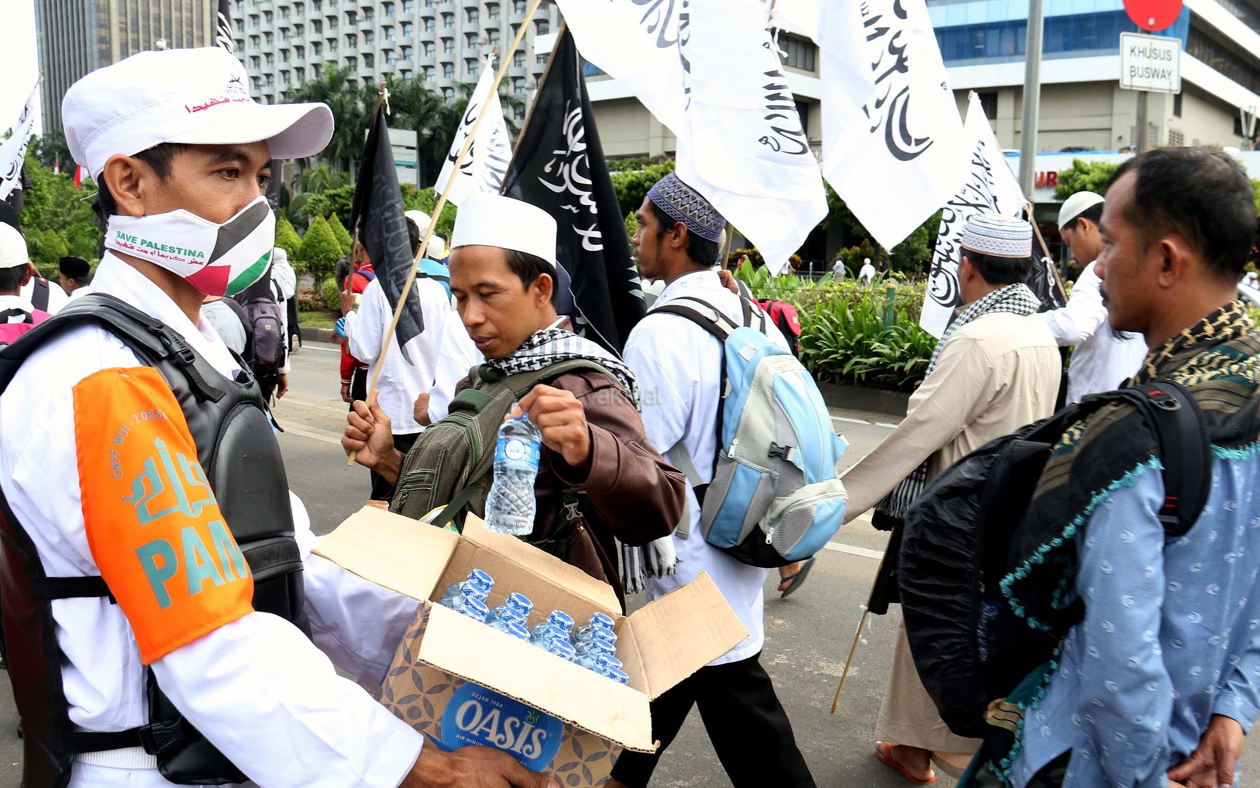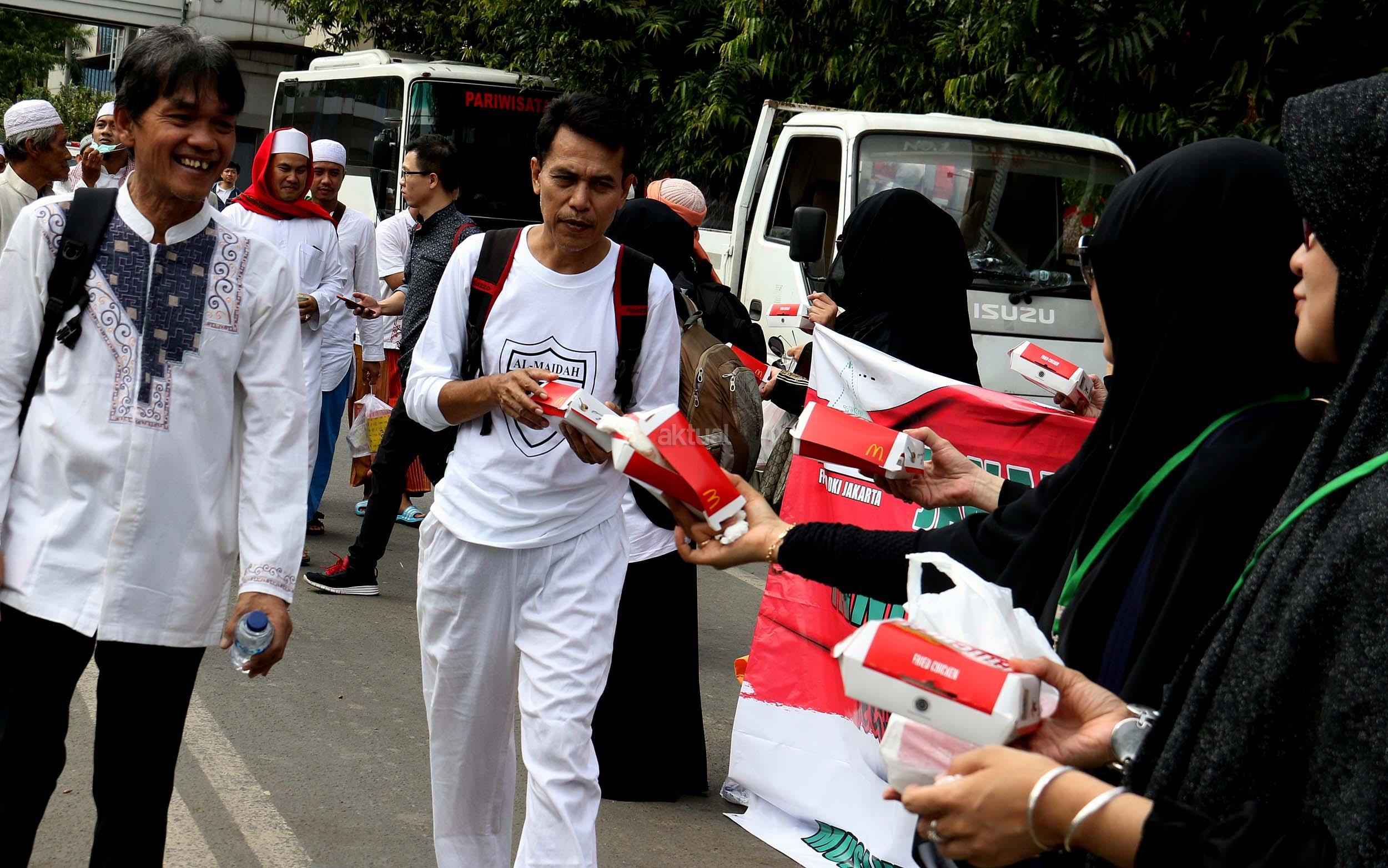 Relawan Bagikan Makanan dan Minuman Kepada Peserta Aksi 212
