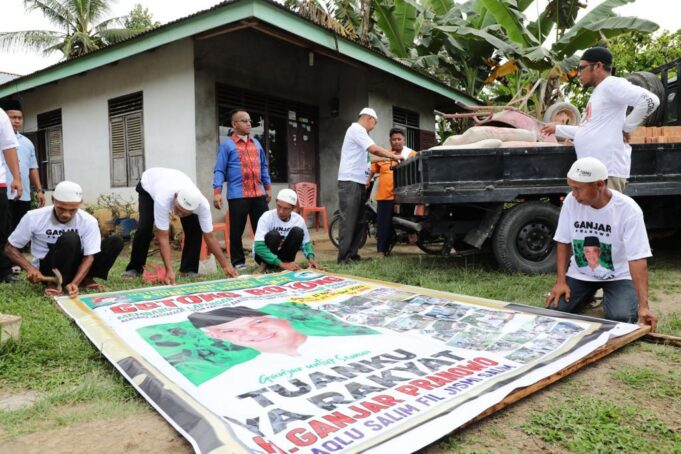 Serdang Bedagai – Kekompakan warga bersama para relawan pendukung Ganjar terlihat saat mereka bergotong royong membangun sebuah lapangan bulutangkis di Desa Silau Rakyat, Kecamatan Sei Rampah, Kabupaten Serdang Bedagai, Sumatera Utara pada Sabtu (11/11).
