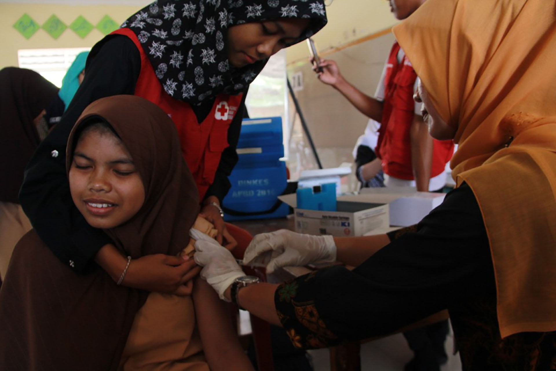 Relawan PMI Lakukan Vaksinasi Campak dan Rubella kepada 400 Anak di Pesantren
