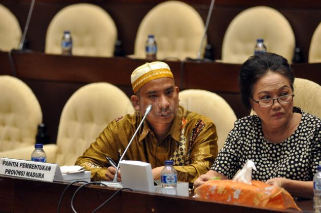 Beberapa panitia pembentukan Provinsi Madura melakukan audiensi rapat dengar pendapat umum dengan Komisi II DPR RI di Gedung Parlemen, Senayan, Jakarta, Rabu (10/2/2016). Panitia menyampaikan aspirasi terkait rencana pembentukan dan menyampaikan pandangannya mengenai Pulau Madura yang selama ini dinilai dianaktirikan negara.