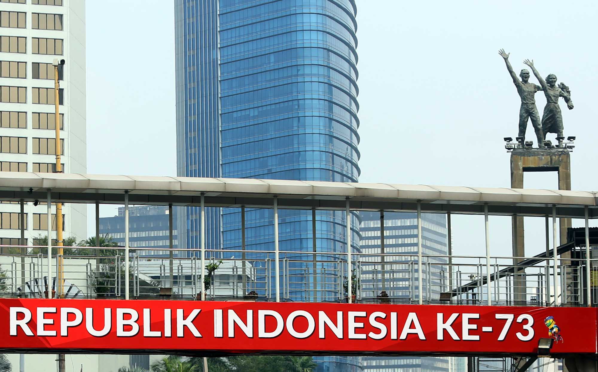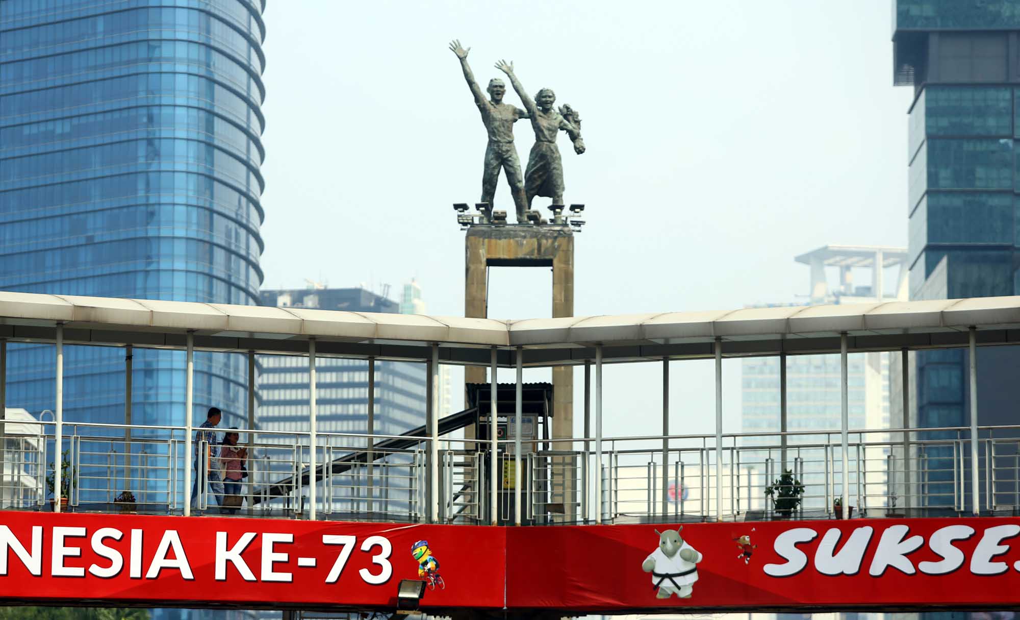 Warga melintasi Jembatan Penyebrangan Orang (JPO) di Bundaran HI, Jakarta, Selasa (24/7). Gubernur DKI Jakarta Anies Baswedan berencana akan melakukan pembongkaran JPO Bundaran HI agar tidak menganggu patung selamat datang yang dibangun untuk menyambut peserta Asian Games. Nantinya usai dirobohkan, dilokasi tersebut akan dibangun 'Pelican Crossing' untuk memudahkan pejalan kaki menyeberang jalan. AKTUAL/Tino Oktaviano