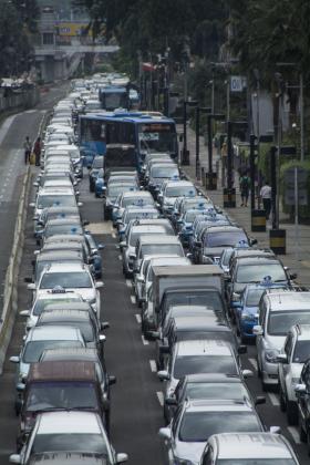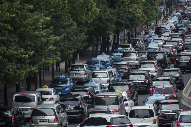 Kendaraan terjebak kemacetan di Jalan MH Thamrin, Jakarta, Senin (20/6). Pemprov DKI Jakarta akan memberlakukan uji coba sitem pelat nomor ganjil genap pada 20 Juli-20 Agustus 2016 mendatang, uji coba tersebut dilakukan unutk mengatasi kemacetan di Ibu Kota. ANTARA FOTO/Aprillio Akbar/aww/16.