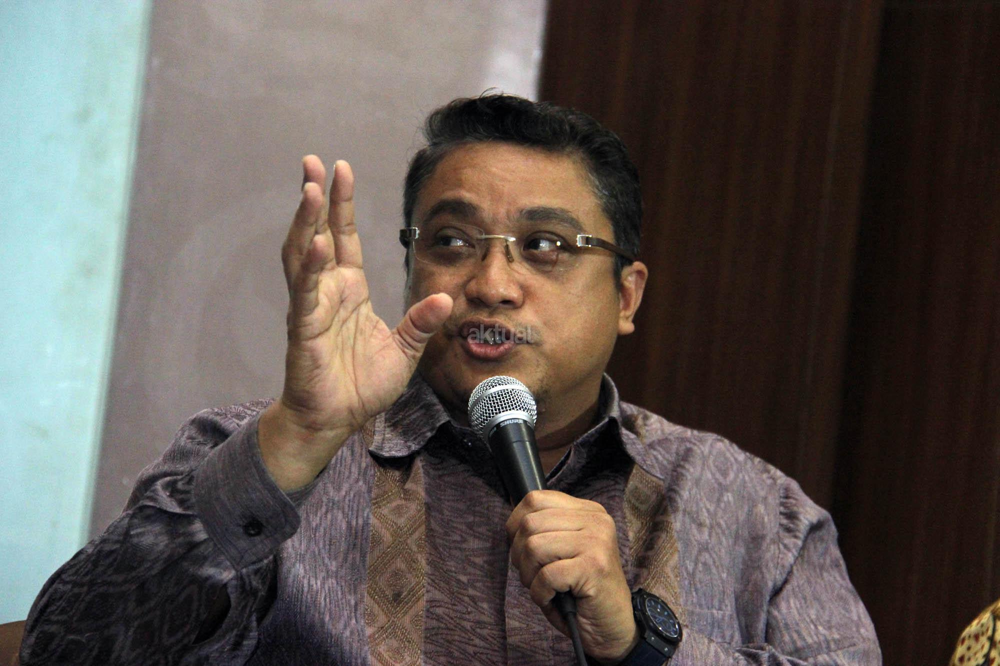Ketua Panja RUU Perfilman Abdul Kharis berbicara dalam Forum Legislasi dengan topik 'RUU Perfilman' di Gedung Parlemen Senayan, Jakarta, Selasa (8/3/2016). Pemerintah dalam waktu dekat segera merampungkan pembahasan revisi Daftar Negatif Investasi (DNI). Hal tersebut untuk membuka kesempatan yang lebih besar bagi pemodal asing berinvestasi lebih di sektor usaha di dalam negeri. Salah satu sektor yang turut direvisi adalah investasi di sektor industri perfilman, mulai dari produksi, distribusi, hingga eksebisi. Foto: Aktual/Junaidi Mahbub
