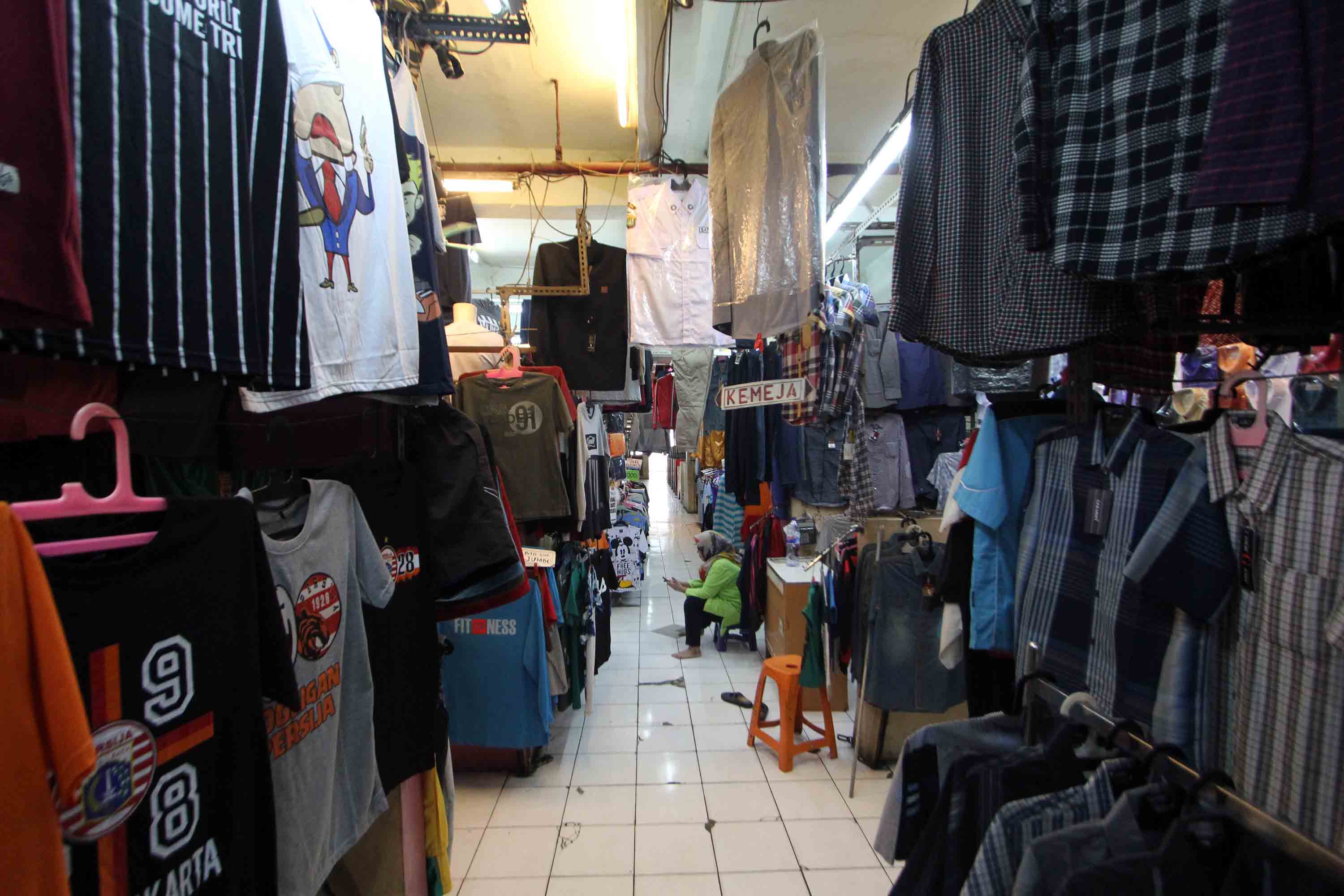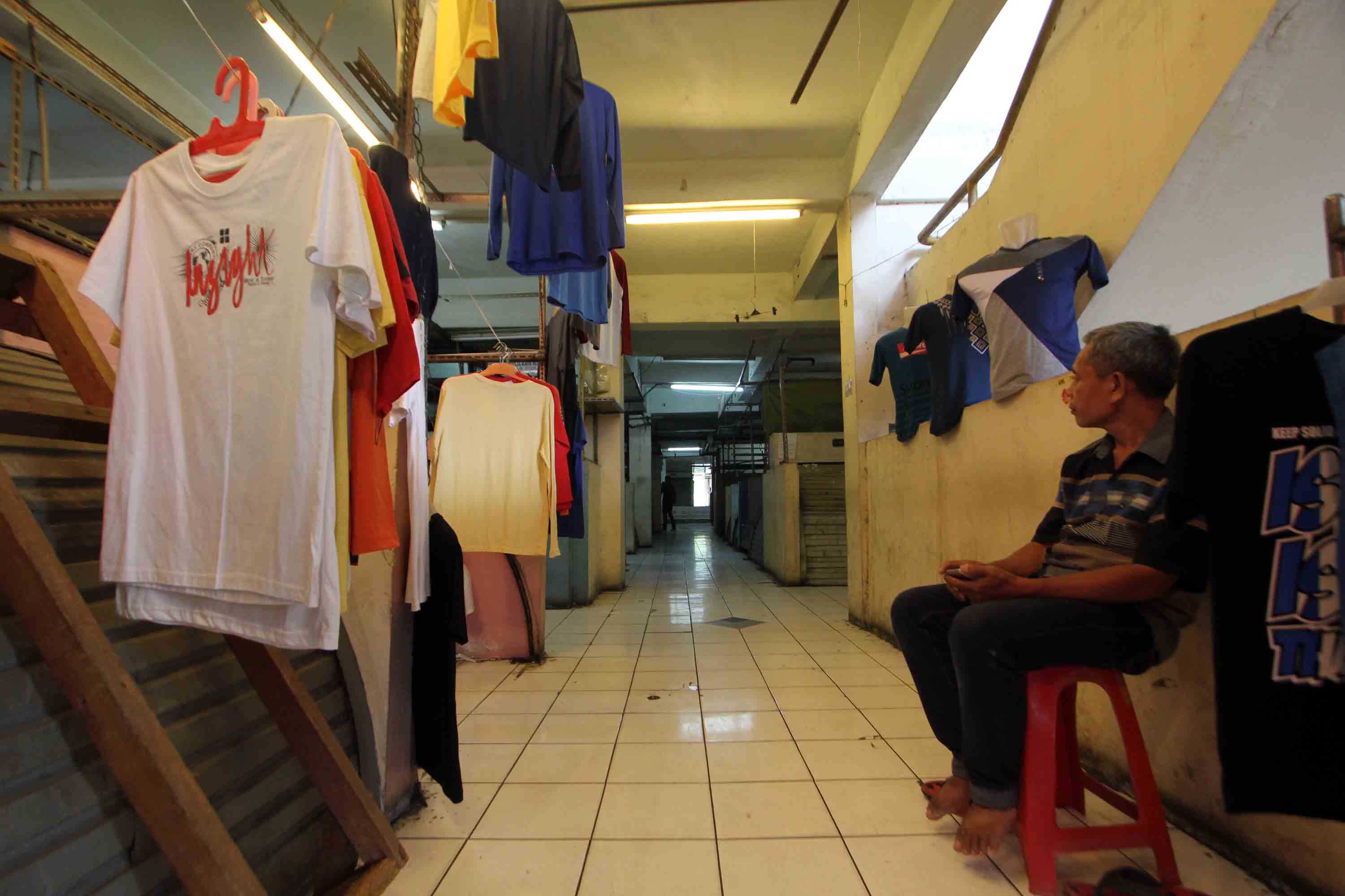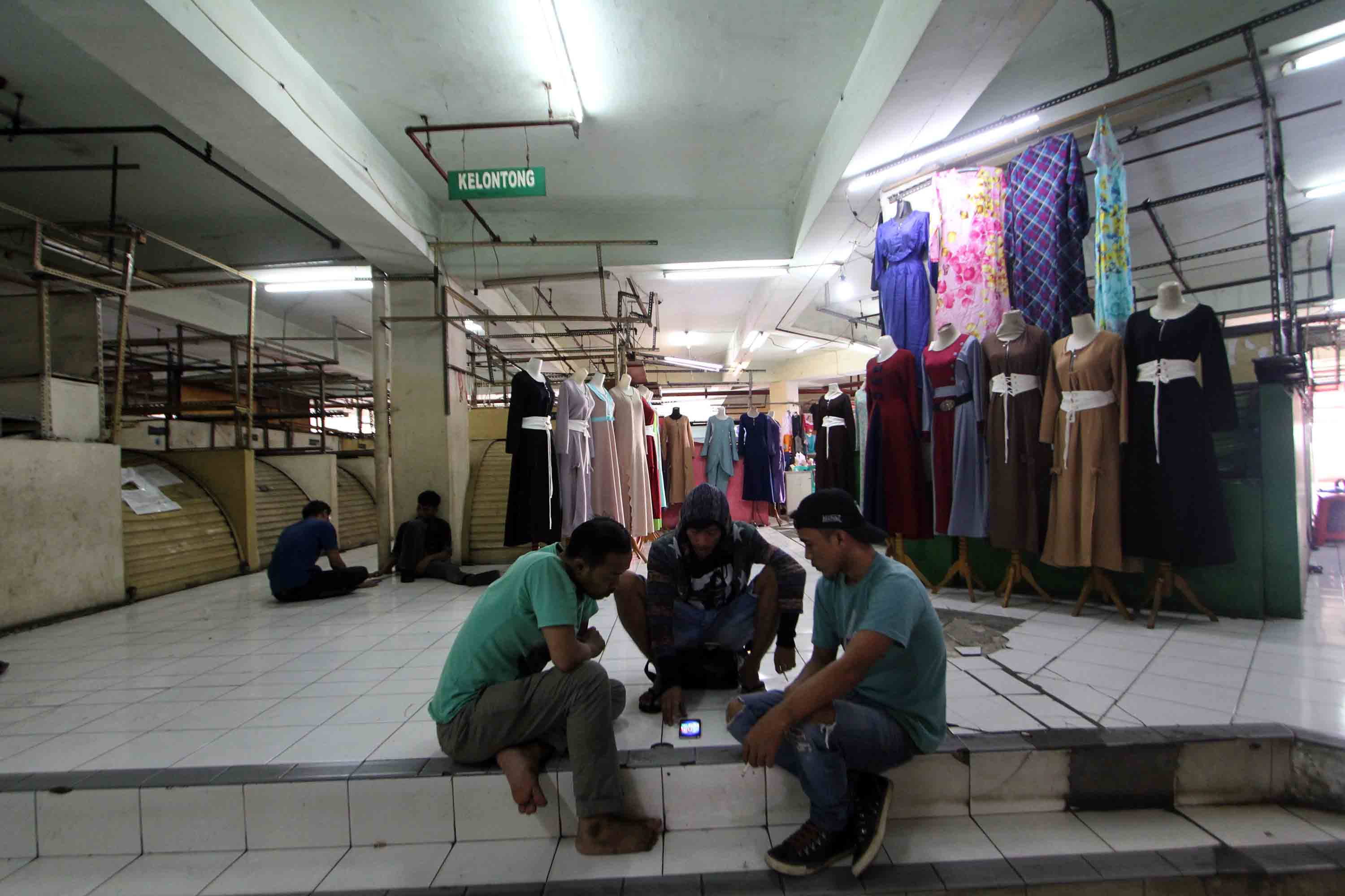 Pedagang menunggu pembeli di Pasar Tanah Abang Blok G, Jakarta, Senin (22/10). Pemprov DKI Jakarta akan melakukan revitalisasi terhadap Blok G dengan konsep menggabungkan pasar dan hunian untuk menarik minat masyarakat berbelanja. AKTUAL/Tino Oktaviano