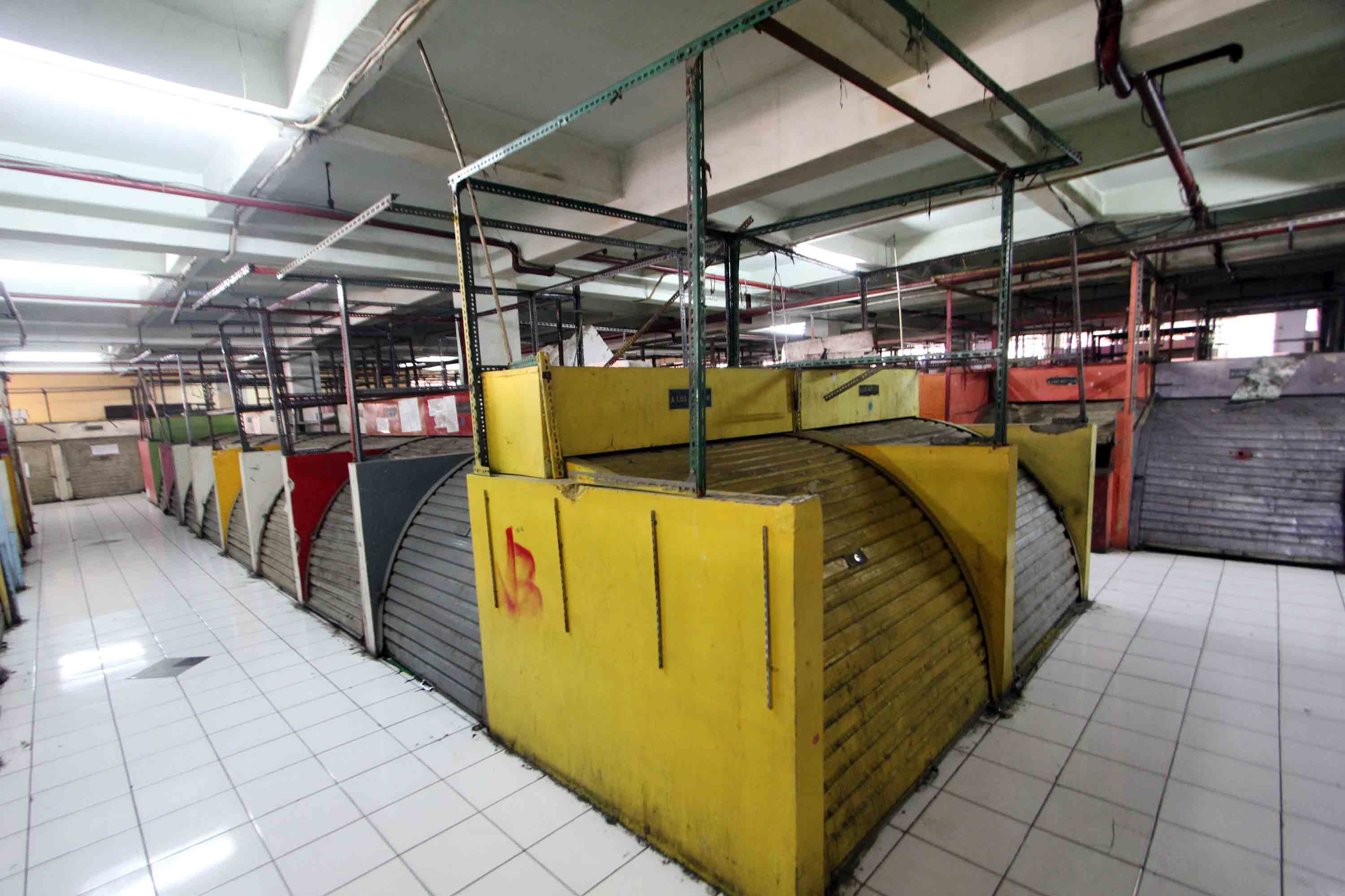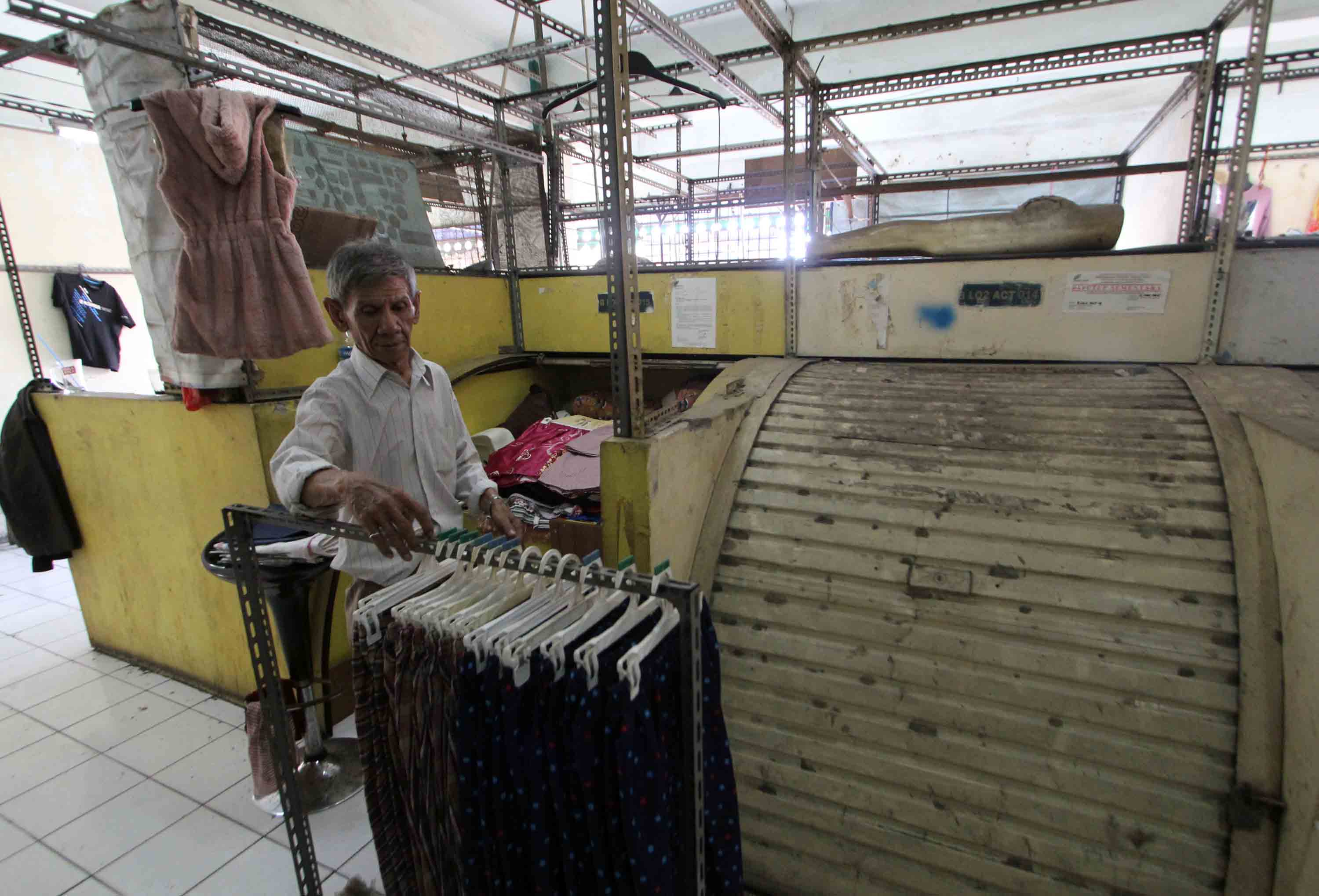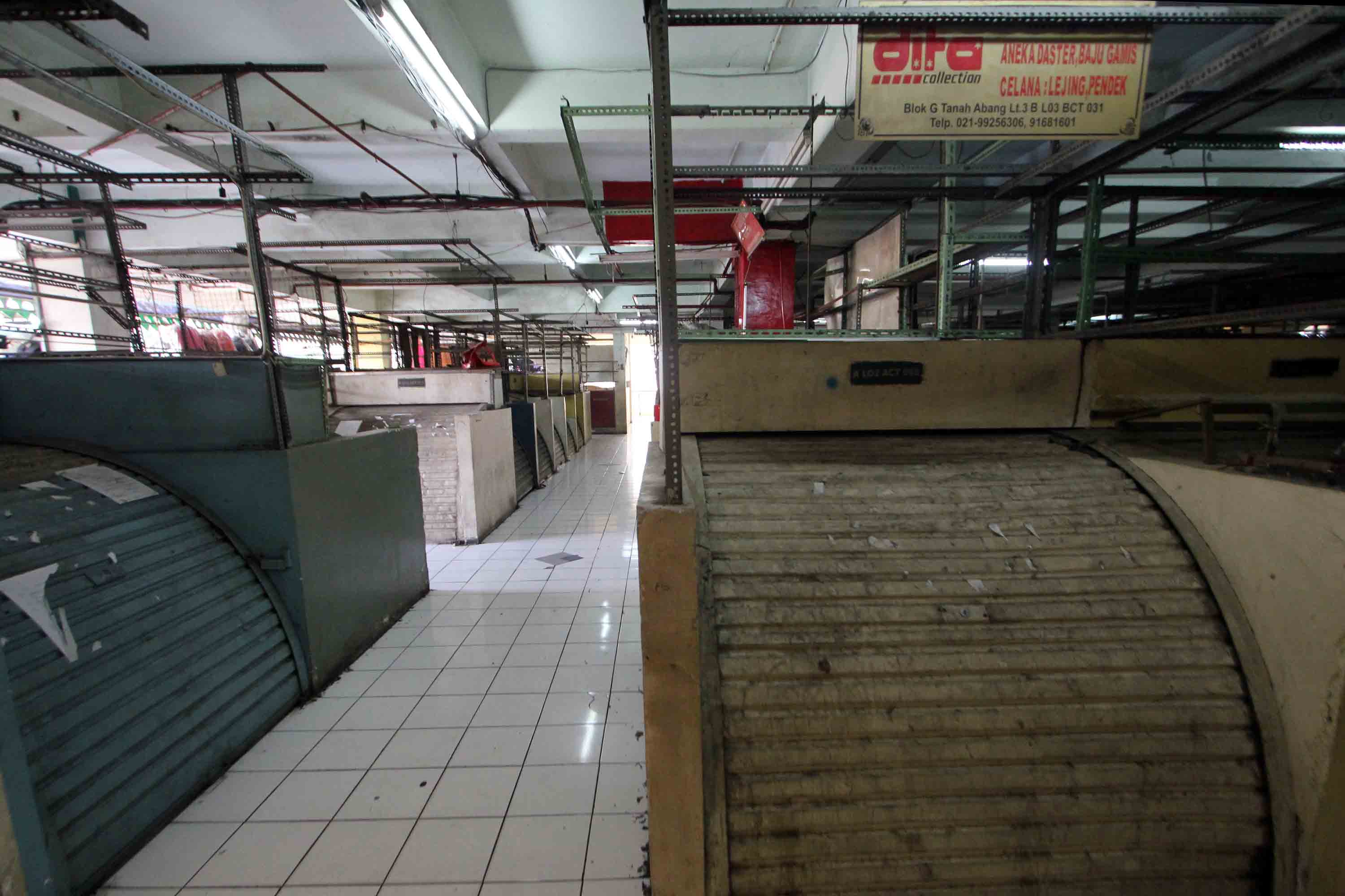 Pedagang menunggu pembeli di Pasar Tanah Abang Blok G, Jakarta, Senin (22/10). Pemprov DKI Jakarta akan melakukan revitalisasi terhadap Blok G dengan konsep menggabungkan pasar dan hunian untuk menarik minat masyarakat berbelanja. AKTUAL/Tino Oktaviano