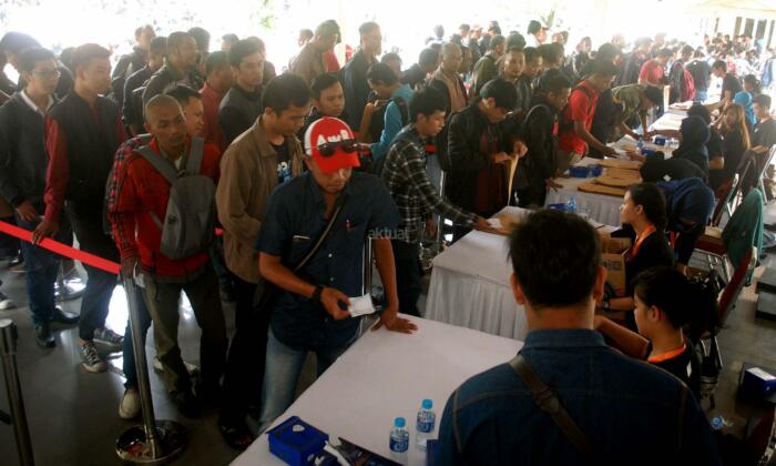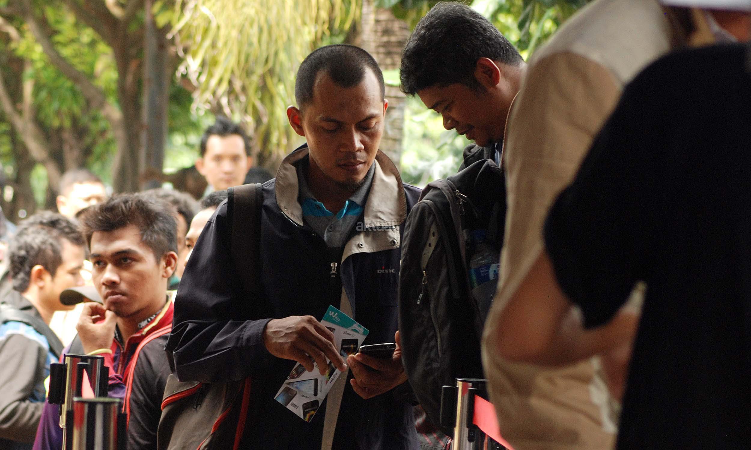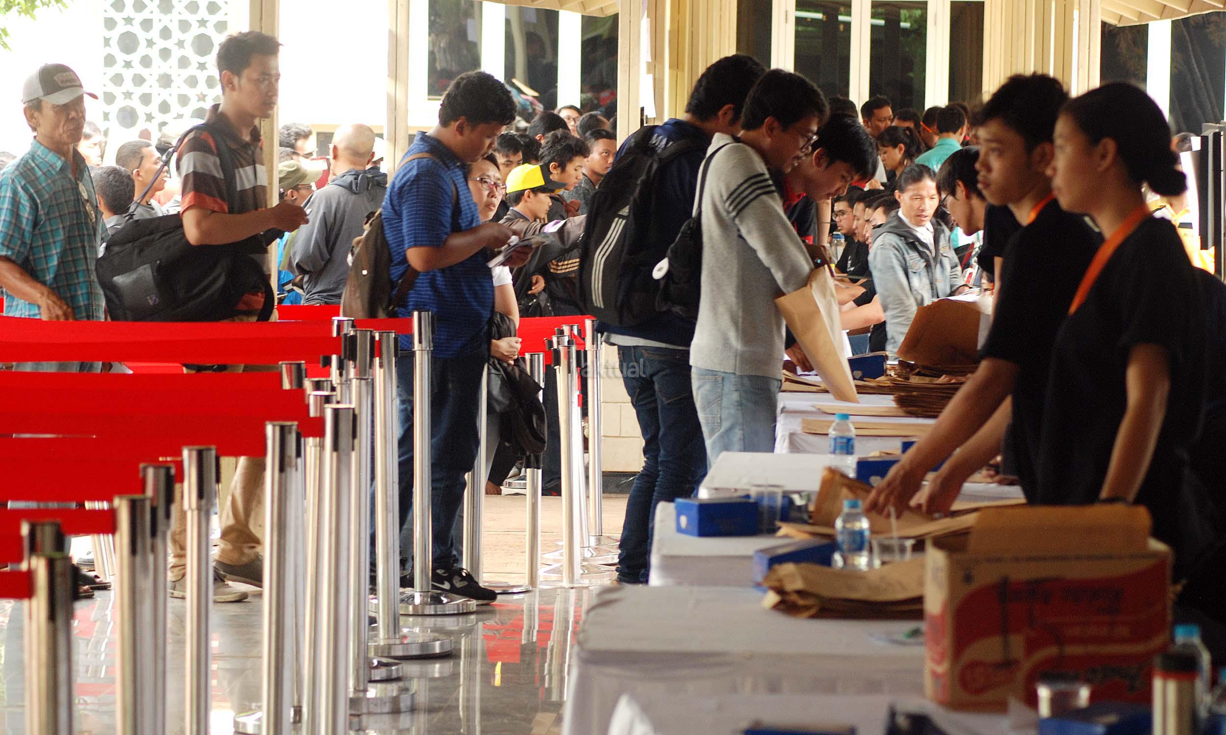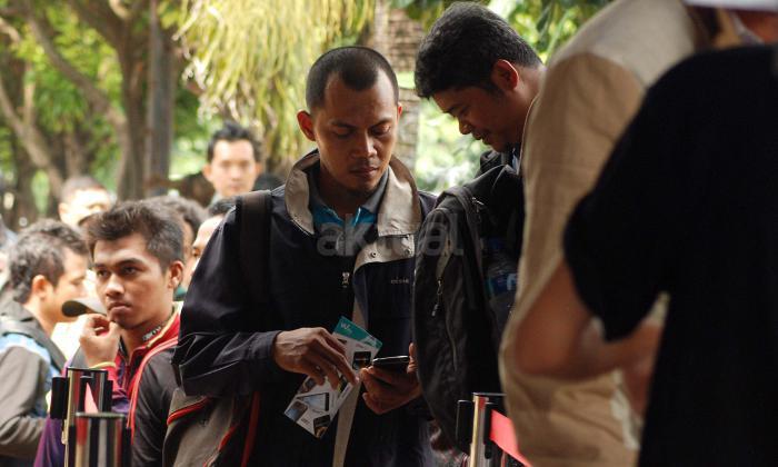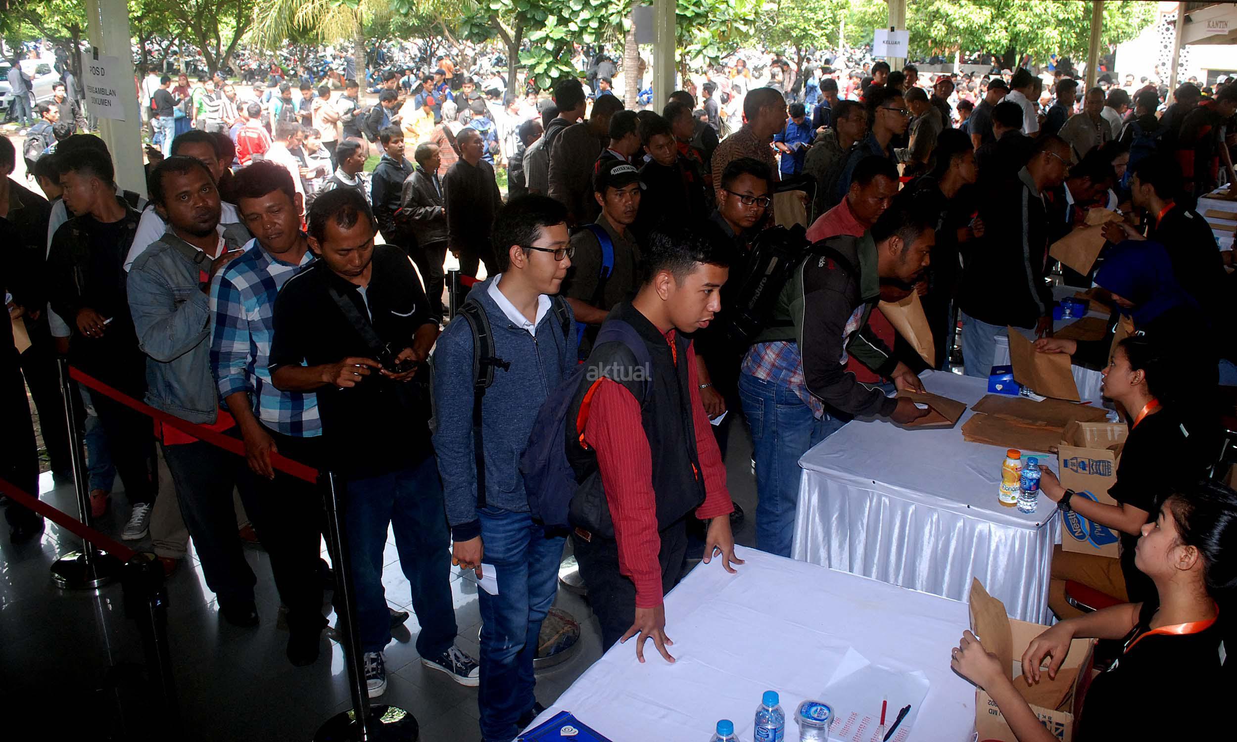 Ribuan orang berbondong-bondong untuk mendaftar menjadi driver UberMotor di Jakarta, Rabu (25/5/2016). Uber Indonesia membuka pendaftaran driver untuk umum dengan melalui proses yang sangat mudah, mulai dari pendaftaran, pembekalan, hingga aktivasi dalam satu lokasi.