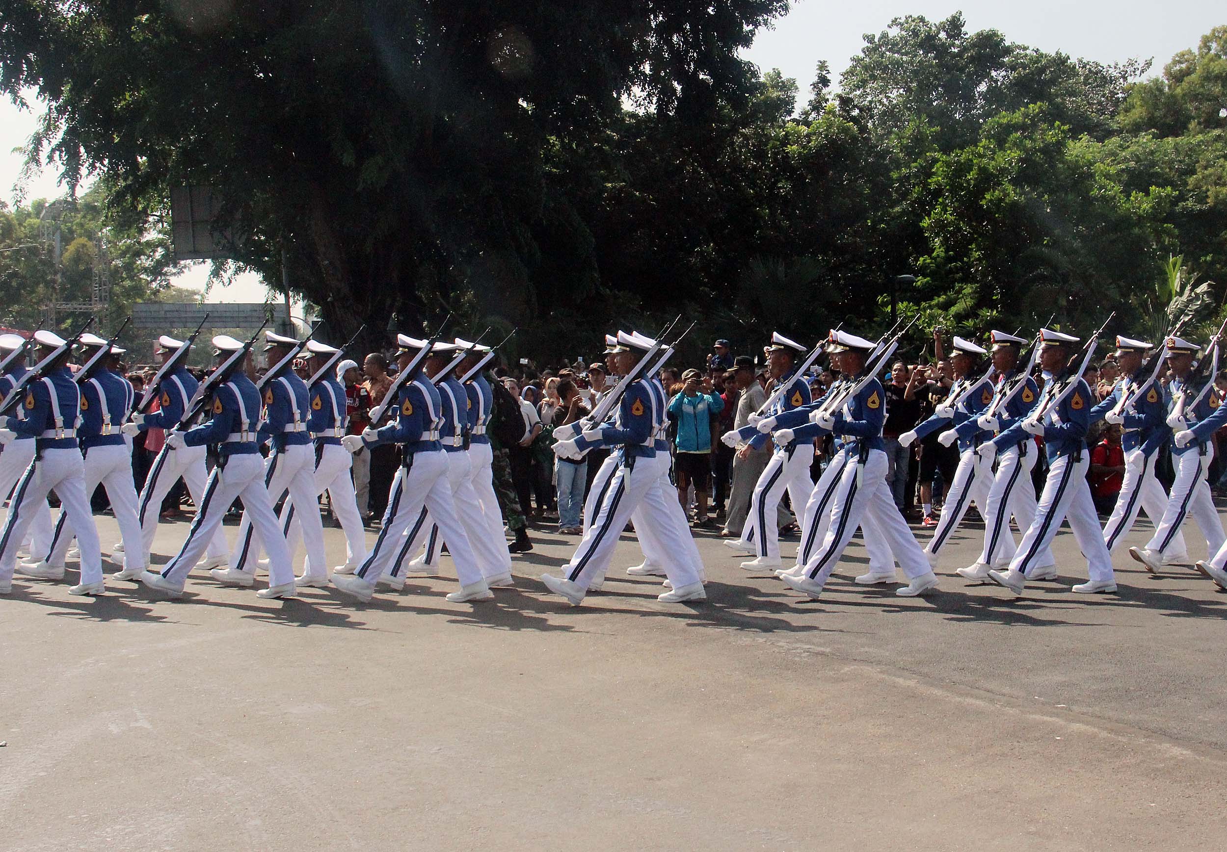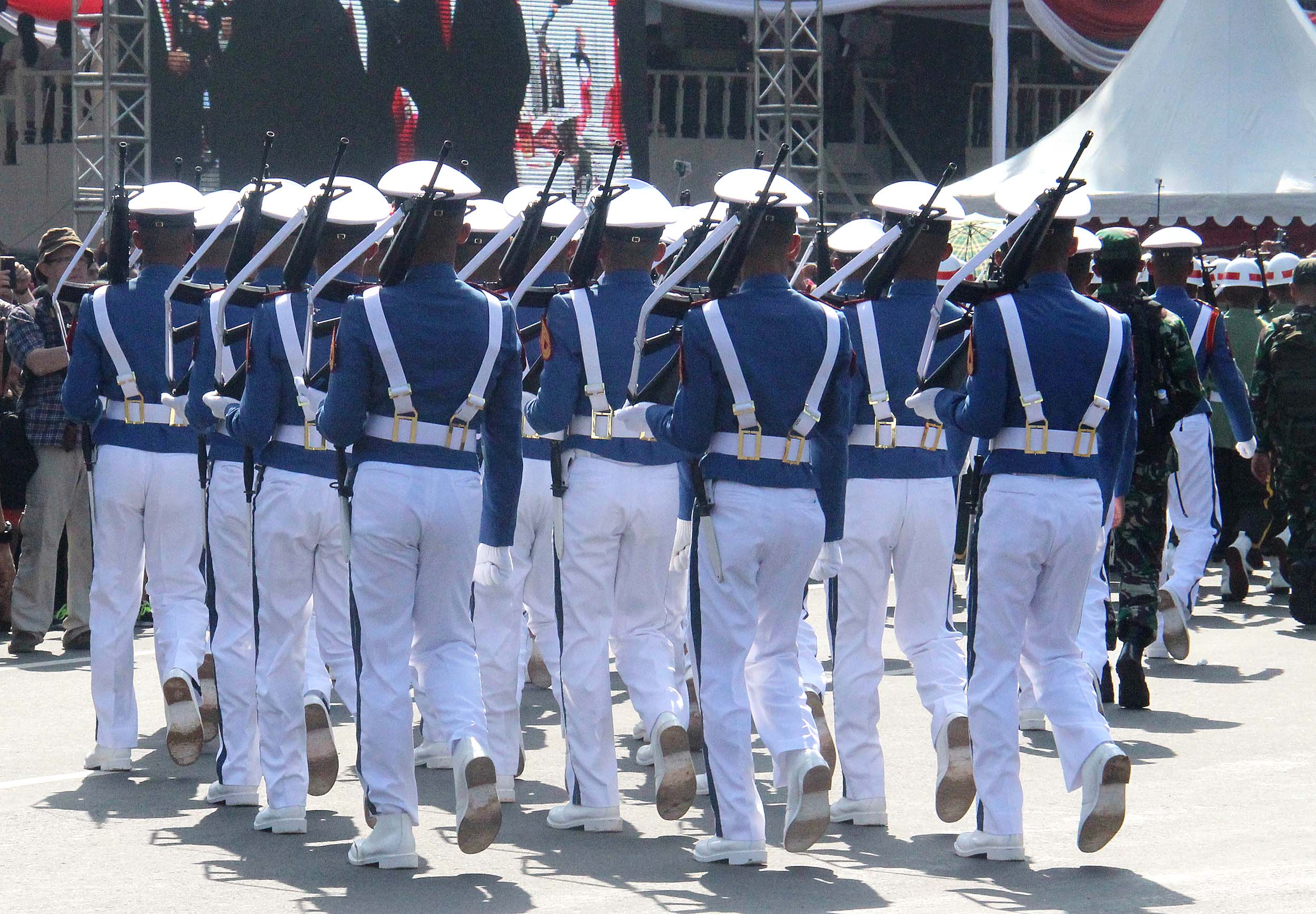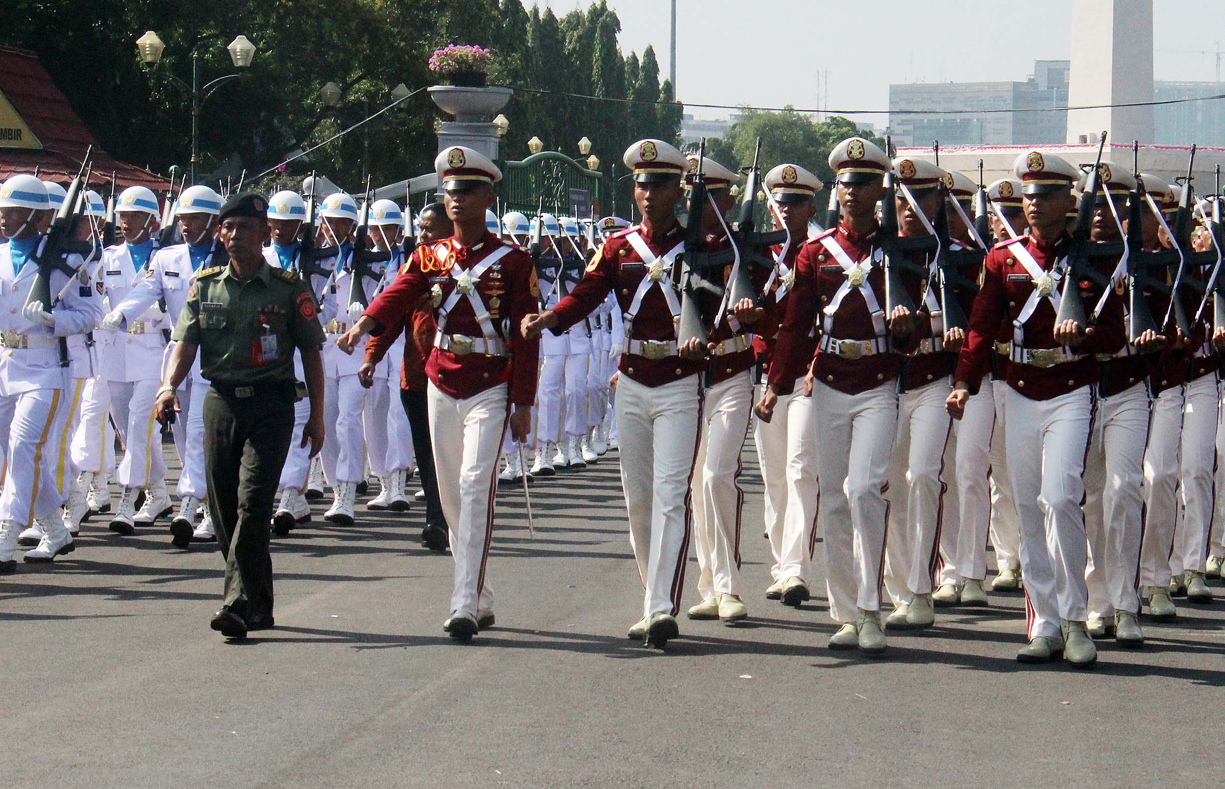 Terlihat ribuan pasukan gabungan TNI/Polri melakukan parade saat akan memasuki Istana Negara, Jakarta, Rabu (17/8/2016). Dalam acara upacara detik-detik Proklamasi ribuan personel TNI akan terlibat dalam rangkaian pelaksanaan Upacara Peringatan HUT RI ke-71 tahun 2016 di Istana Negara.