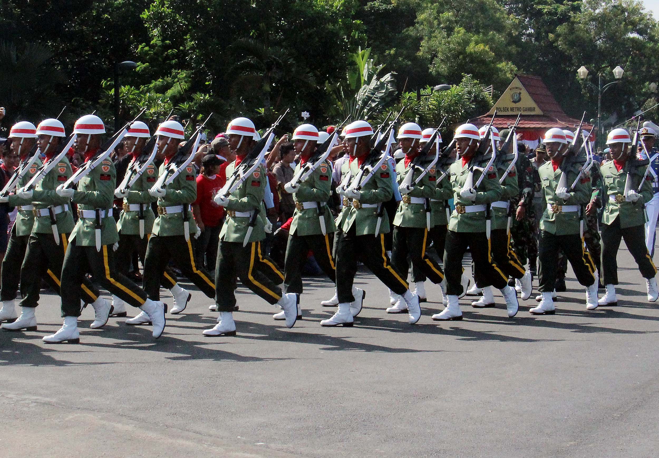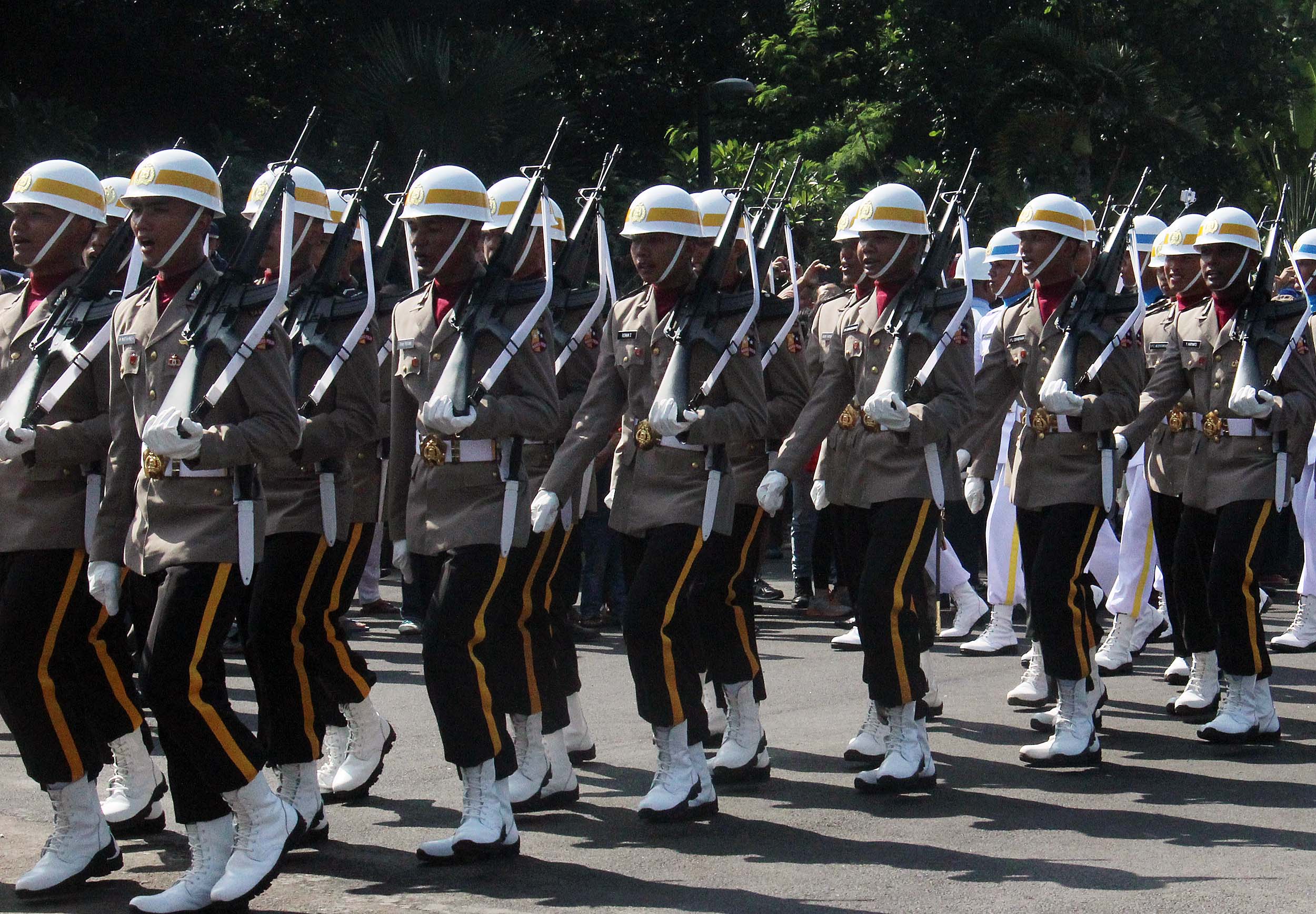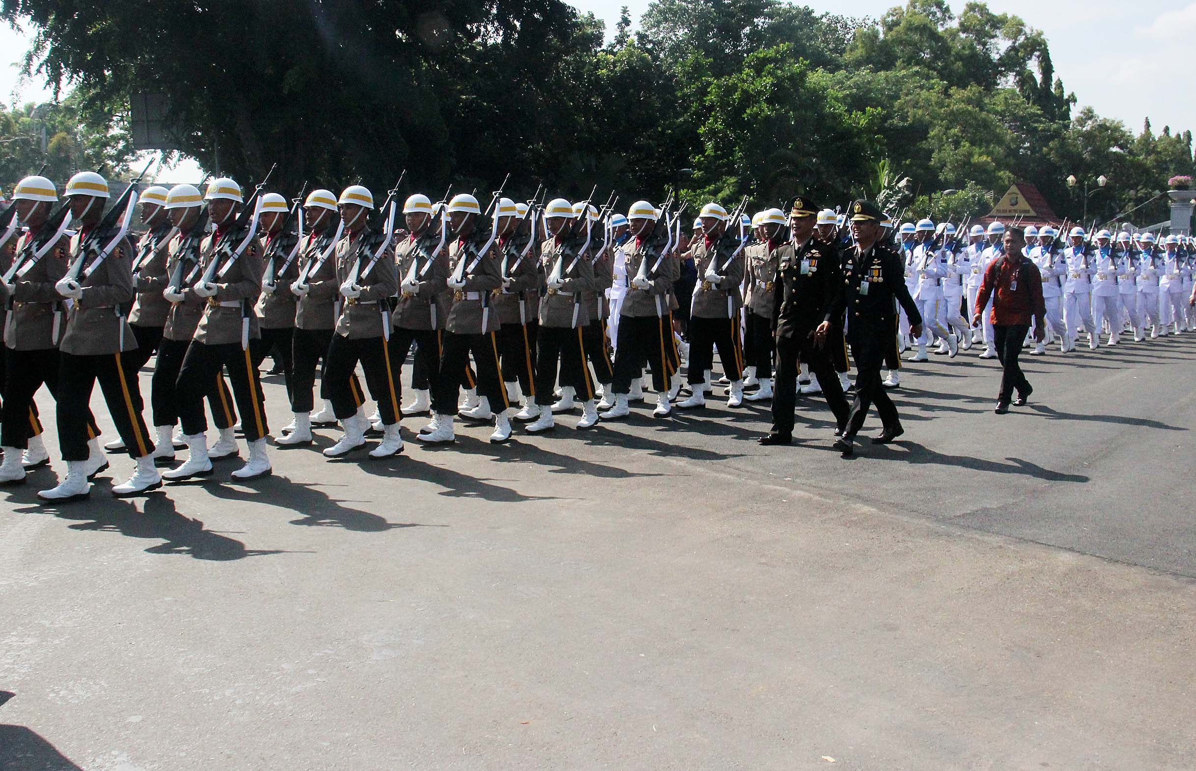 Terlihat ribuan pasukan gabungan TNI/Polri melakukan parade saat akan memasuki Istana Negara, Jakarta, Rabu (17/8/2016). Dalam acara upacara detik-detik Proklamasi ribuan personel TNI akan terlibat dalam rangkaian pelaksanaan Upacara Peringatan HUT RI ke-71 tahun 2016 di Istana Negara.