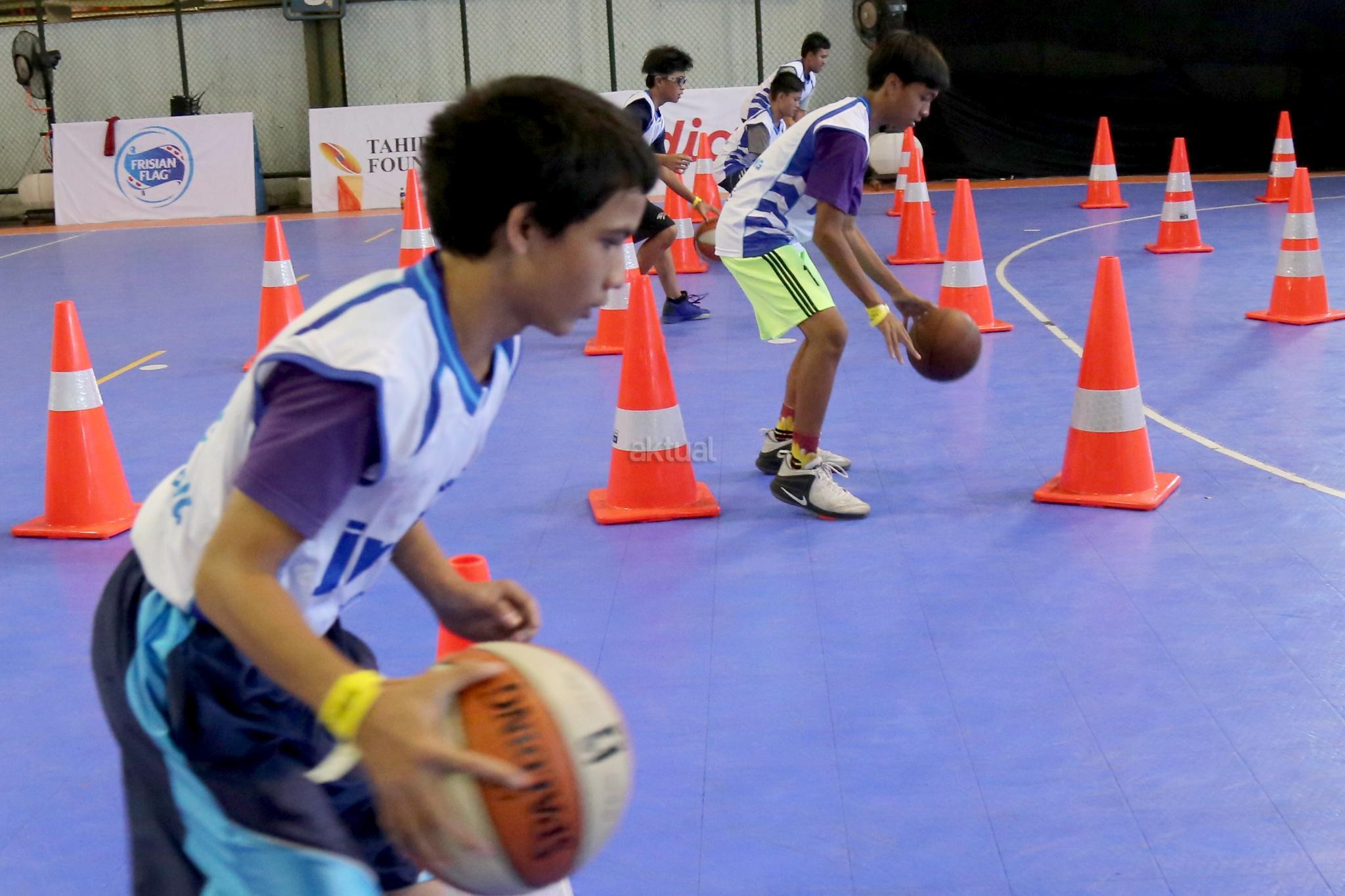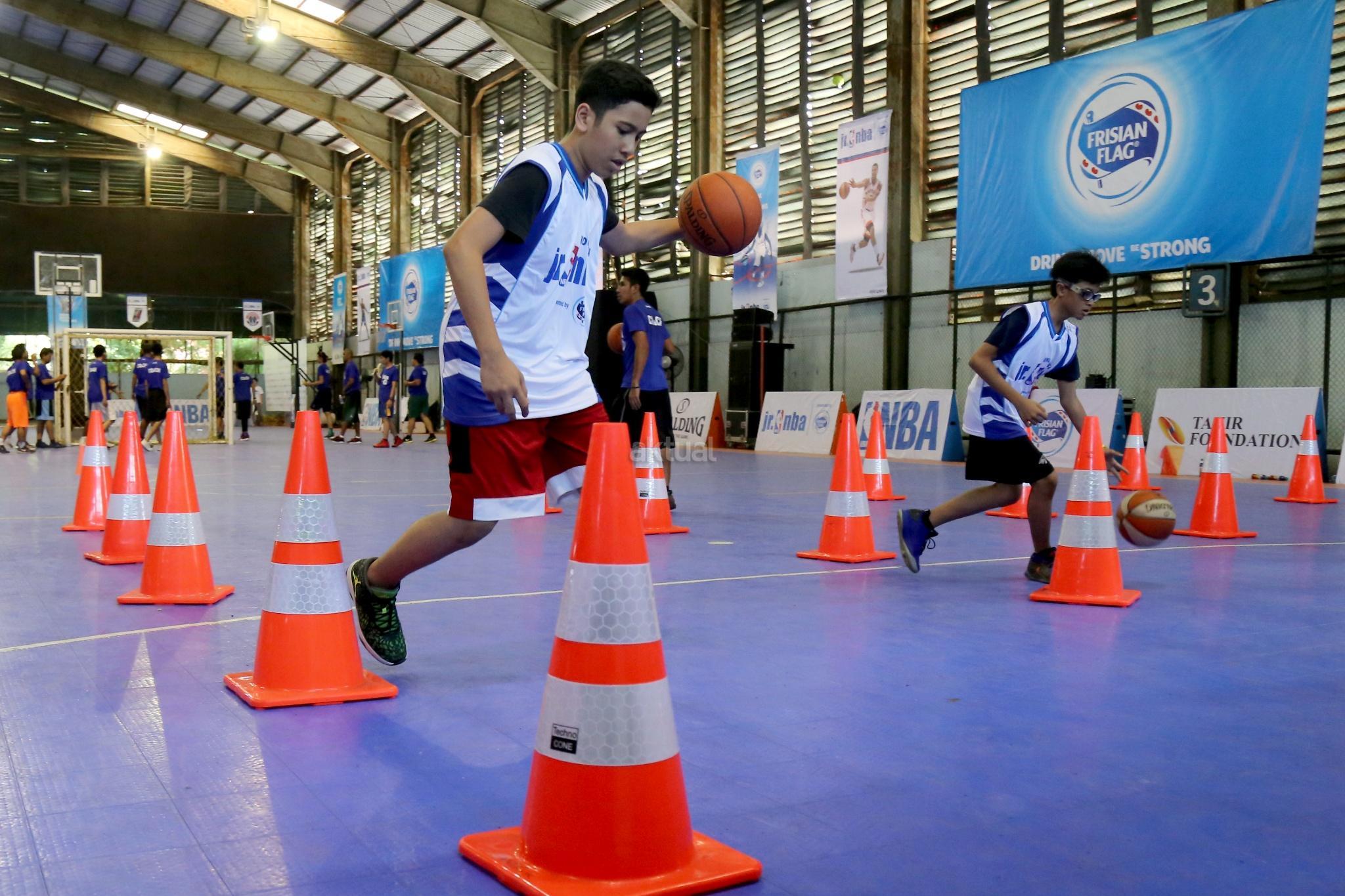 Peserta melakukan seleksi Jr NBA Indonesia 2017 yang diselenggarakan oleh Frisian Flag di Cilandak Sport Center, Jakarta, Sabtu (26/8). Dalam seleksi ini, sebanyak 64 peserta yang terdiri dari 32 putra dan 32 putri terpilih akan mengikuti National Training Camp dan selanjutnya akan memilih 16 peserta putra putri untuk menjadi pemain Jr NBA indonesia 2017 All-Stars, untuk merasakan pengalaman unik NBA di luar negeri bersama dengan Jr NBA All-Stars dari negara lain. AKTUAL/Tino Oktaviano