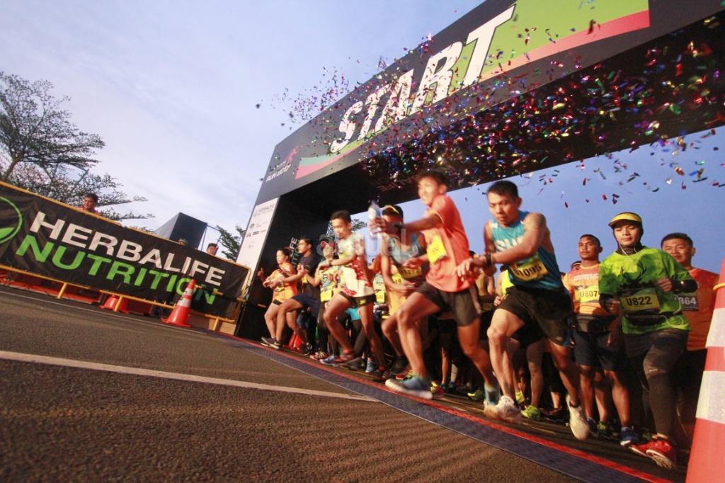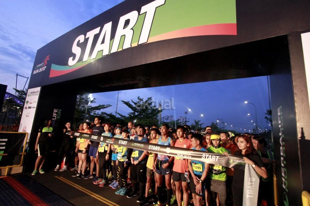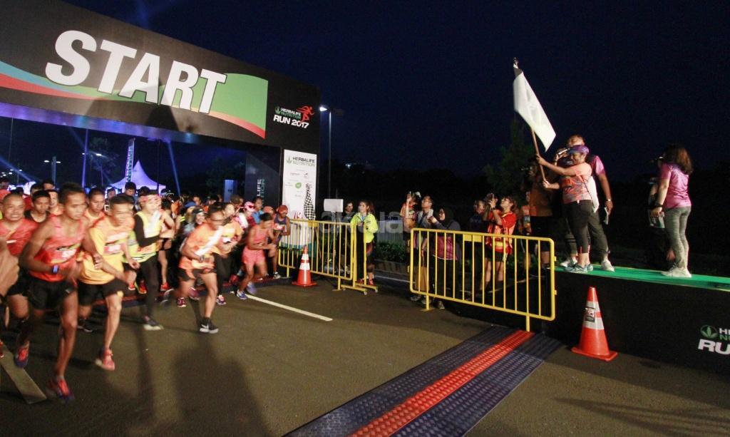 Ribuan peserta lari Herbalife Run 2017 di Serpong, Tangerang Selatan, Banten, Minggu (12/11). Kegiatan rutin ini merupakan yang ke-empat kalinya diikuti oleh 2.700 peserta, kali ini juga melombakan kategori baru Golden Age Group Category 10K dan 5K yang ditujukan mengkampanyekan gaya hidup sehat melalui olahraga dan asupan nutrisi seimbang sesuai dengan komitmen perusahaan untuk membantu mewujudkan Indonesia sehat dan bugar. AKTUAL/HO