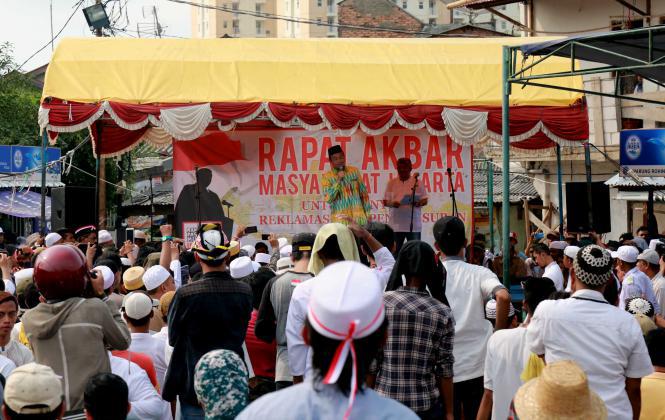 Dalam Rapat akbar masyarakat Luar Batang untuk menolak kezaliman yang dilakukan Pemprov DKI Jakarta dan menolak penggusuran dan penertiban terhadap warga Luar Batang.