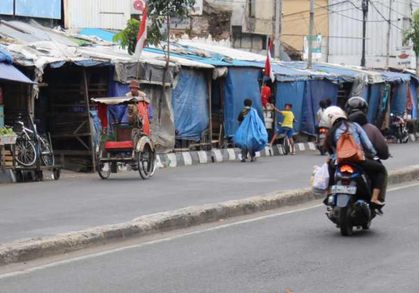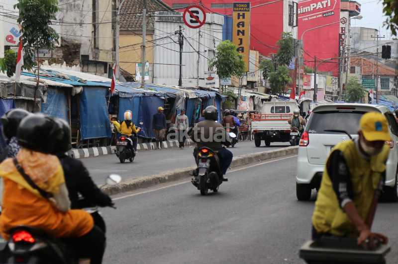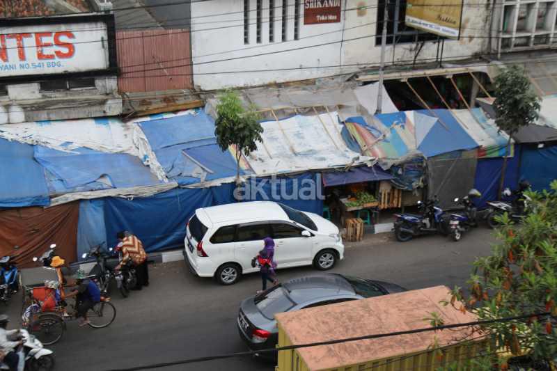 Tampak Pedagang Kaki Lima (PKL) di zona merah, kawasan Jalan Ahmad Yani, Cicadas, Bandung, Jawa Barat, Sabtu (26/9). Wali Kota Bandung Ridwan Kamil yang berjanji awal tahun 2015 akan ada pembenahan PKL di Cicadas belum tampak. Padahal selama ini PKL di Cicadas banyak dikeluhkan warga karena memakan badan jalan. Ada 914 PKL yang tercatat berjualan di trotoar. Bahkan turun ke jalan jika menjelang hari raya atau libur nasional sehingga menyebabkan kemacetan dikala jam sibuk. AKTUAL/TINO OKTAVIANO