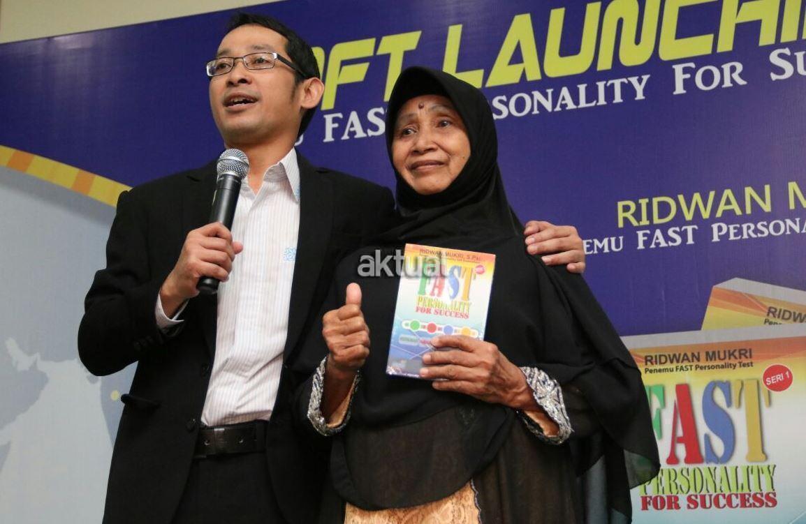 Tokoh Muda Indonesia Bidang Self Development Ridwan Mukri didampingi Ibunya Puri memperlihatkan buku FAST Personality saat acara Soft Launching di SkyWorld TMII, Jakarta, Sabtu (24/12/2016). Indonesia membutuhkan Gen FAST, yaitu generasi yang Fathonah (cerdas), Amanah (terpercaya), Shiddiq (benar), dan Tabligh (gemar menyampaikan kebaikan) untuk memerangi 4K: kebodohan, kebohongan, kemarahan, dan kebencian. Tokoh muda di bidang self develo pment Ridwan Mukri menulis buku FAST Personality for Success, menemukan alat uji kepribadian FAST Personality Test, dan mengembangkan program pembelajaran FAST Edutainment Learning untuk menciptakan Gen FAST di keluarga, sekolah, organisasi, perusahaan, sampai pemerintahan. AKTUAL/HO