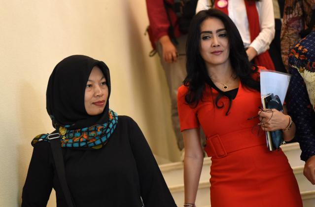 Kepala Staf Kepresidenan Moledoko usai menerima surat permohonan amnesti dari terpidana kasus pelanggaran UU ITE Baiq Nuril Maknun didampingi anggota DPR Fraksi PDI Perjuangan Rieke Diah Pitaloka di Kantor Staf Presiden, kompleks Istana Presiden, Jakarta, Senin (15/7/2019). AKTUAL/IST