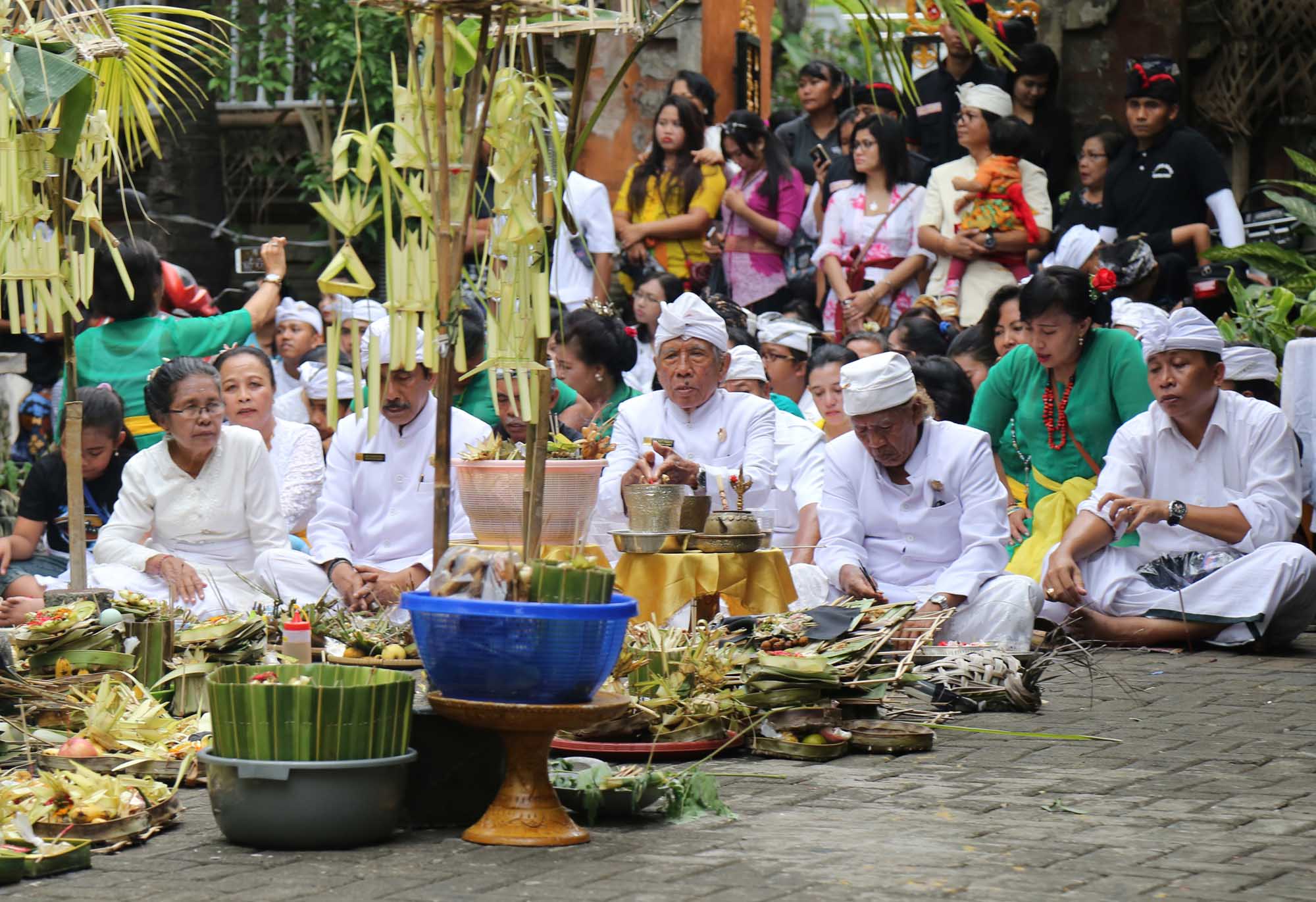 Umat Hindu memotret dengan hp sebelum menggelar ritual suci Tawur Kesanga jelang perasaan Nyepi di Pura Agung Wira Satya Buana, Jakarta, Senin (27/3). Kegiatan ritual tersebut digelar untuk menyucikan alam semesta beserta isinya dan meningkatkan hubungan dan keharmonisan antara sesama manusia, manusia dengan lingkungannya, serta manusia dengan Tuhan (Tri Hita Karana). AKTUAL/Tino Oktaviano