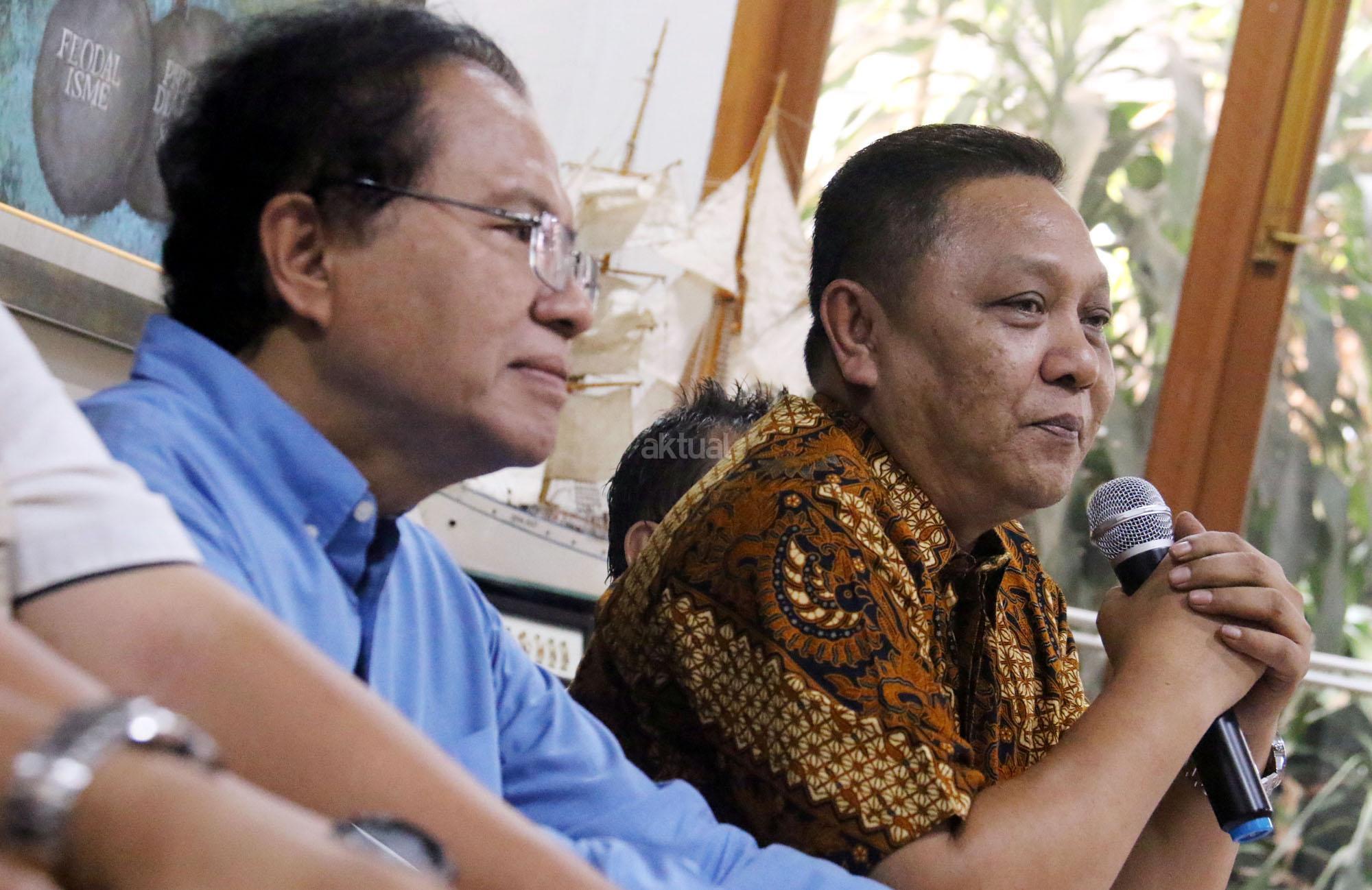 Mantan Menko Kemaritiman Rizal Ramli (kanan) saat konferensi pers soal