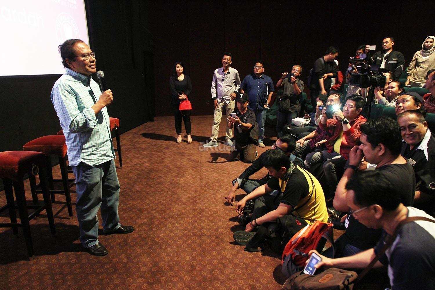 Tokoh Nasional Rizal Ramli saat menyaksikan Gala Priemer film “Assalamualaikum Calon Imam”yang digelar di Epicentrum XXI, kawasan Kuningan, Jakarta, Rabu (2/5). Film ini adalah adaptasi dari novel best seller yang ditulis Ima Madania dan disutradarai Findo Purwono dan di bintangi Natazha Rizki dan Miller Khan. Rizal Ramli sangat respek dan mendukung perfilman nasional yang selama ini berusaha bangkit mewarnai kebudayaan dan peradaban kita. Rizal Ramli mengatakan film ini pantas ditonton oleh kaum muda, masyarakat dan publik yang ingin melihat perspektif sineas angkatan muda terhadap dinamika secercah kehidupan umat Islam masa kini, Islam zaman now. AKTUAL/HO