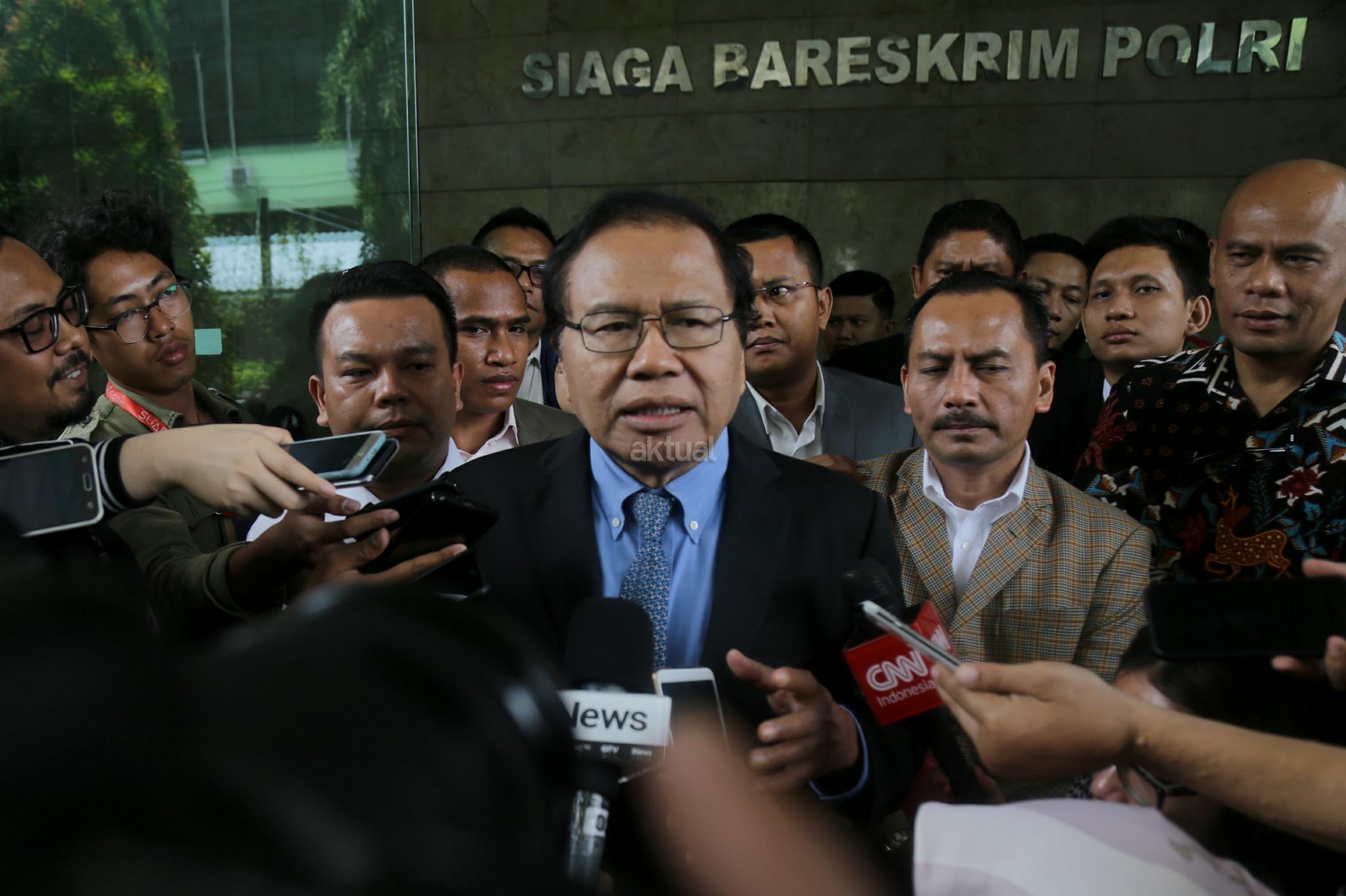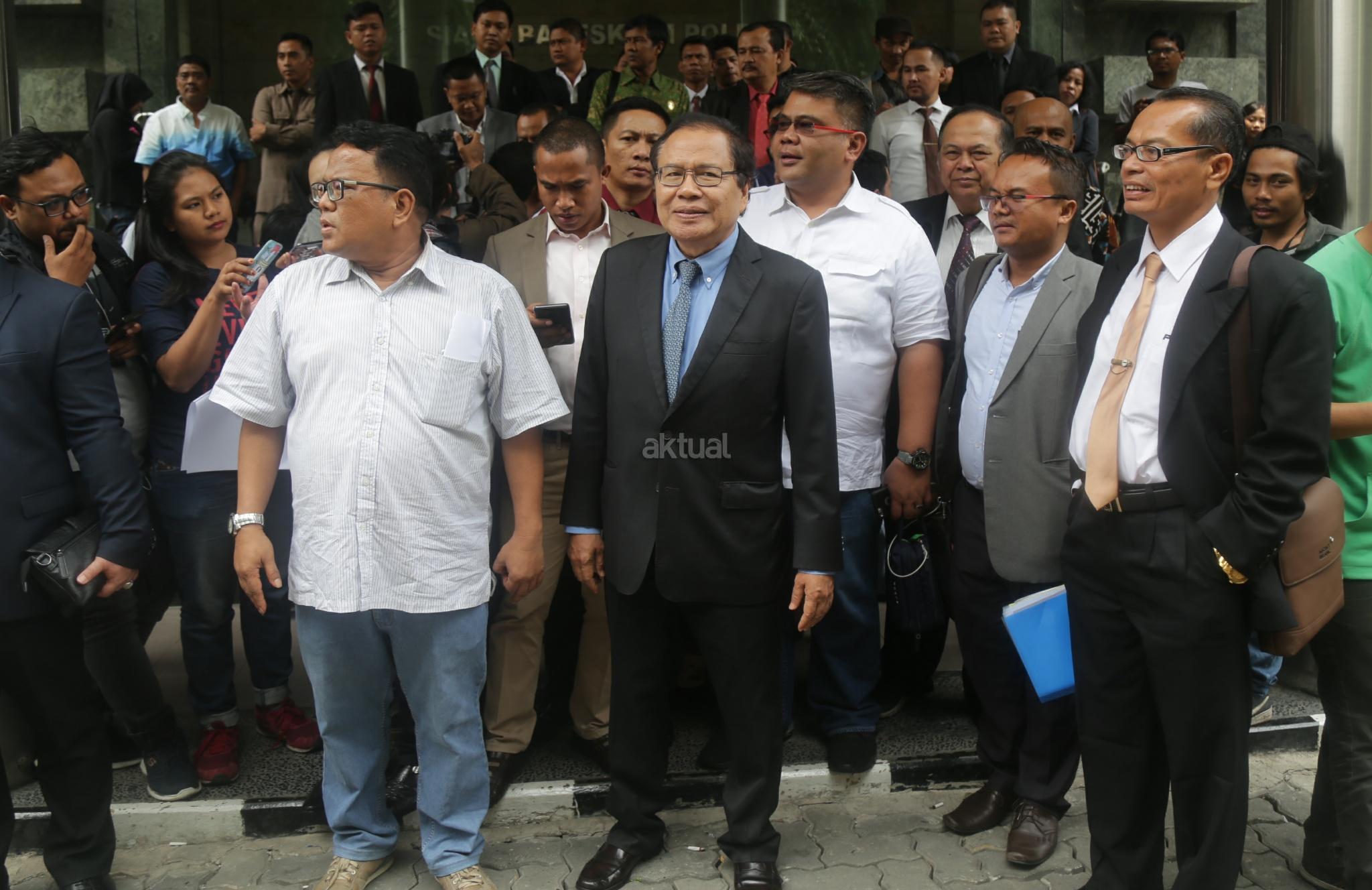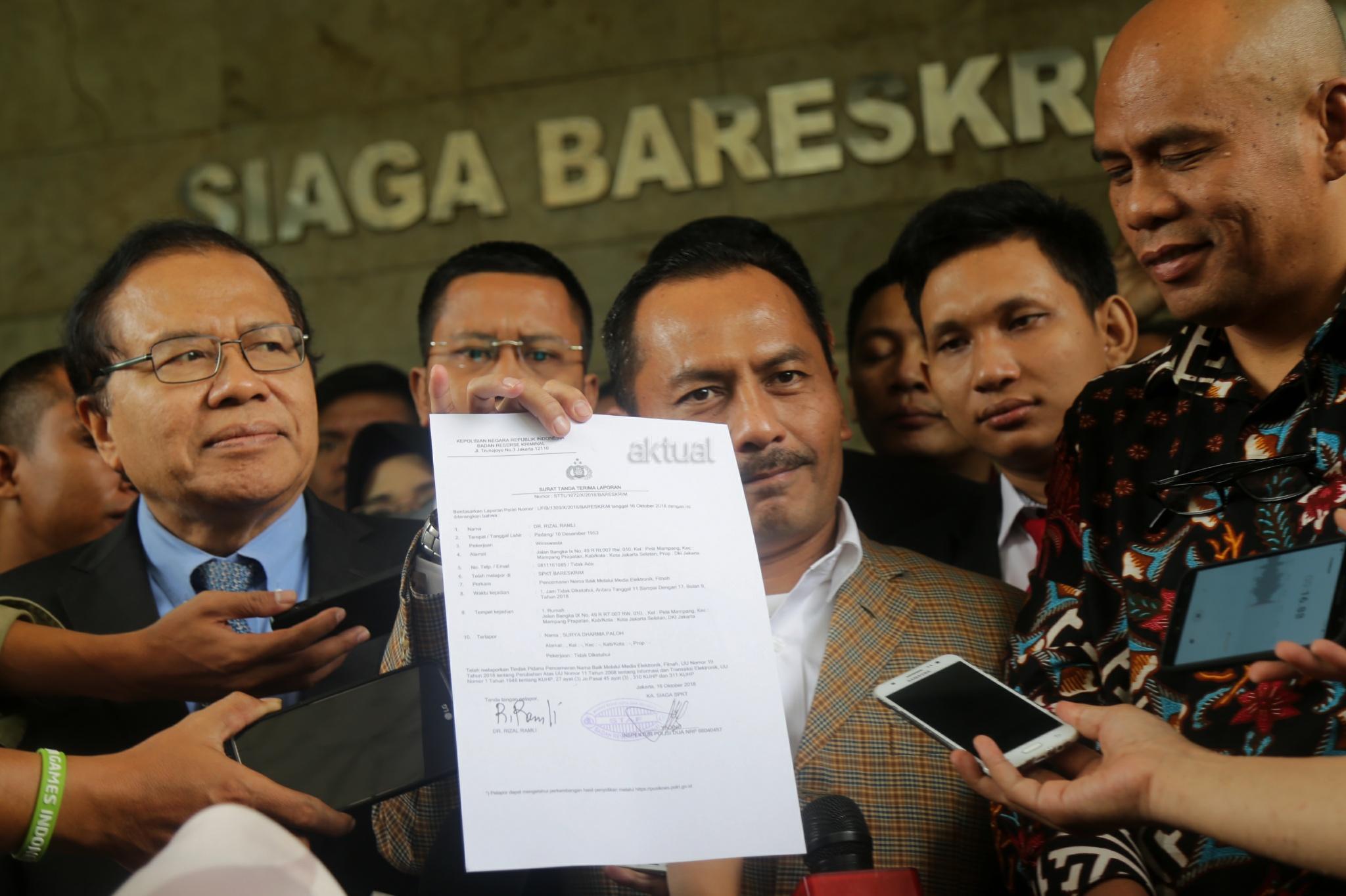 Ekonom Rizal Ramli didampingi puluhan advokat menyambangi Badan Reserse Kriminal (Bareskrim) Mabes Polri, Jakarta Pusat, Selasa (16/10/2018). Rizal melaporkan Surya Paloh terkait dugaan pencemaran nama baik. AKTUAL/Tino Oktaviano