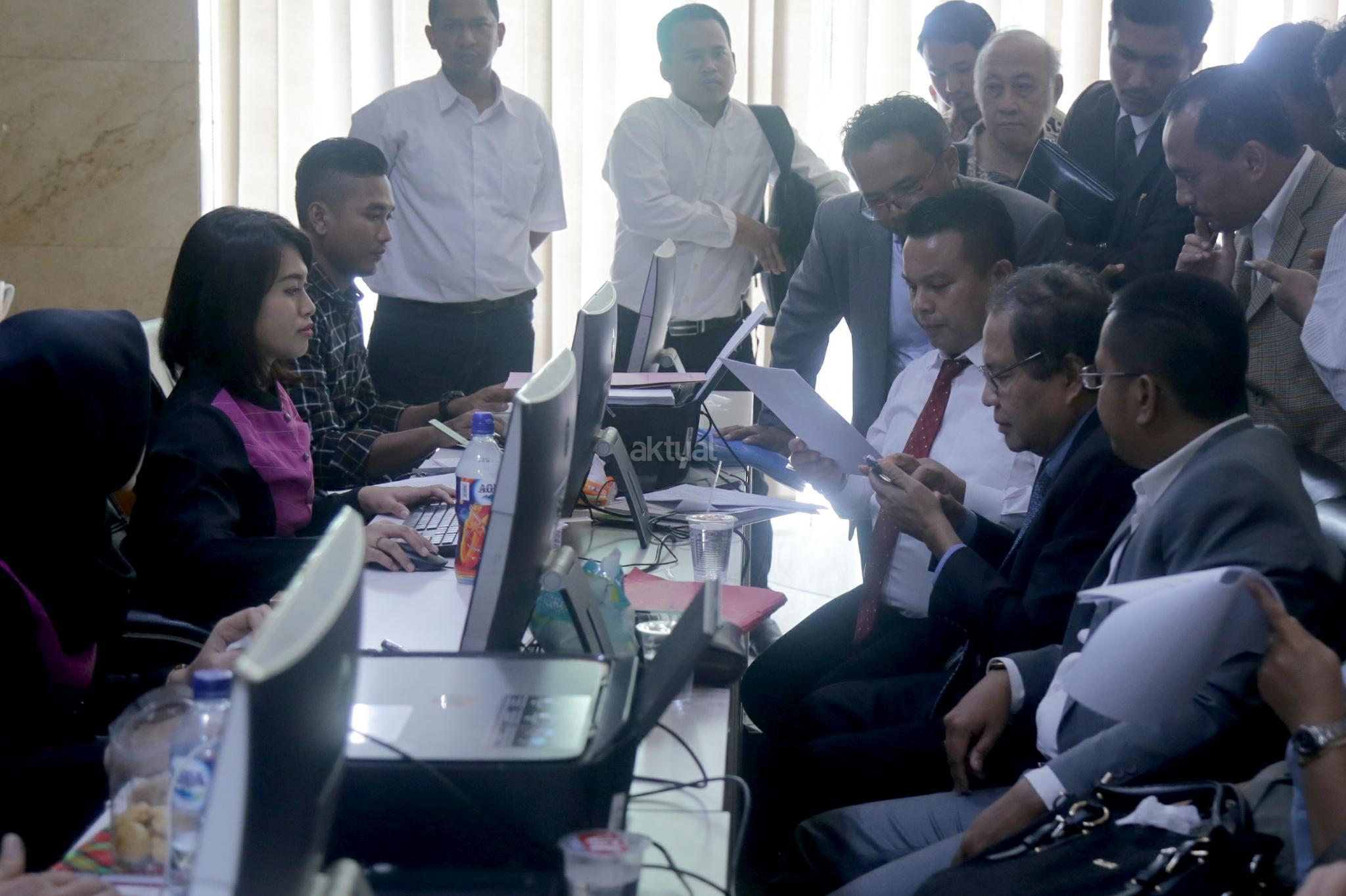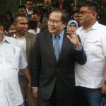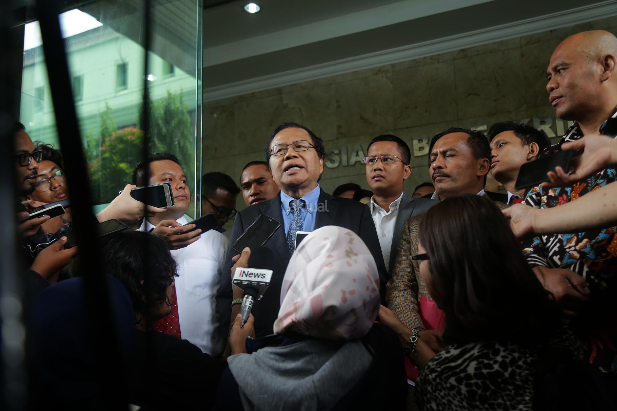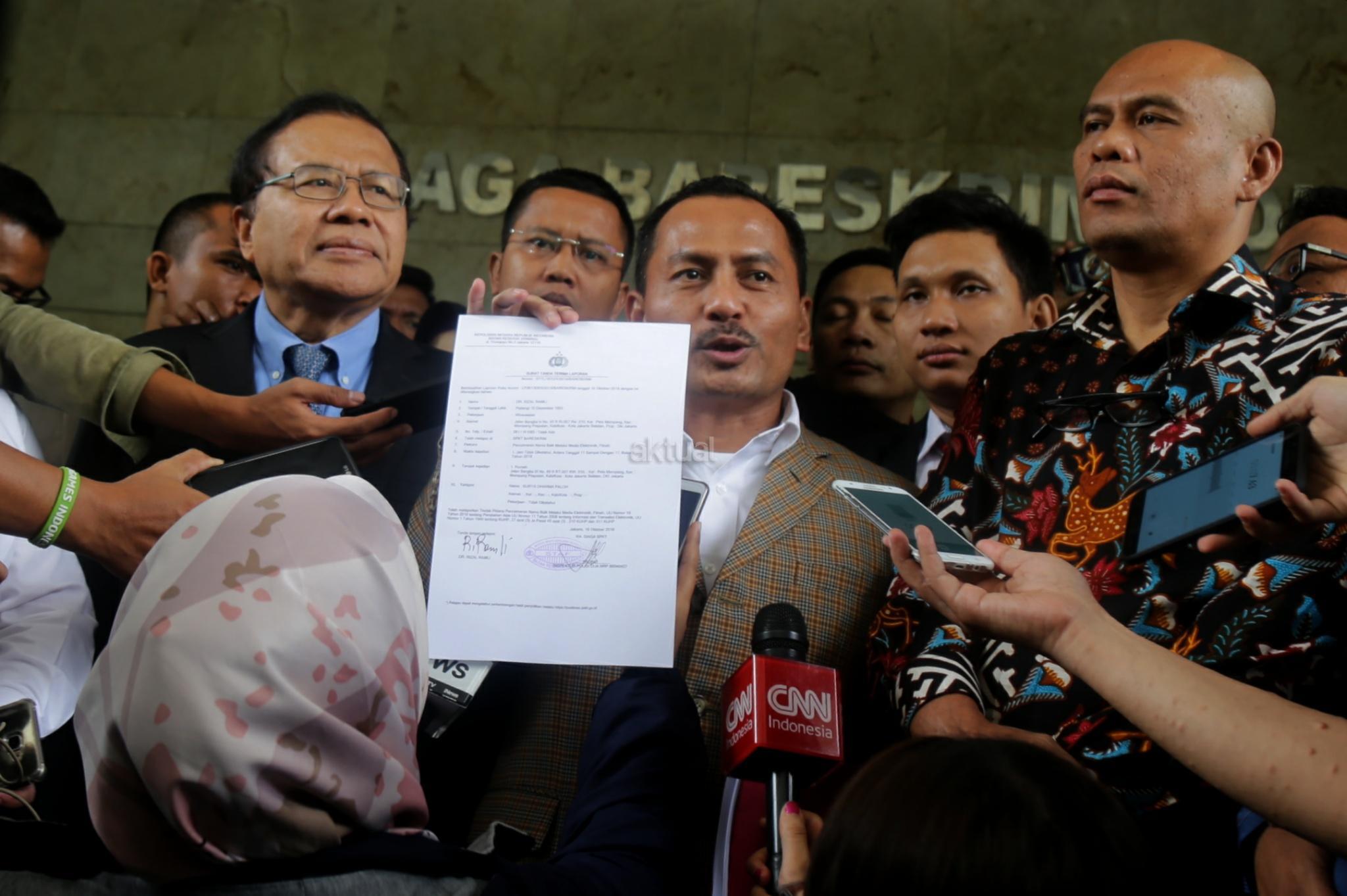 Ekonom Rizal Ramli didampingi puluhan advokat menyambangi Badan Reserse Kriminal (Bareskrim) Mabes Polri, Jakarta Pusat, Selasa (16/10/2018). Rizal melaporkan Surya Paloh terkait dugaan pencemaran nama baik. AKTUAL/Tino Oktaviano