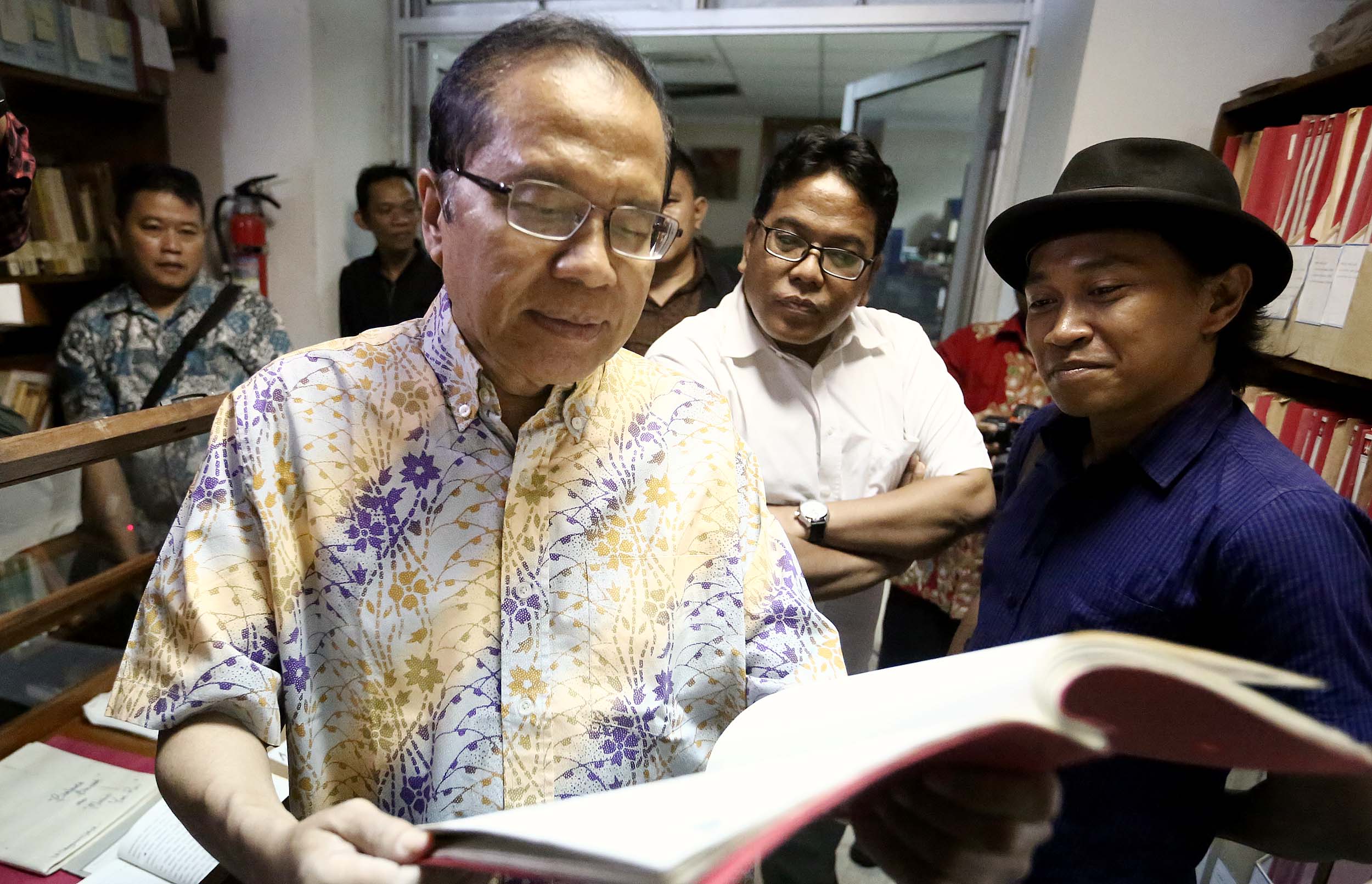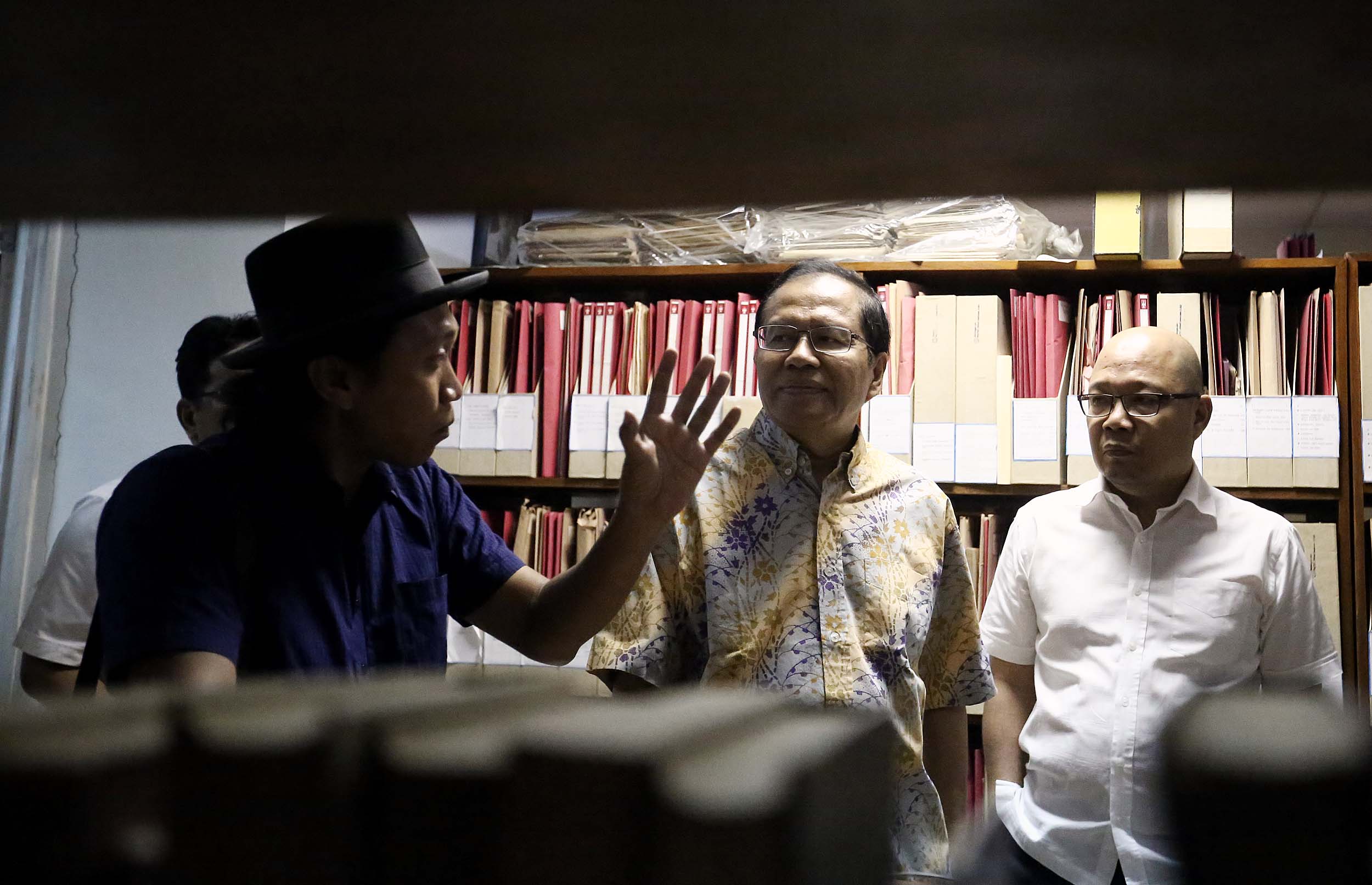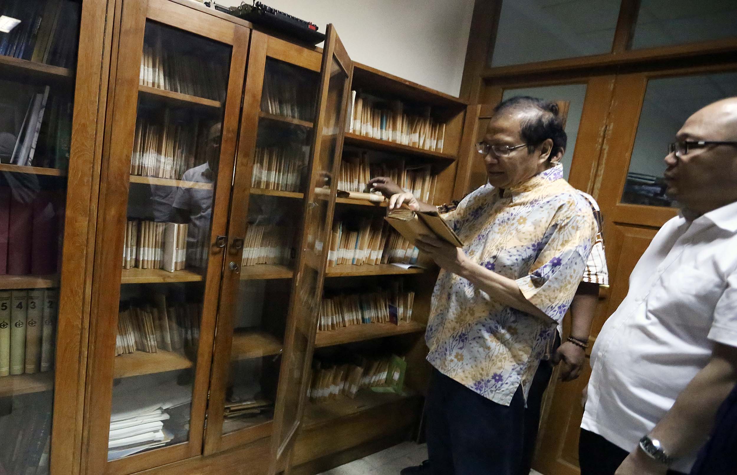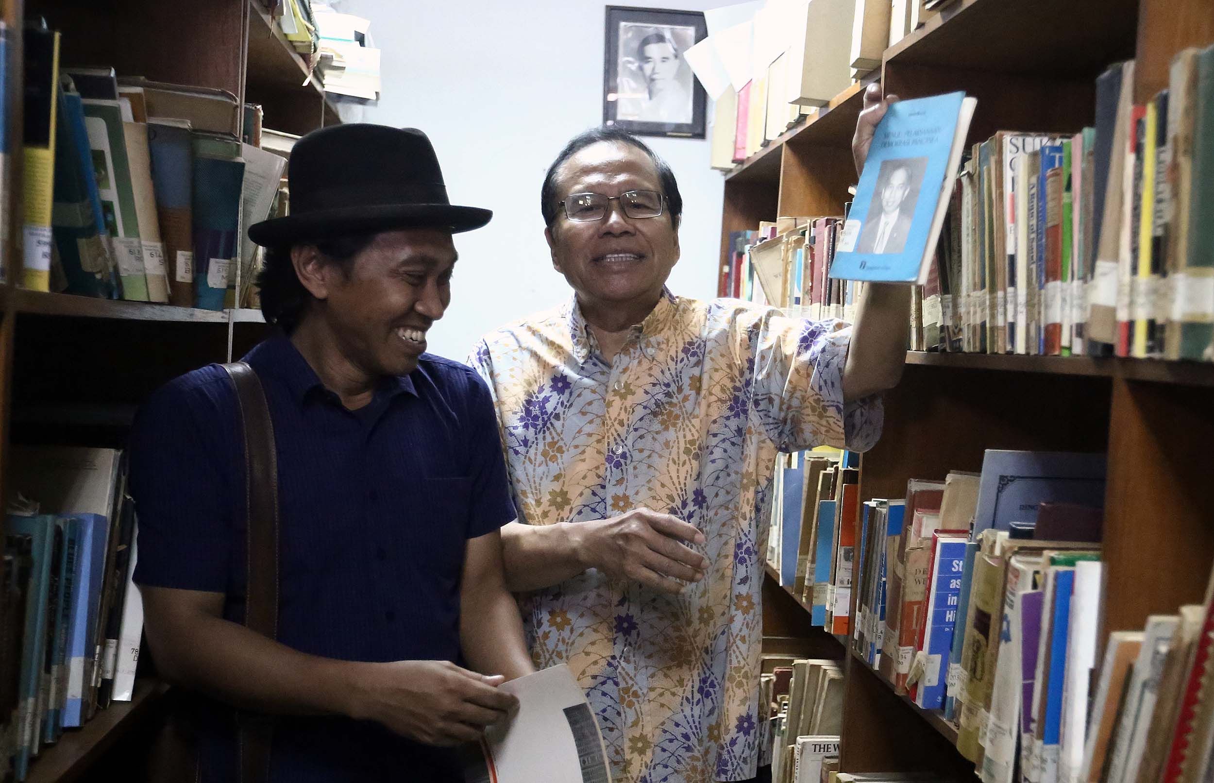 Mantan Menko Maritim Rizal Ramli (kiri) bersama Sejarahwan Jose Rijal (kana) saat melakukan kunjungan ke Pusat Dokumentasi Sastra HB Jassin, di Jakarta, Jumat (26/8/2016). Dalam kunjungannya Rizal Ramli meminta agar pemprov DKI lebih memperhatikan Pusat Dokumentasi Sastra HB Jassin tersebut.