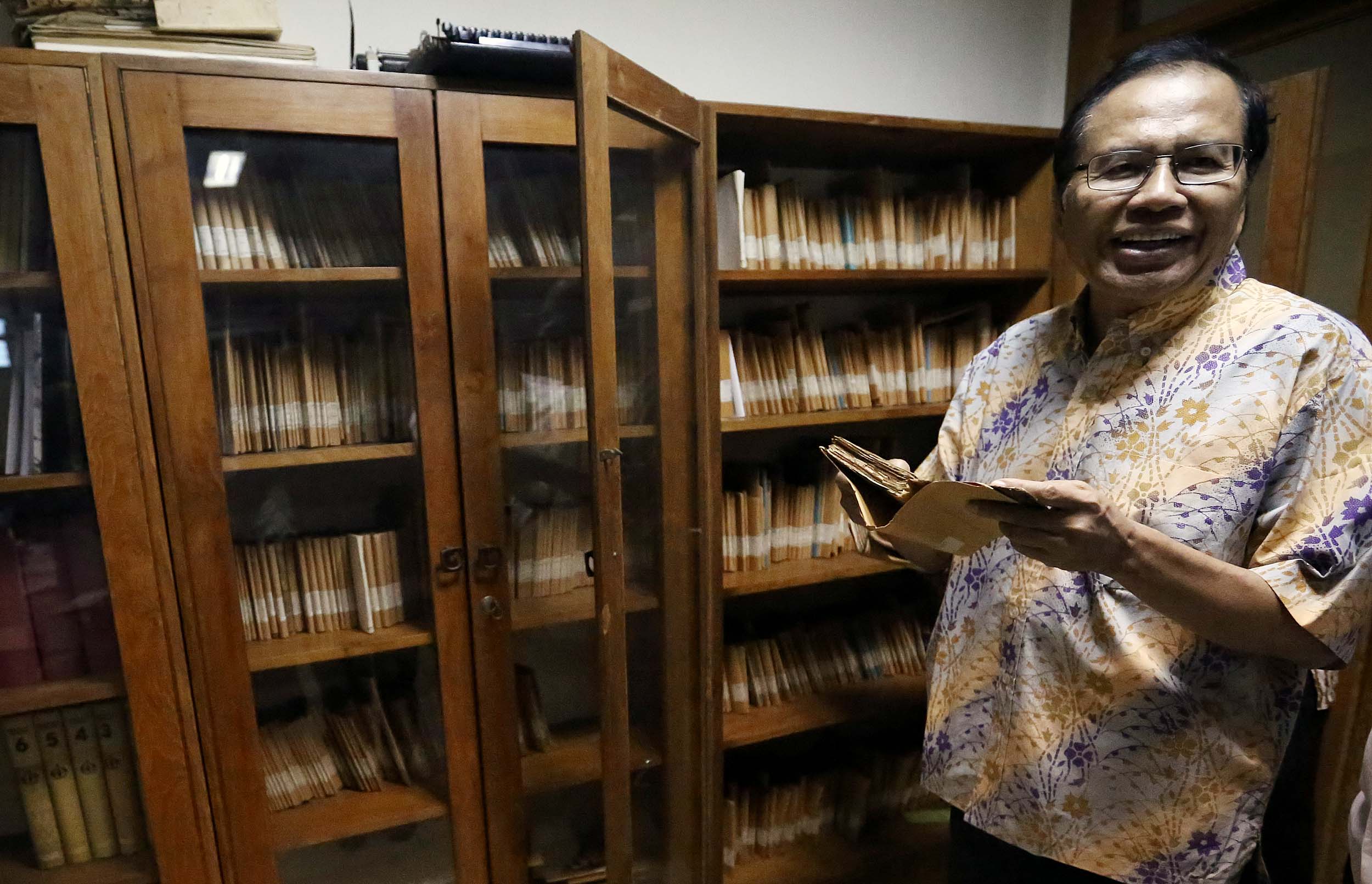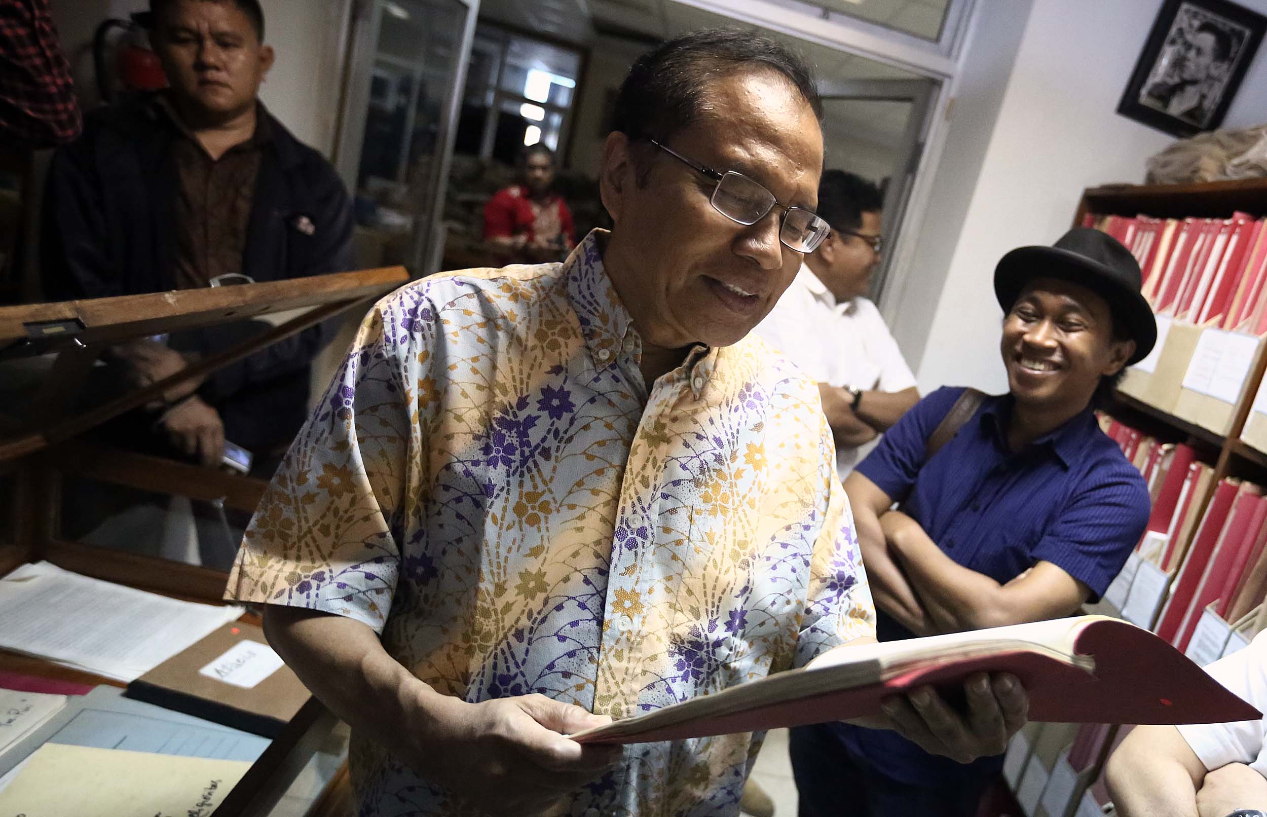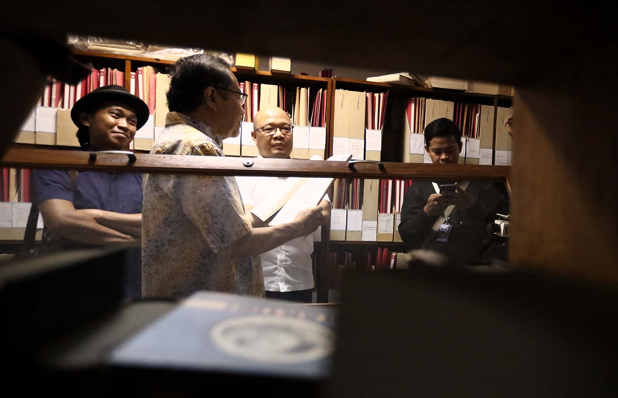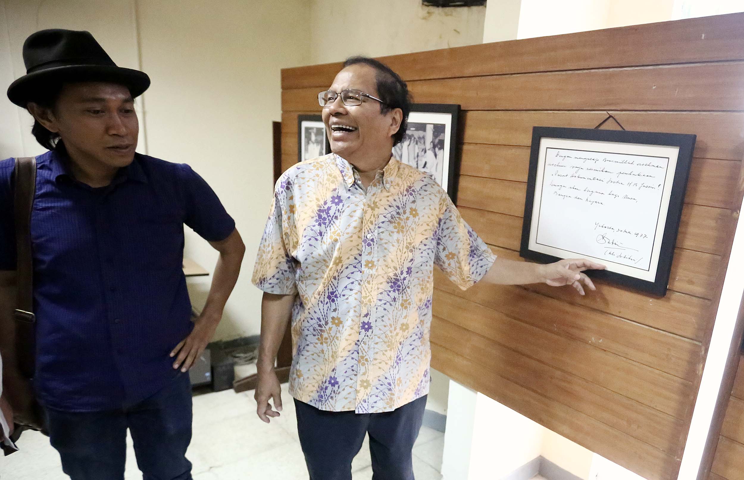 Mantan Menko Maritim Rizal Ramli (kiri) bersama Sejarahwan Jose Rijal (kana) saat melakukan kunjungan ke Pusat Dokumentasi Sastra HB Jassin, di Jakarta, Jumat (26/8/2016). Dalam kunjungannya Rizal Ramli meminta agar pemprov DKI lebih memperhatikan Pusat Dokumentasi Sastra HB Jassin tersebut.