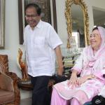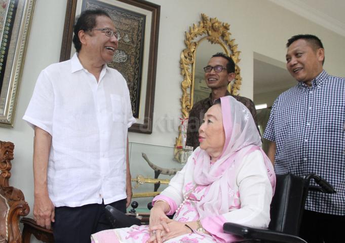 Kandidat calon gubernur DKI Jakarta, Rizal Ramli, berbincang dengan Istri mendiang Presiden ke-4 RI Abdurrahman Wahid (Gus Dur), Sinta Nuriah, di rumah kediamannya, Jalan Warung Silah, Ciganjur, Jakarta Selatan, Jumat (16/9). Selain bersilaturahmi kepada keluarga Gus Dur yang sudah lama dikenalnya, ekonom senior ini juga meminta doa restu dari Sinta Nuriah untuk maju ke Pilgub DKI 2017. AKTUAL/TINO OKTAVIANO